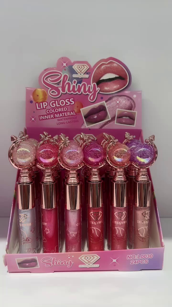 唇彩 不掉色带亮闪片可爱设计独特圈圈多色 混色包装带展示盒现货