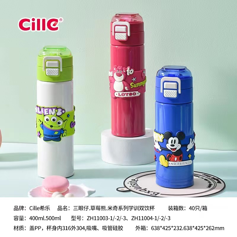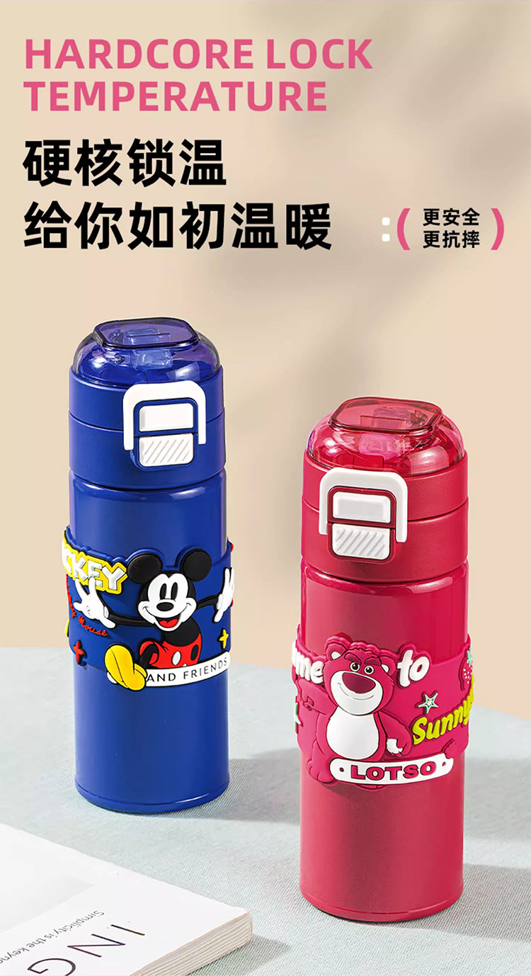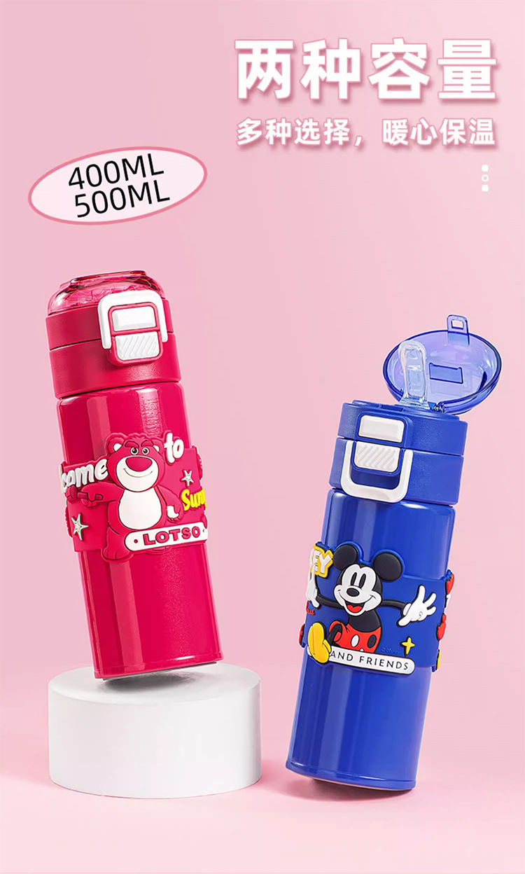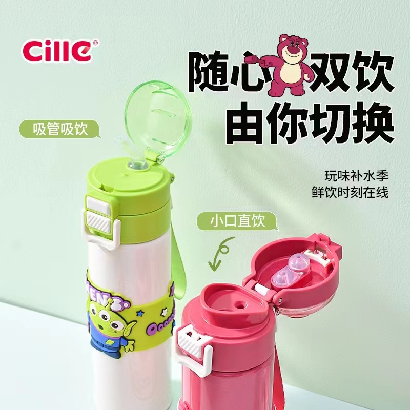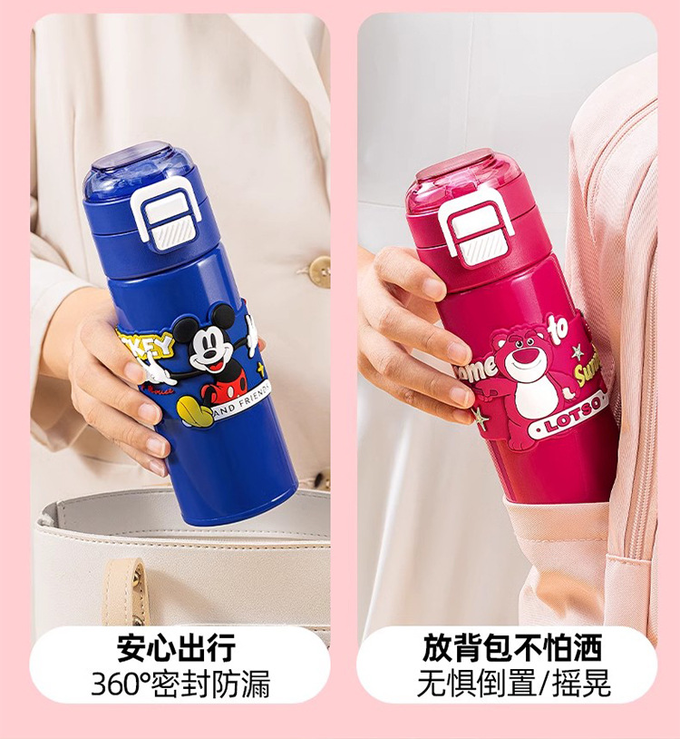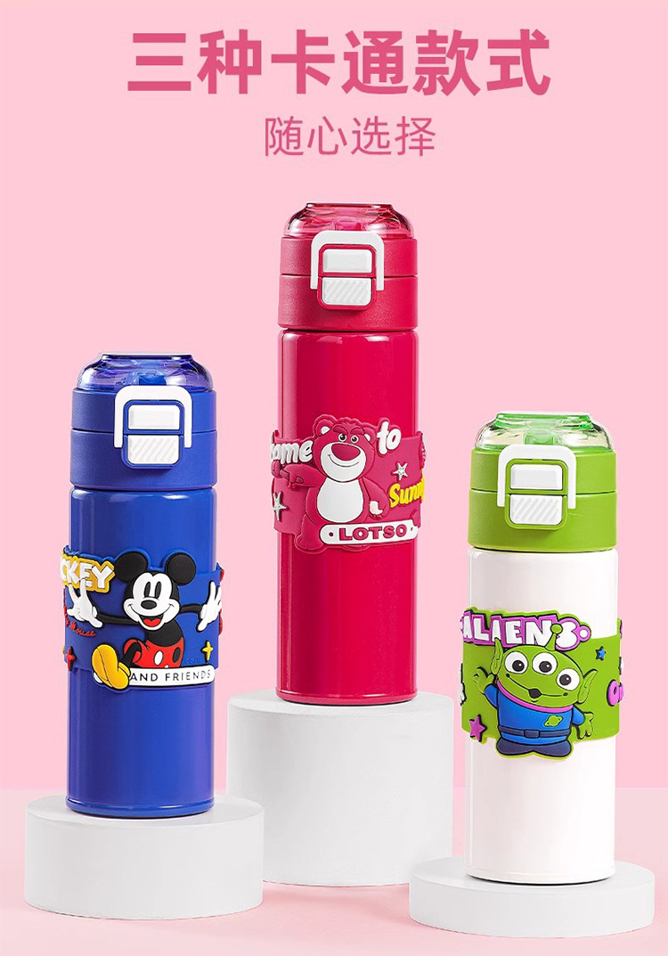 希乐保温杯便携儿童水杯可爱吸管杯学生双饮杯草莓熊米奇三眼仔