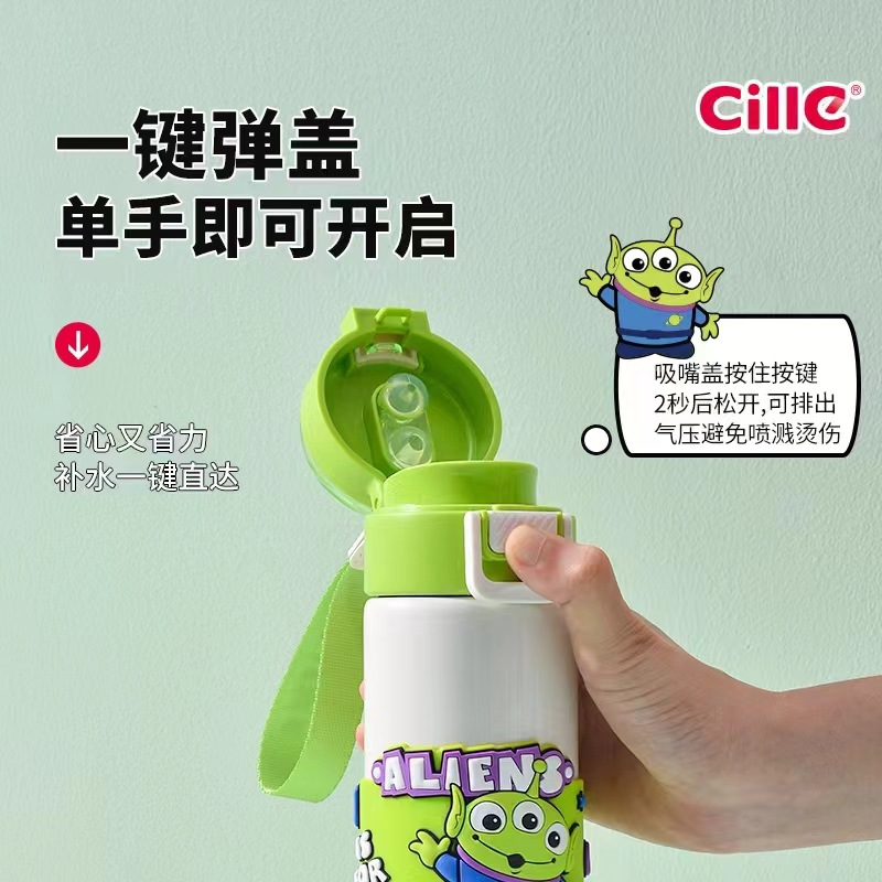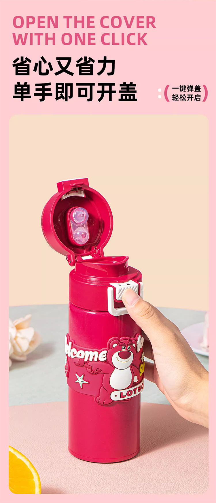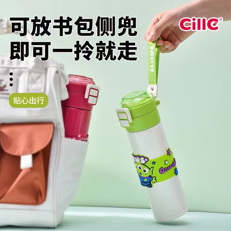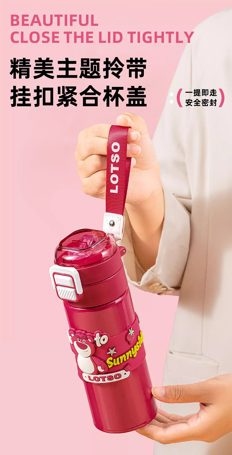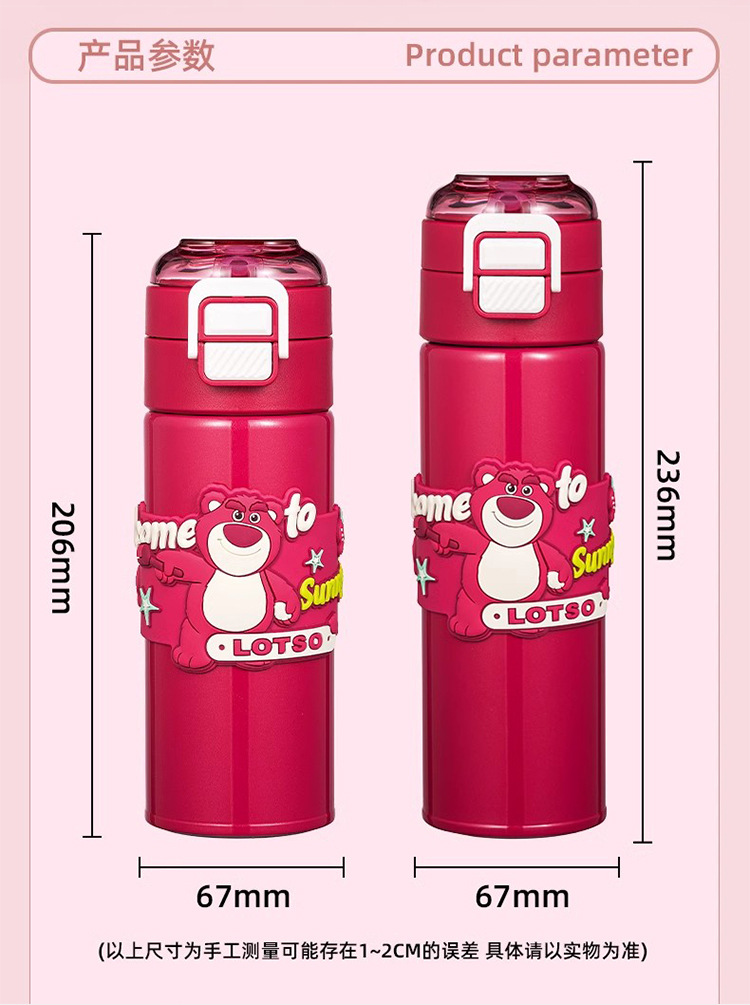 希乐保温杯便携儿童水杯可爱吸管杯学生双饮杯草莓熊米奇三眼仔