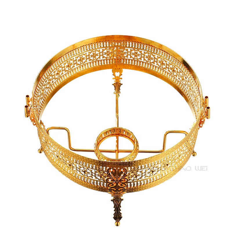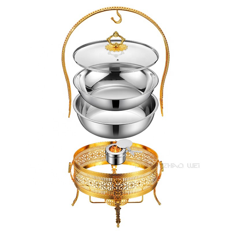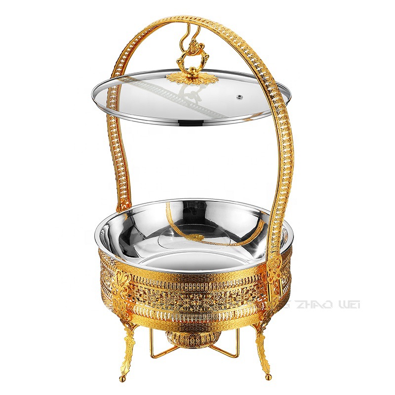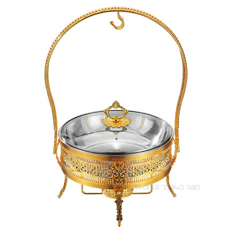 不锈钢自助餐炉金色花边酒精炉圆形吊盖餐炉酒店餐厅彩钻自助餐炉