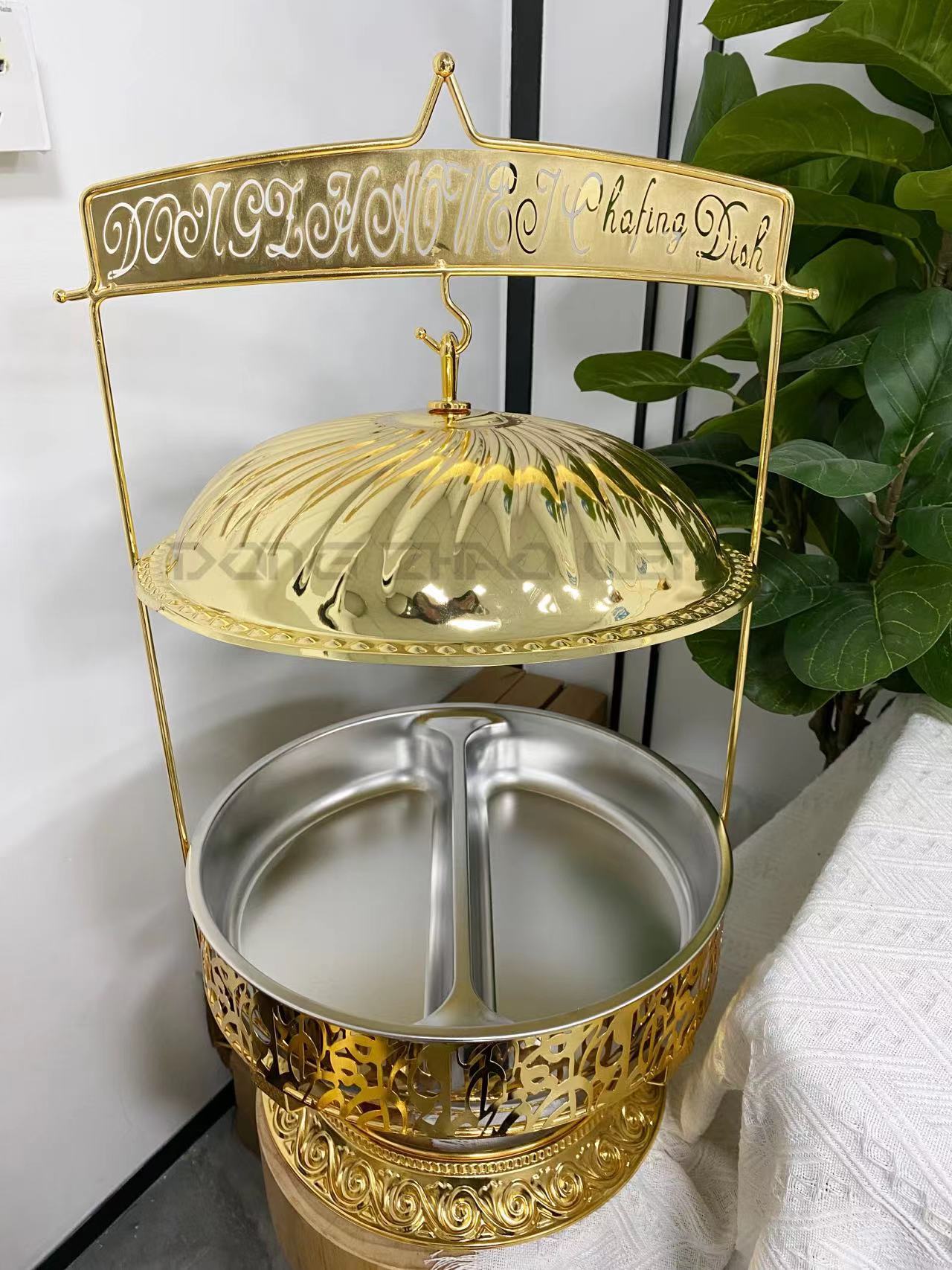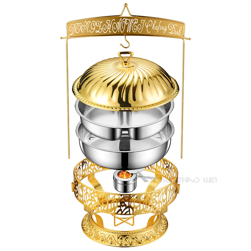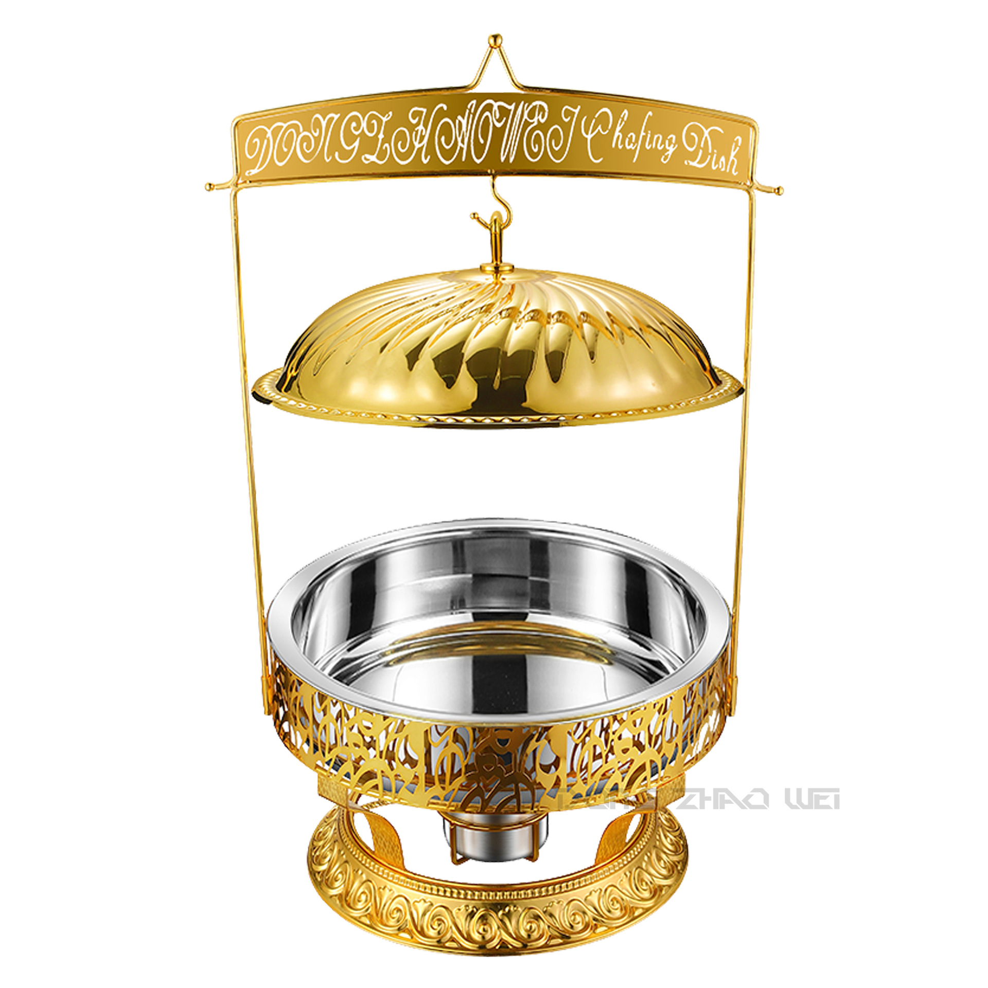 跨境出口装金色吊盖自助餐炉 婚礼酒店宴会布菲炉 食物保温炉全金