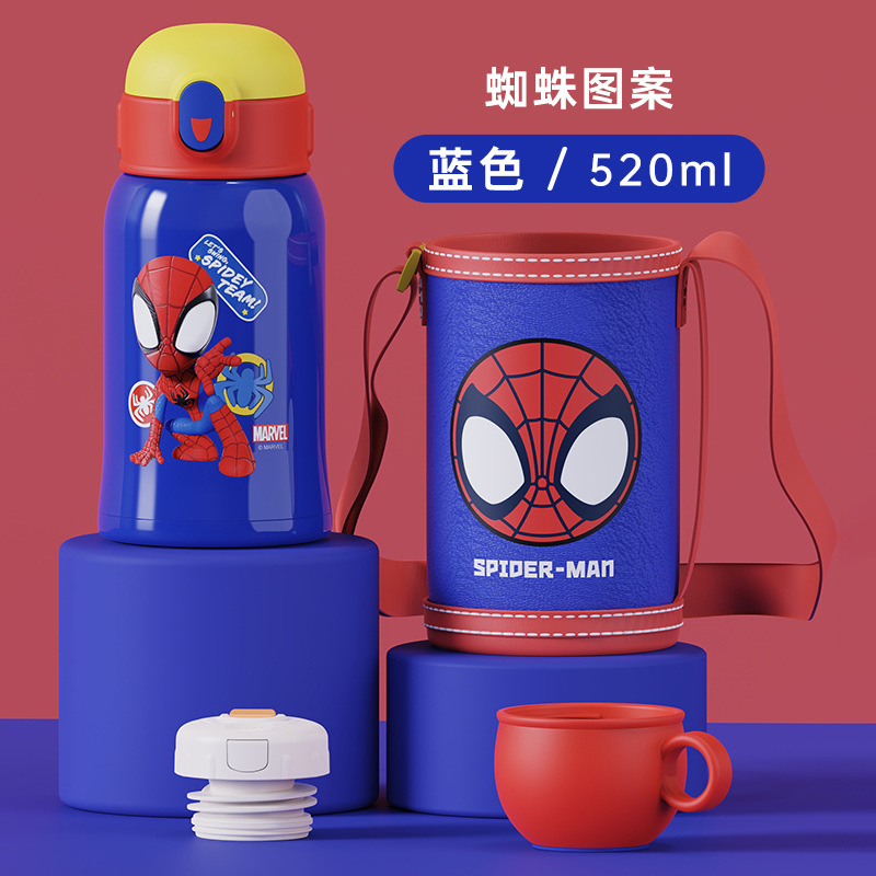 超级飞侠316不锈钢带吸管带杯套一杯双用450ML儿童双盖保温杯批发