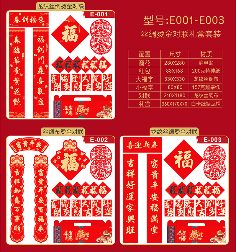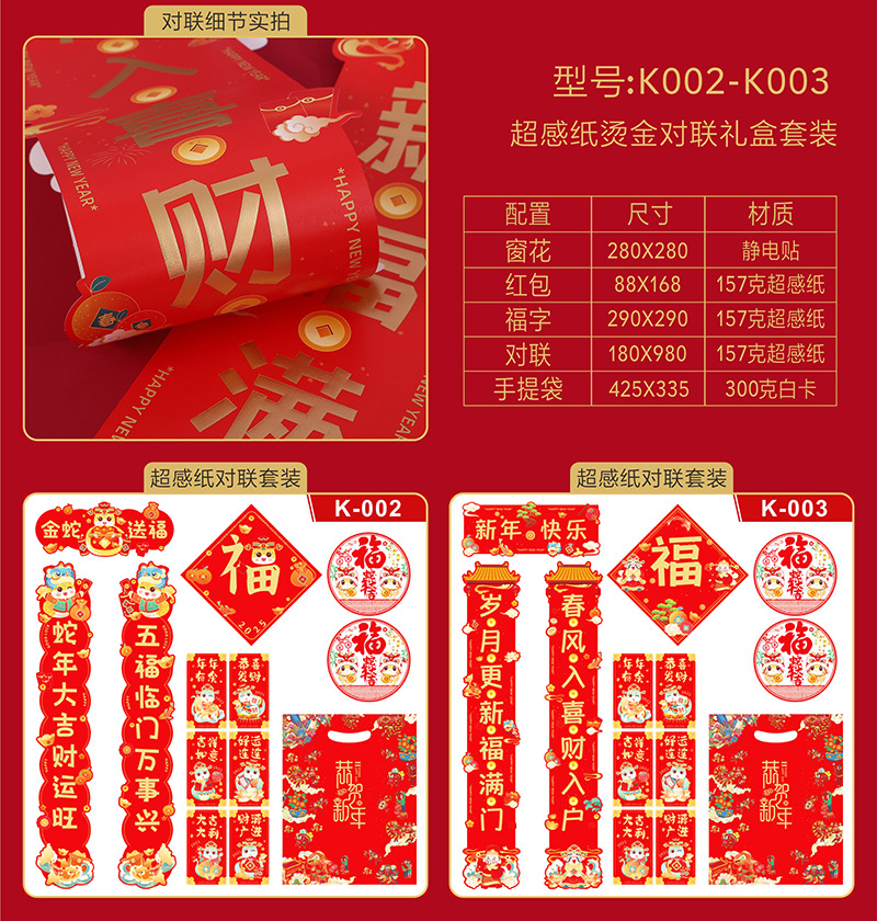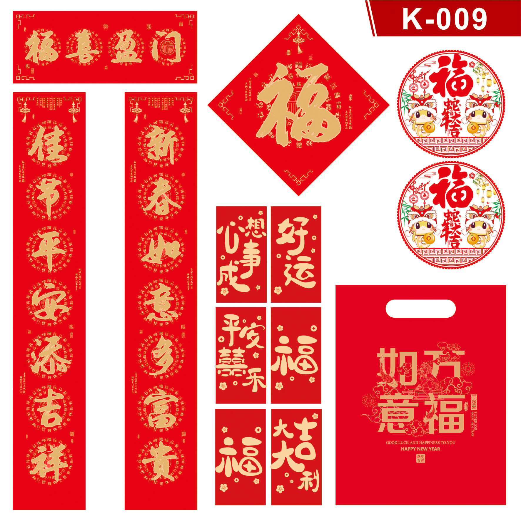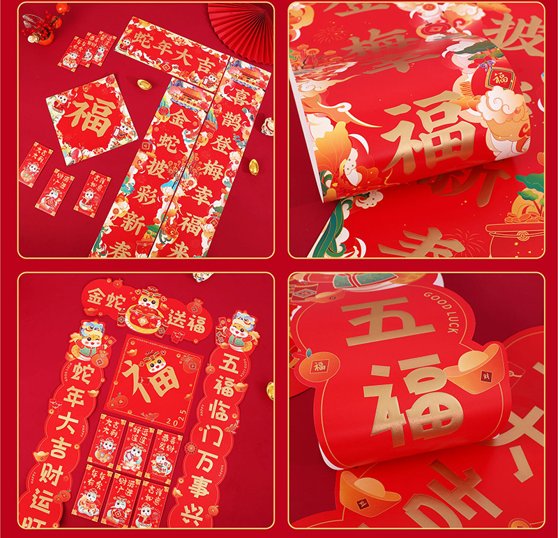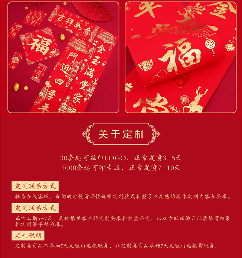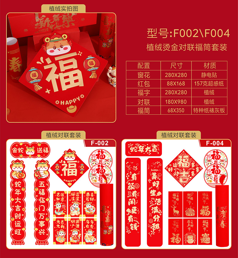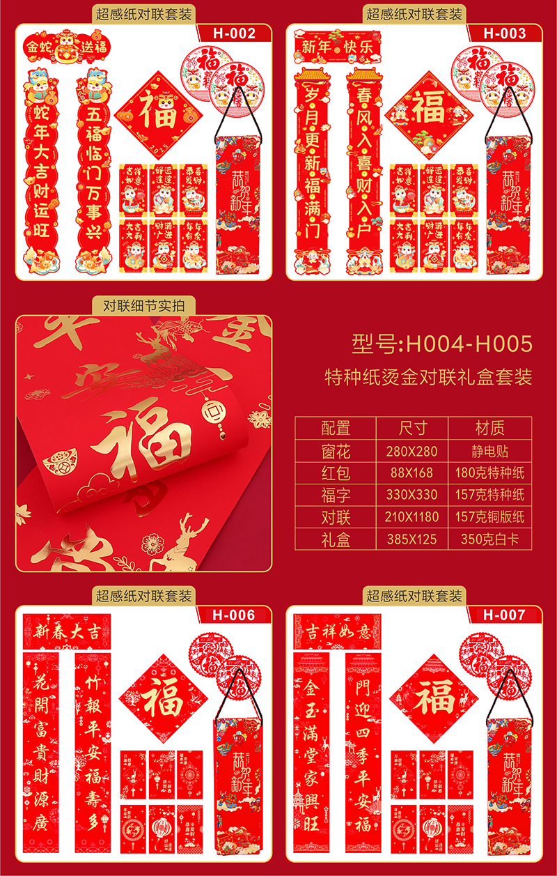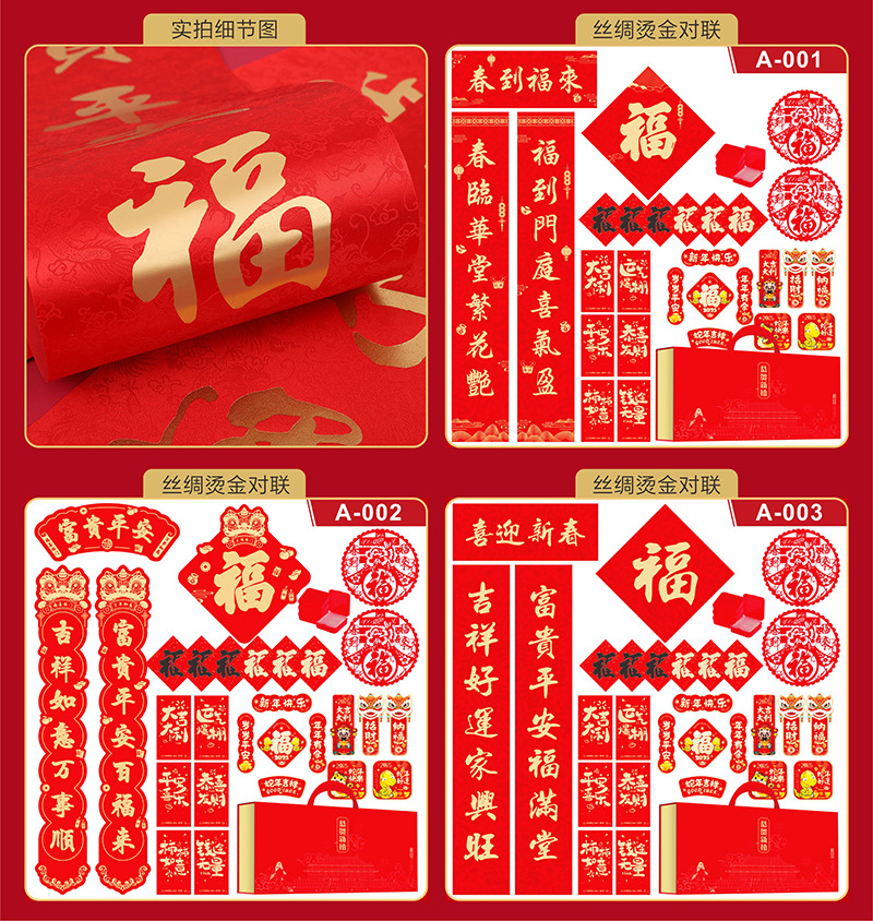 2025新年丝绸烫金对联春联定制现货蛇年植绒异形广告对联大礼包