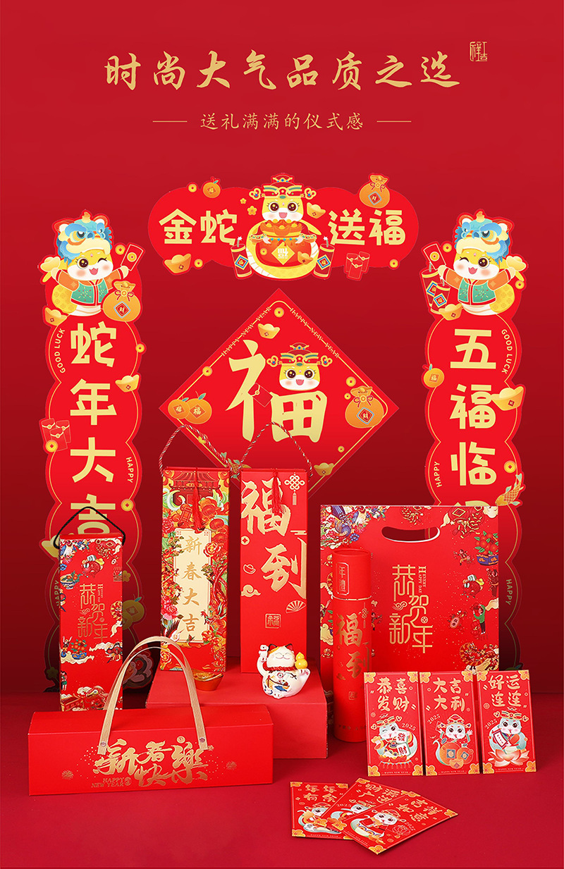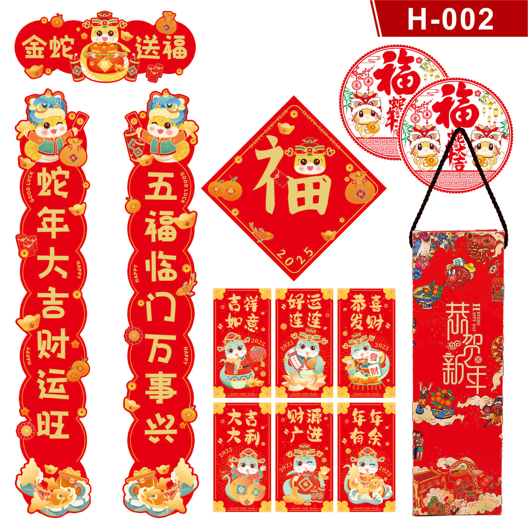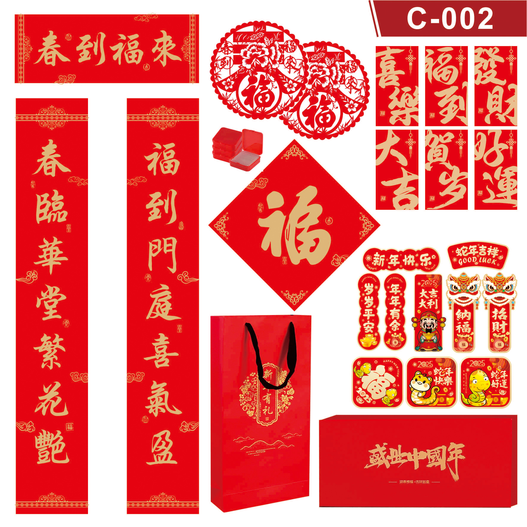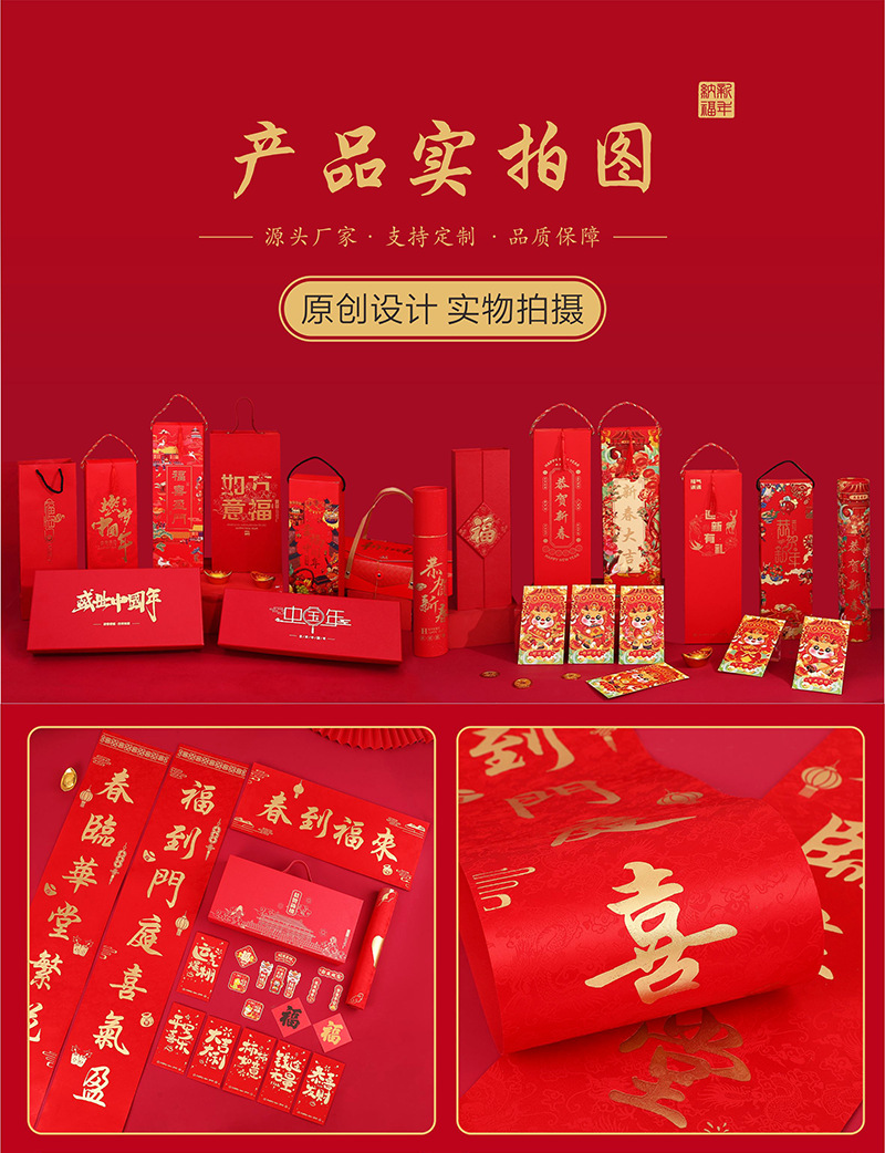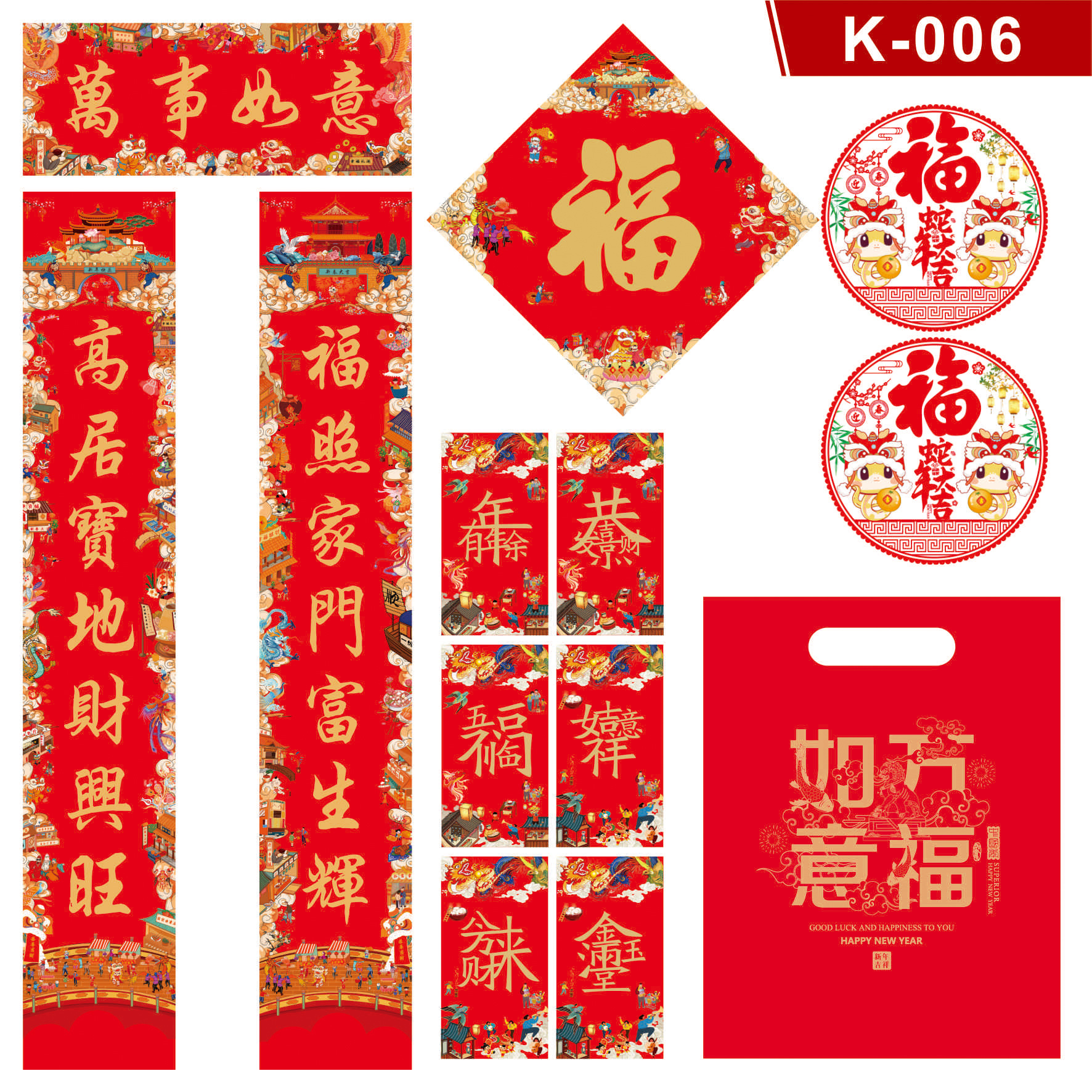 2025新年丝绸烫金对联春联定制现货蛇年植绒异形广告对联大礼包