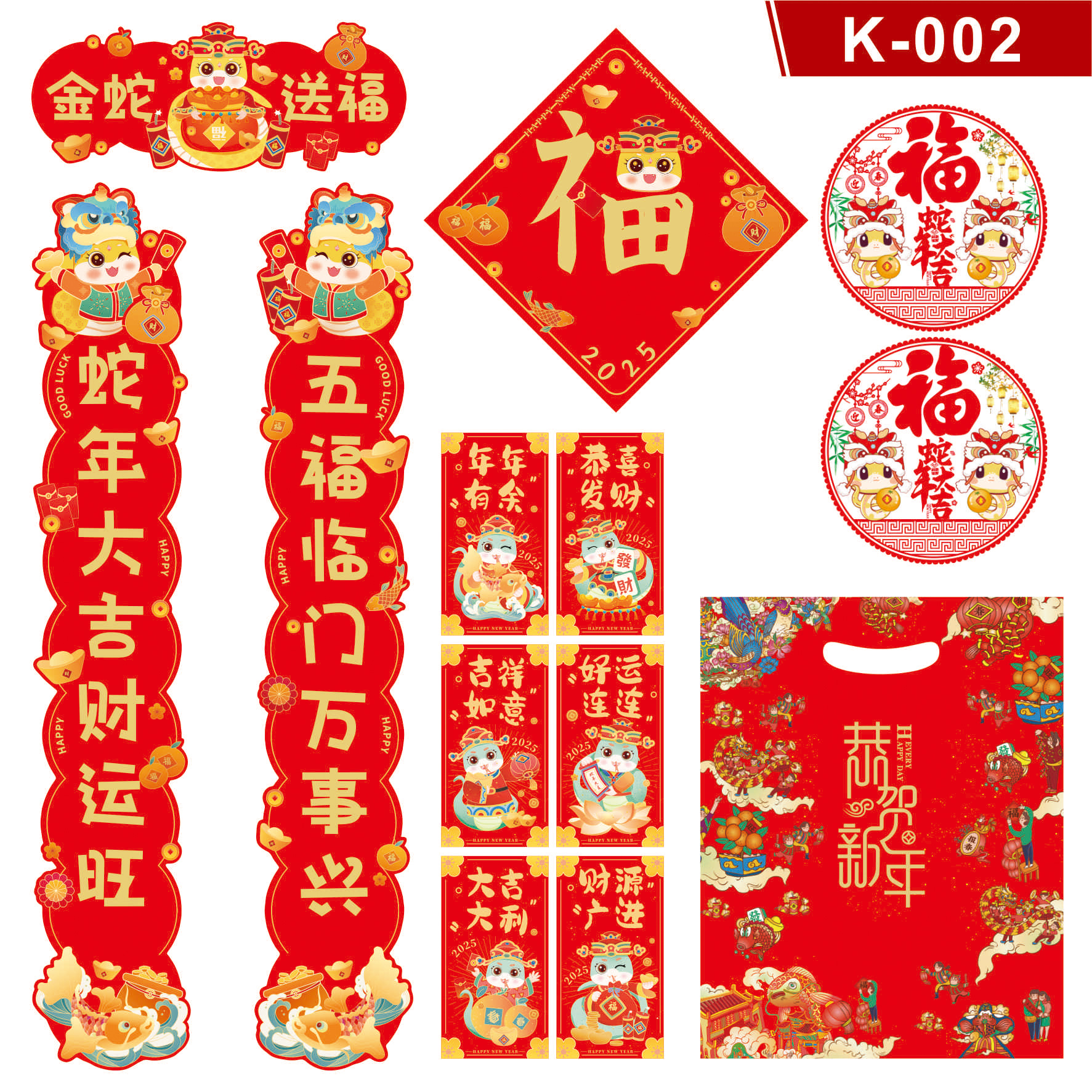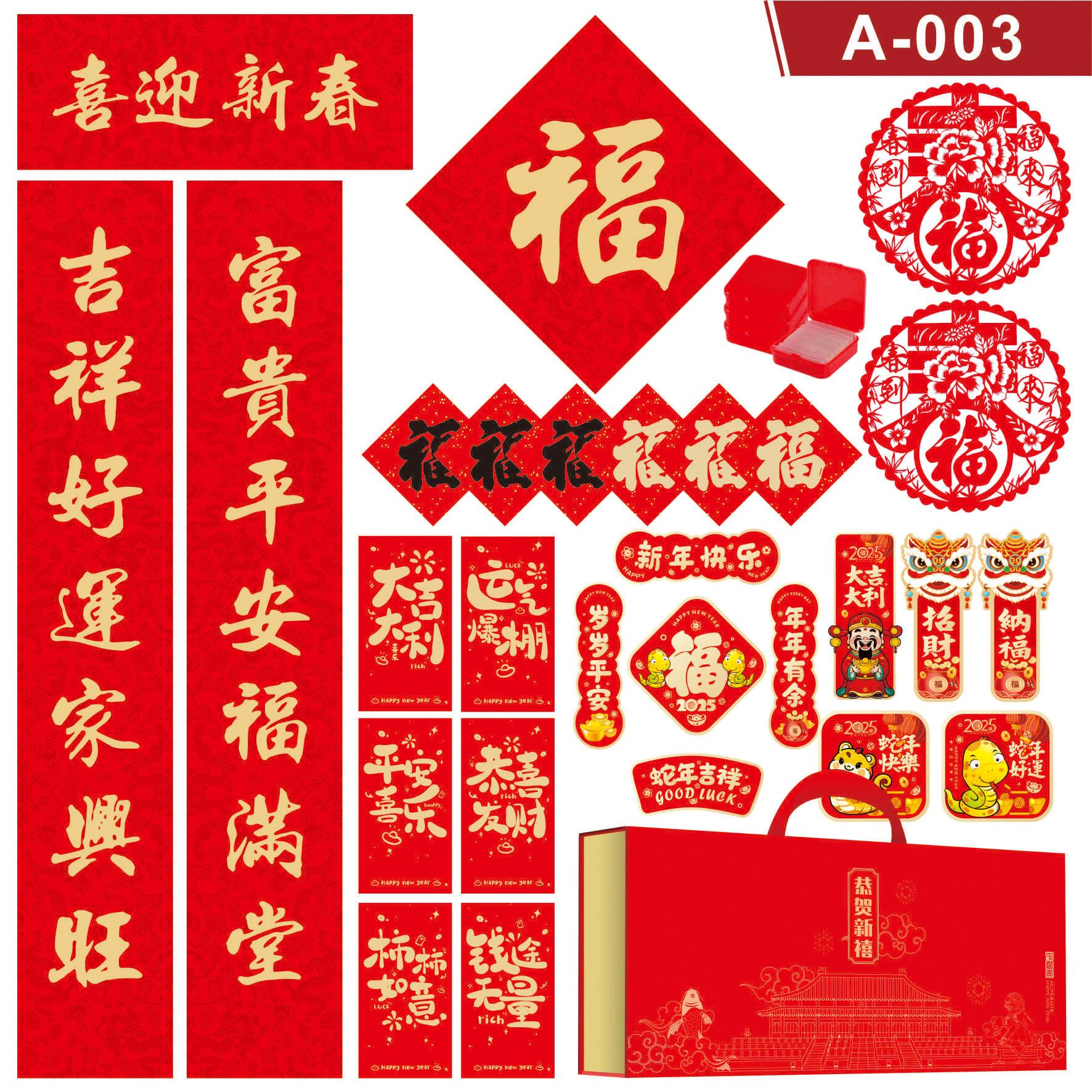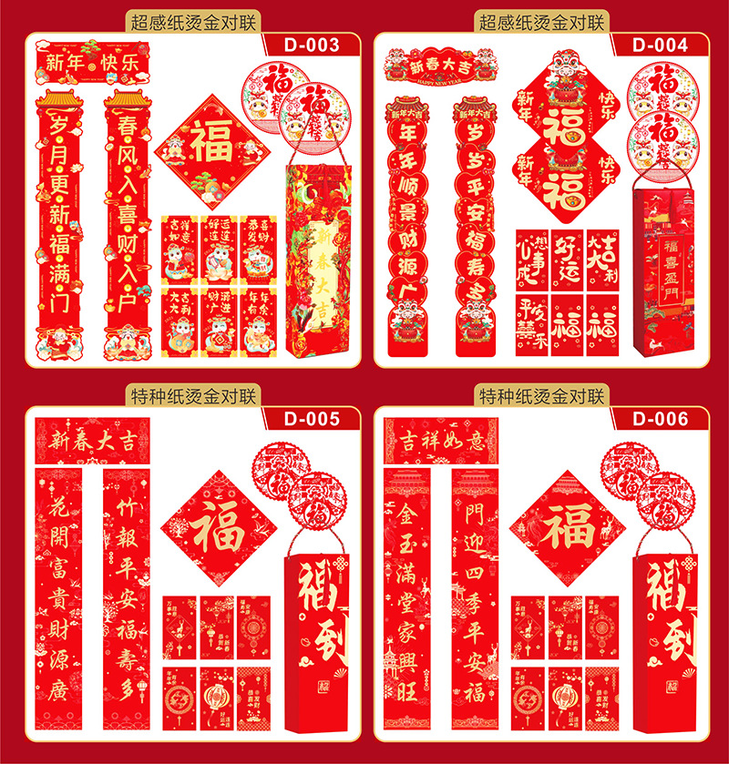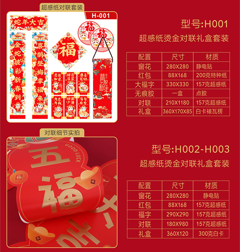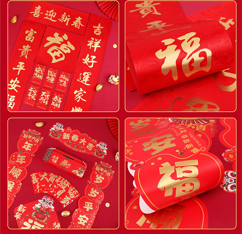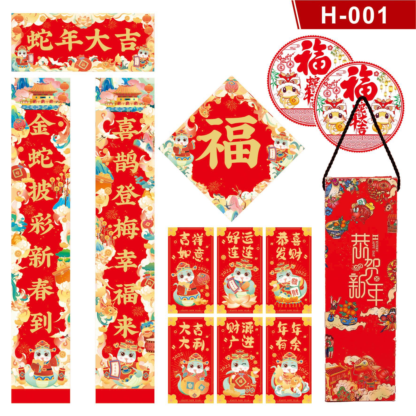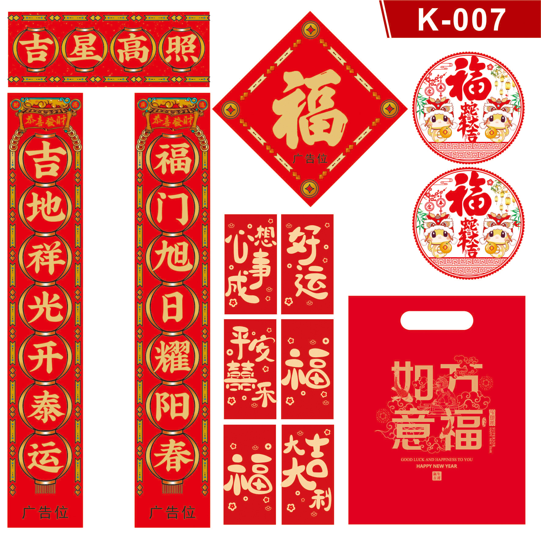 2025新年丝绸烫金对联春联定制现货蛇年植绒异形广告对联大礼包