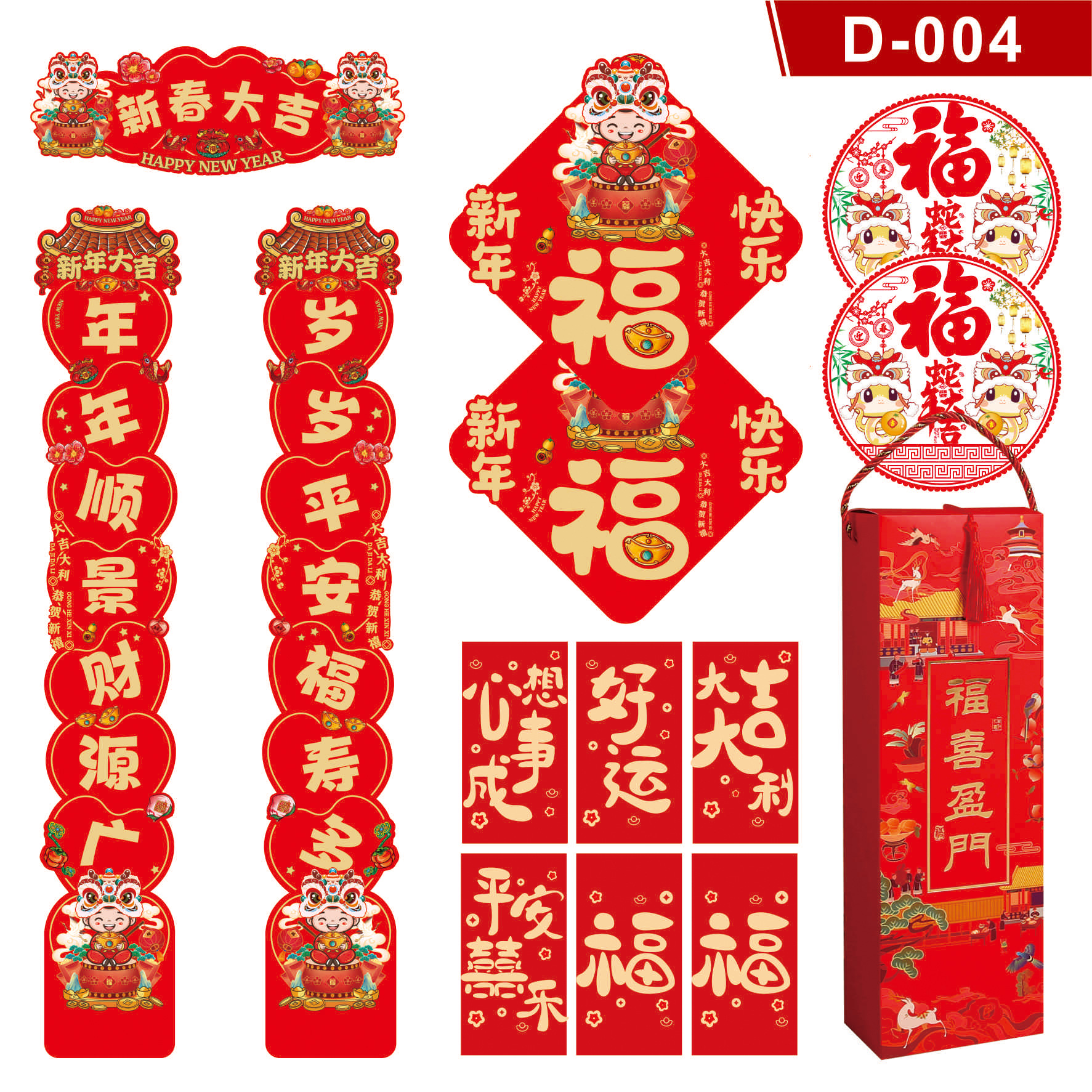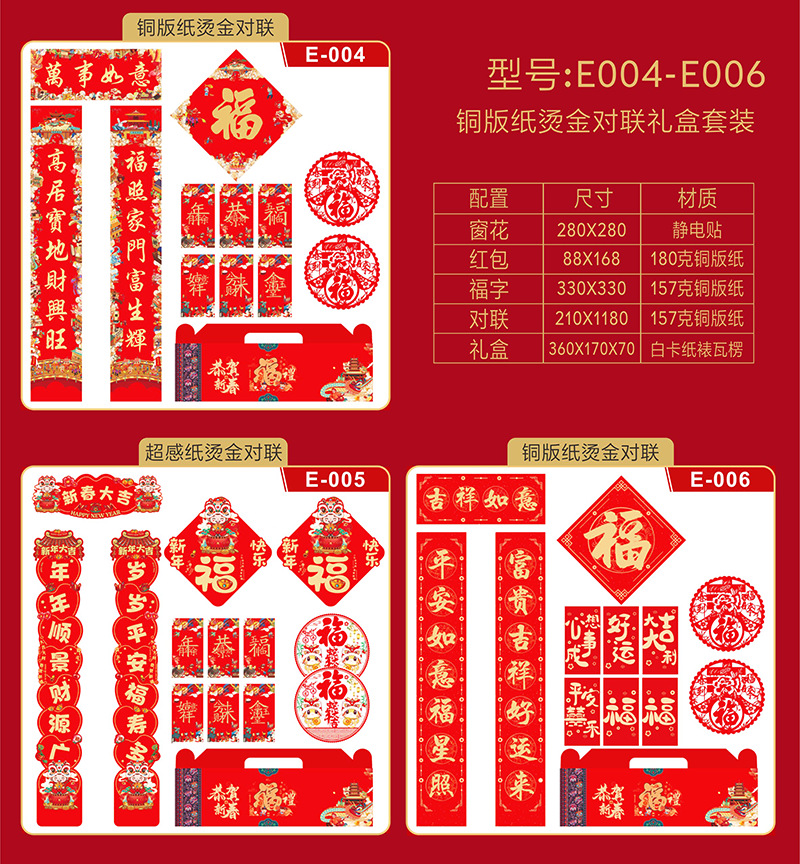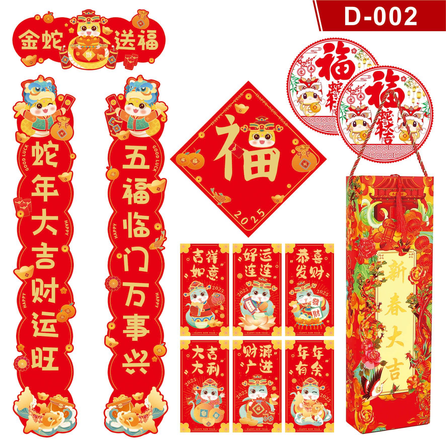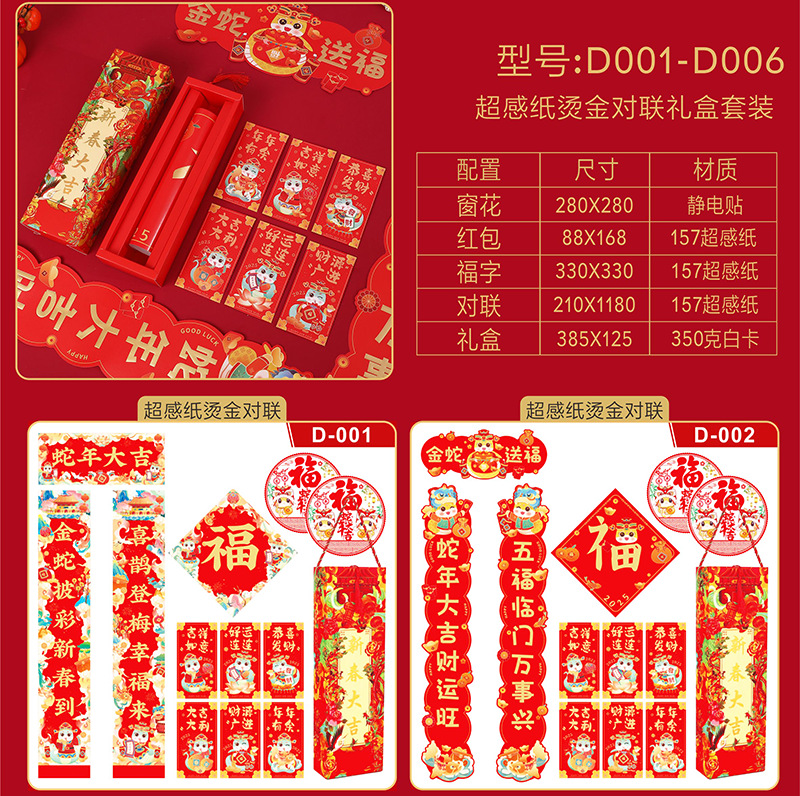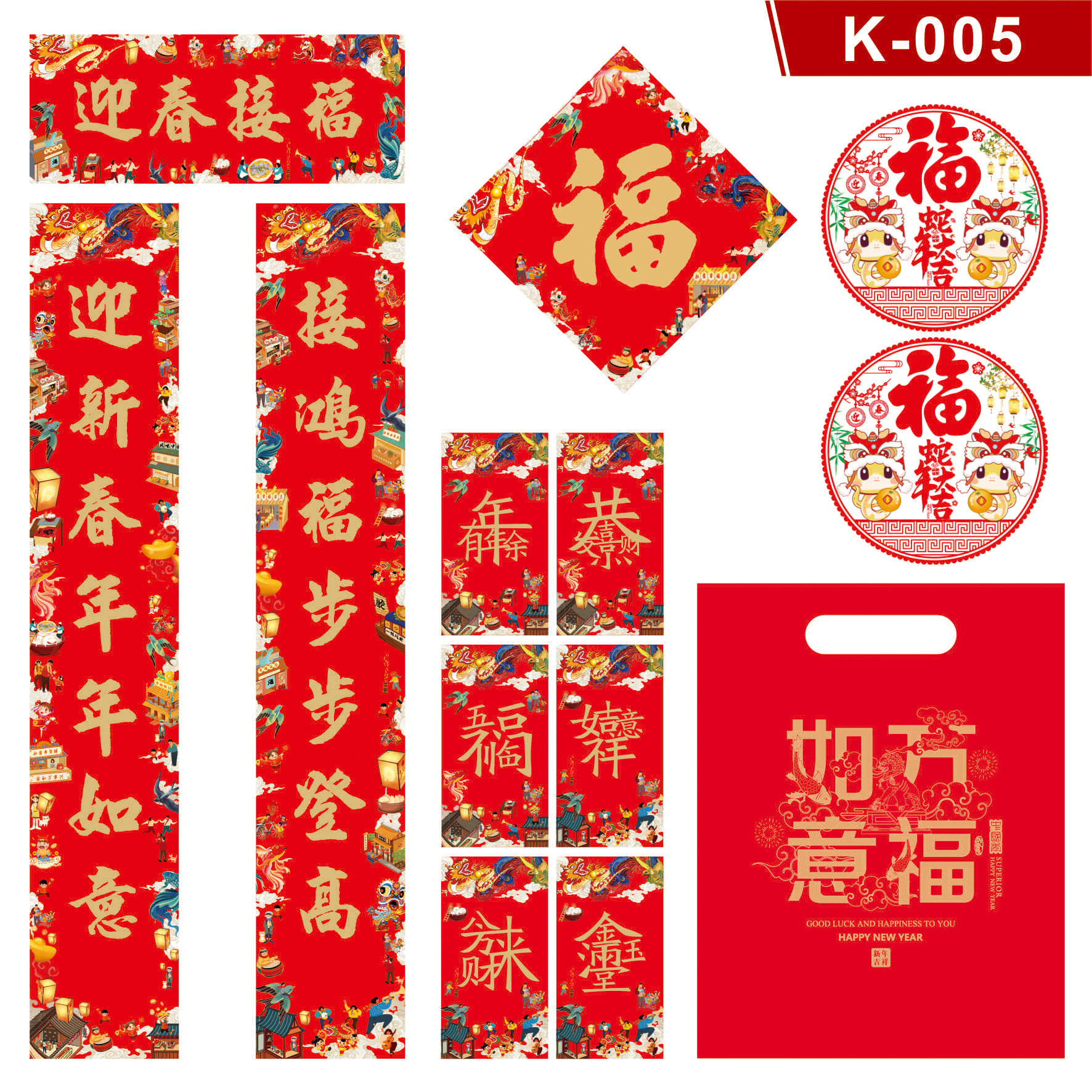 2025新年丝绸烫金对联春联定制现货蛇年植绒异形广告对联大礼包