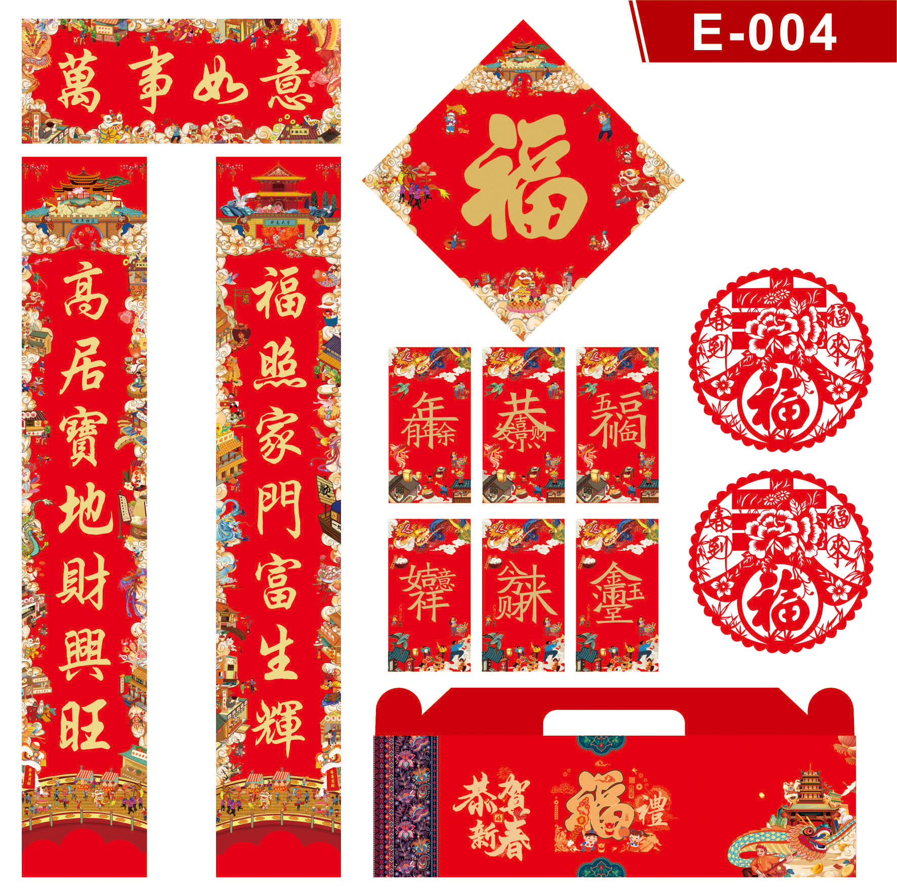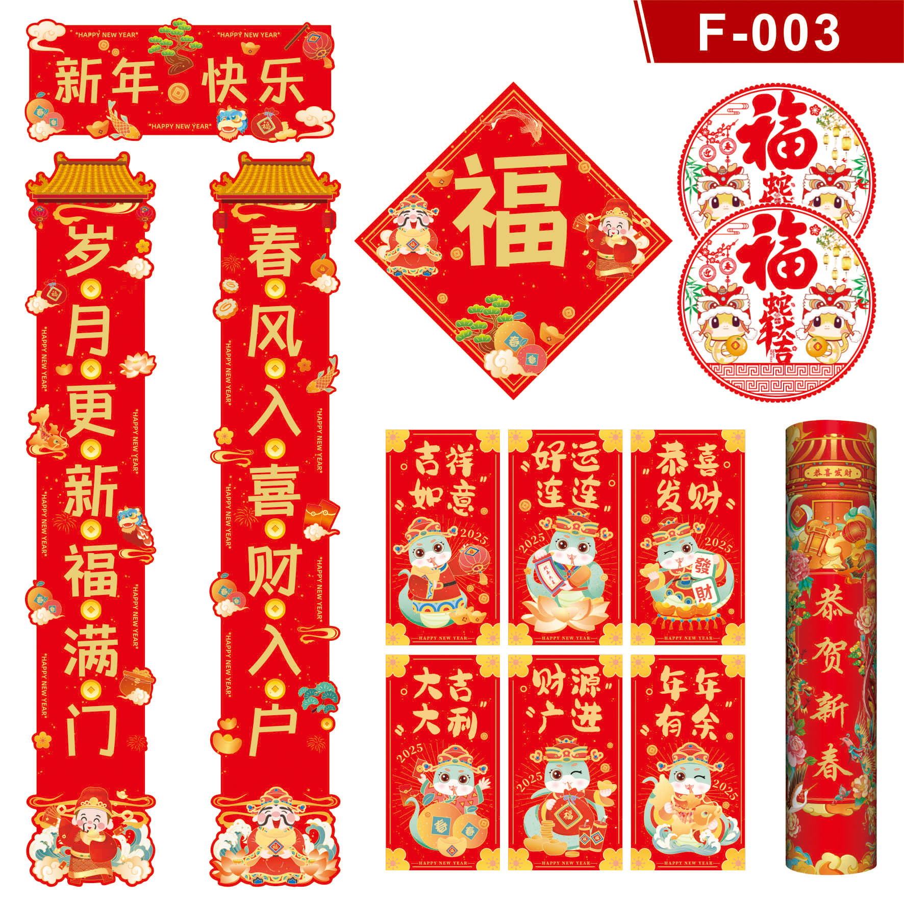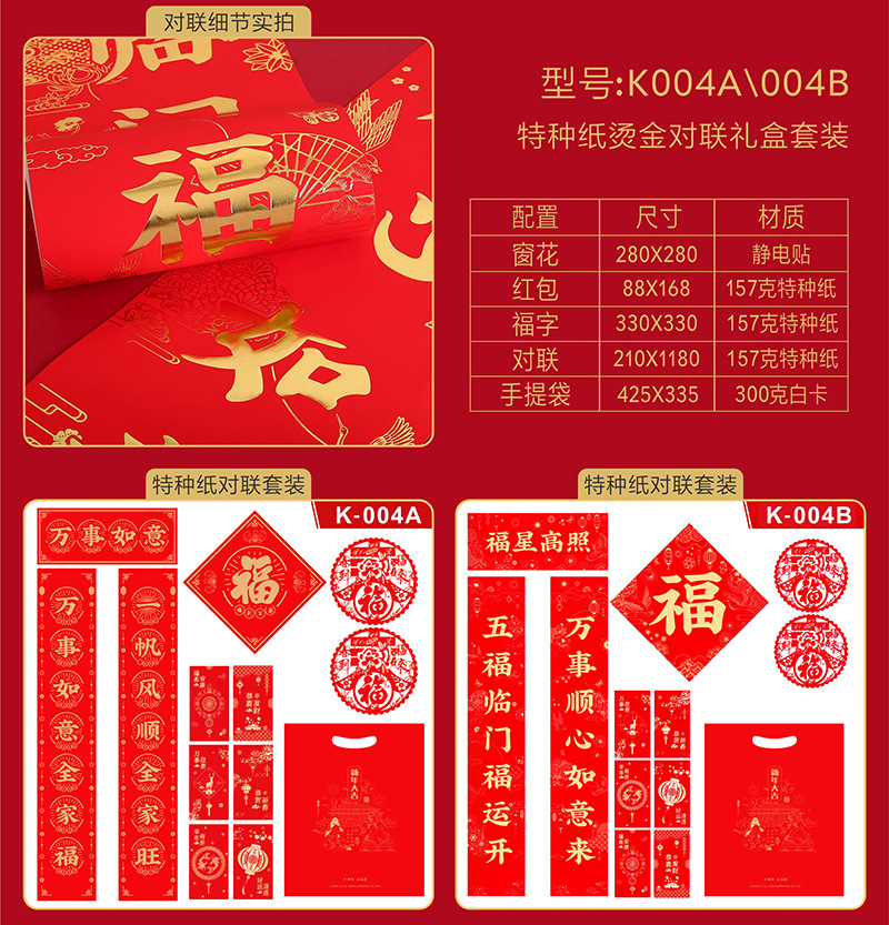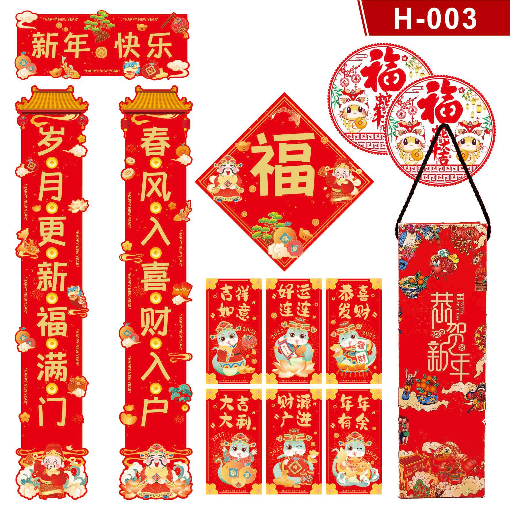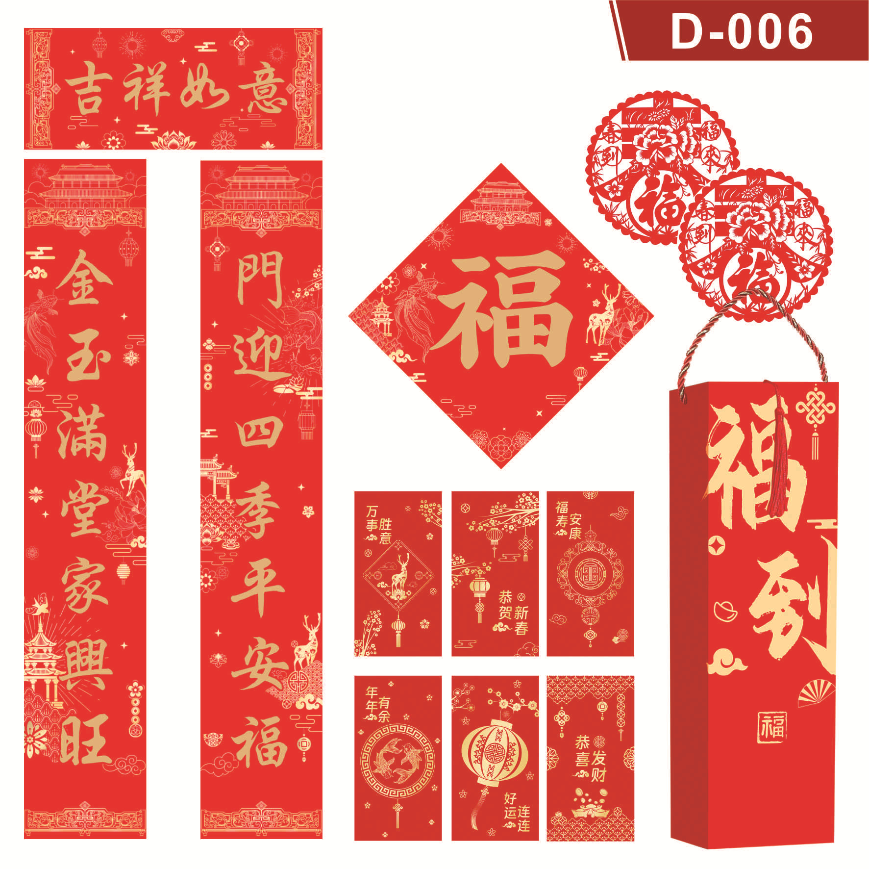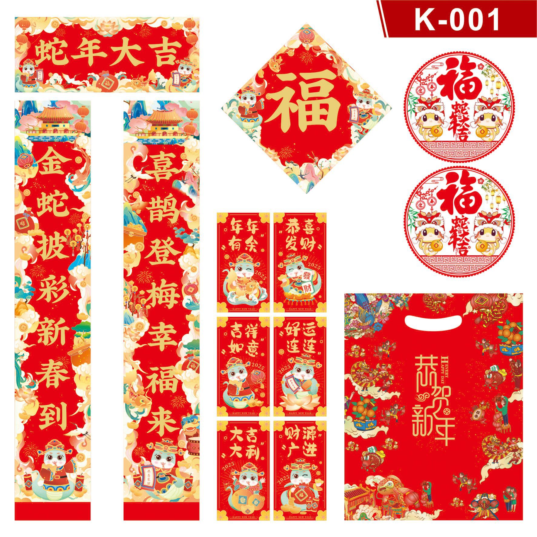 2025新年丝绸烫金对联春联定制现货蛇年植绒异形广告对联大礼包