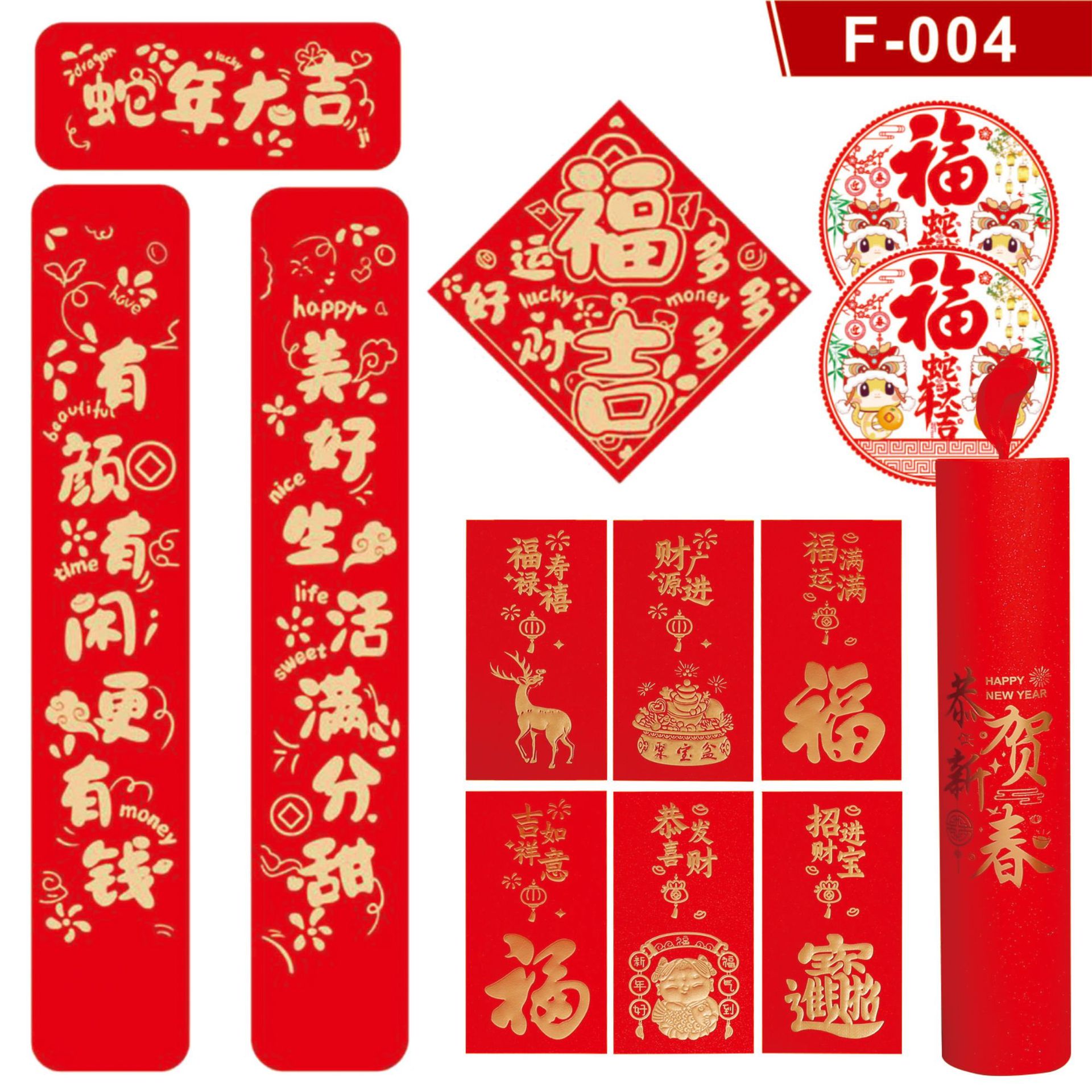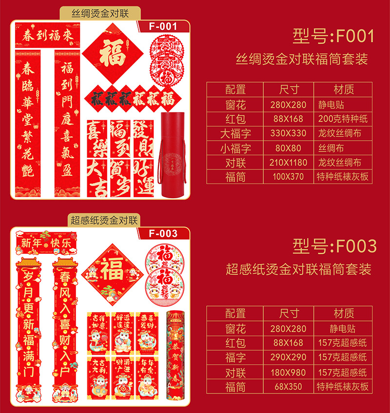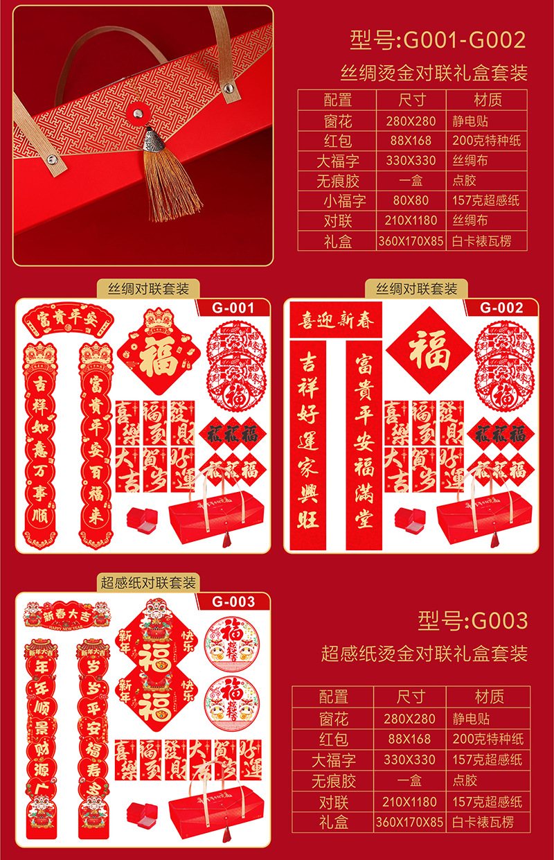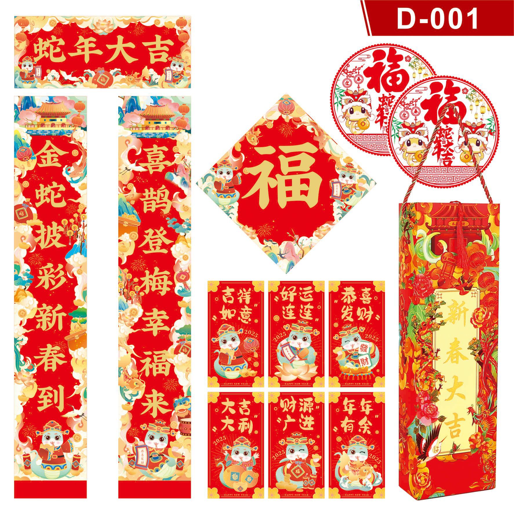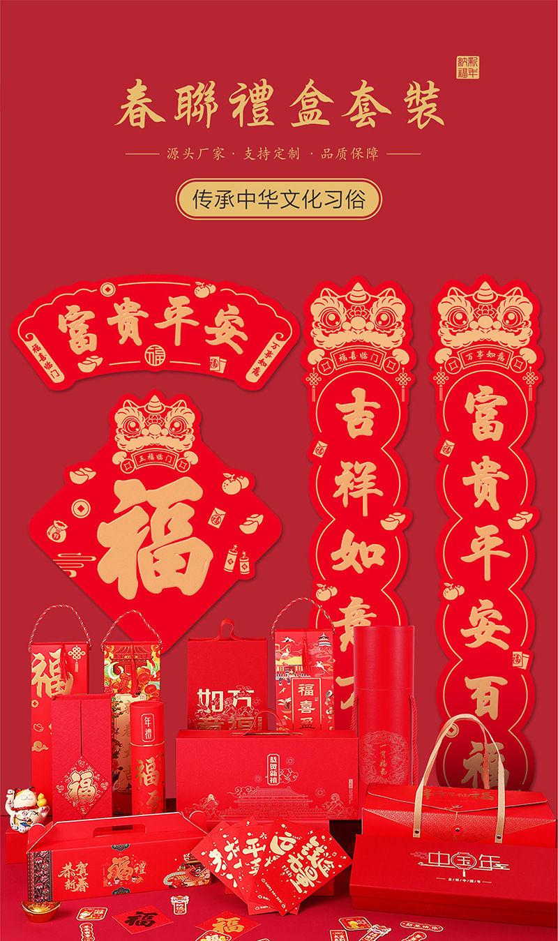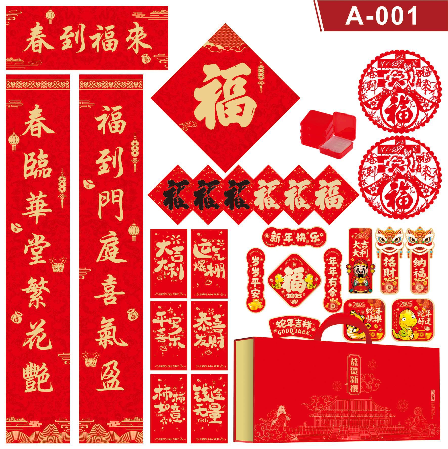 2025新年丝绸烫金对联春联定制现货蛇年植绒异形广告对联大礼包