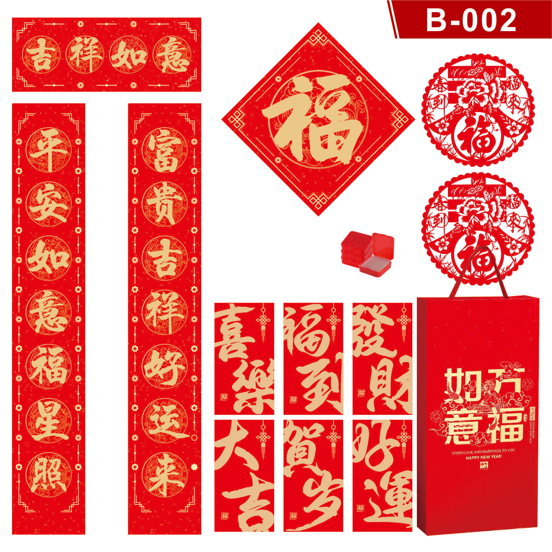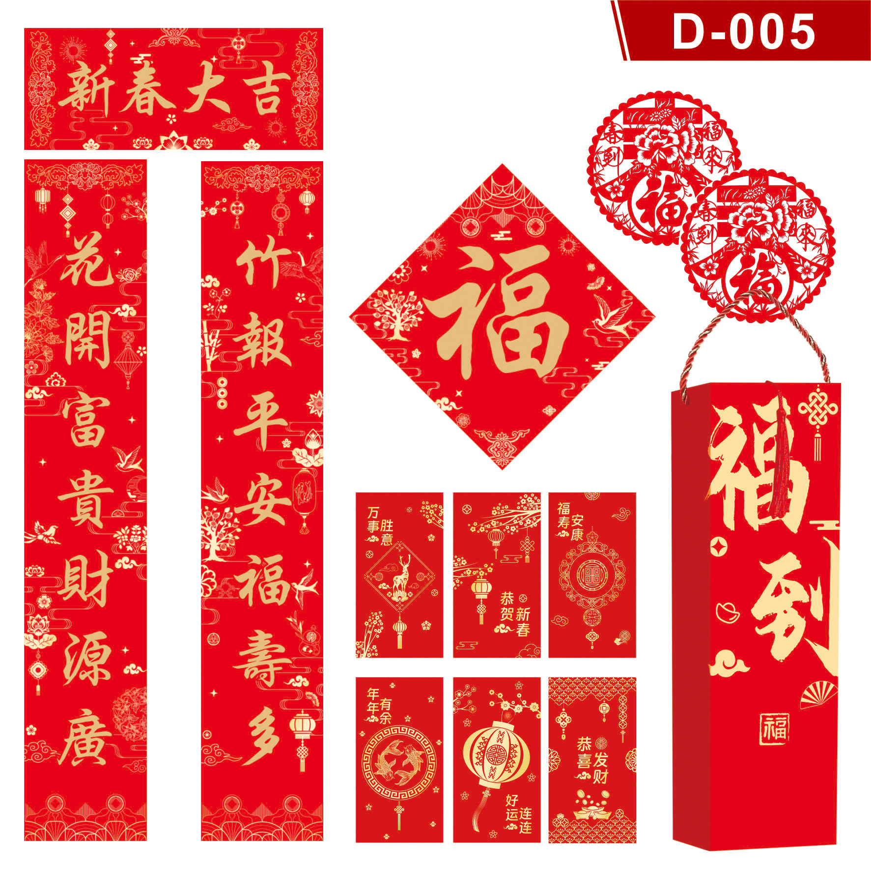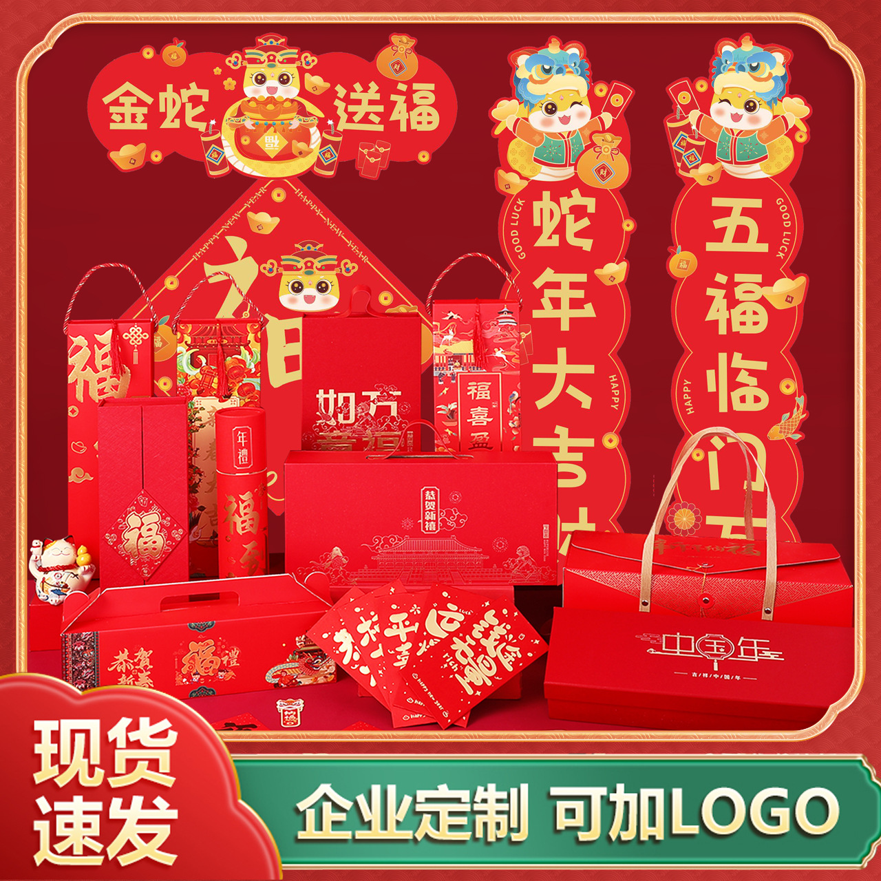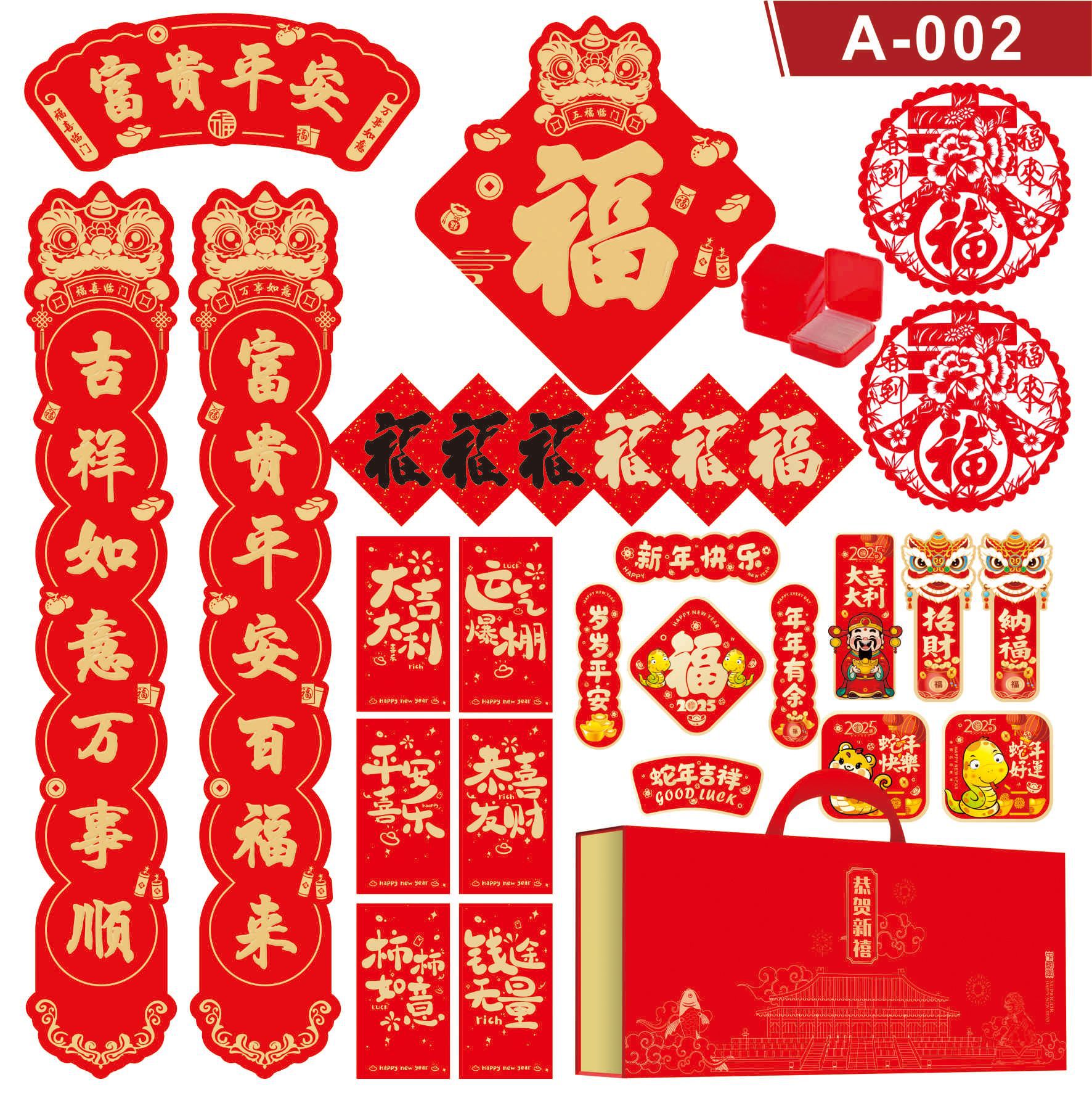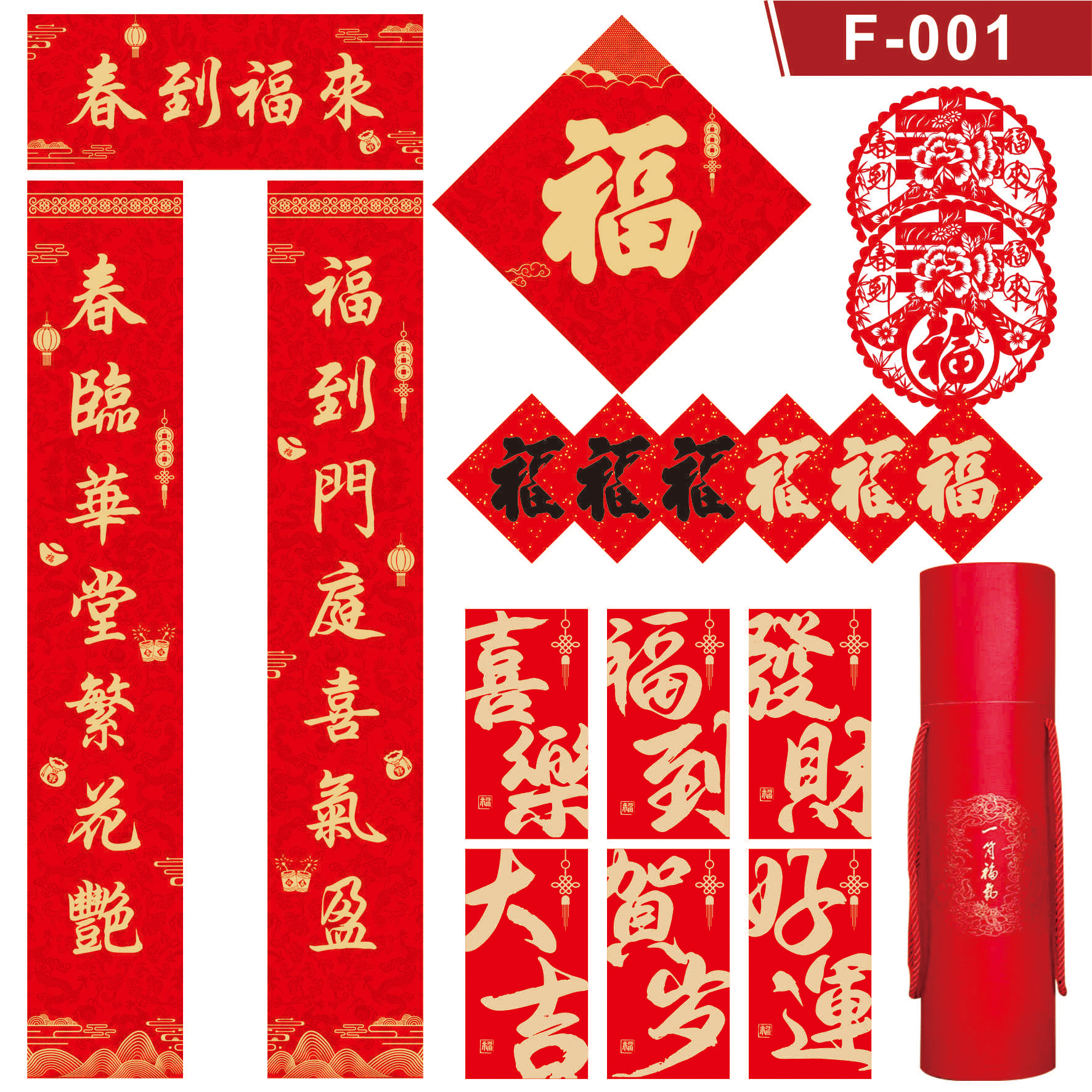 2025新年丝绸烫金对联春联定制现货蛇年植绒异形广告对联大礼包