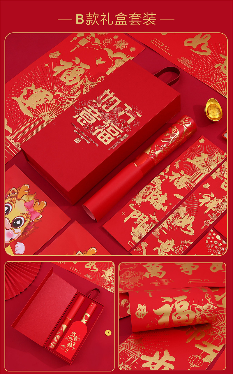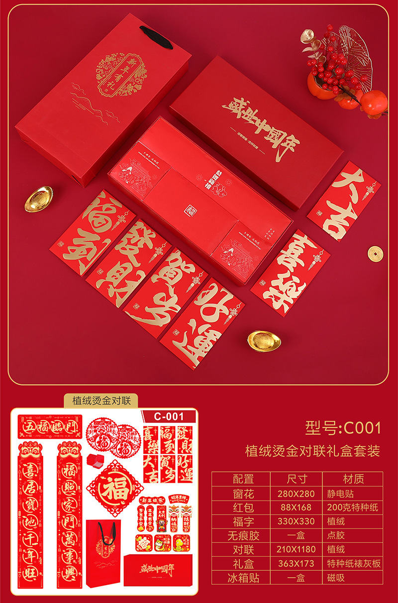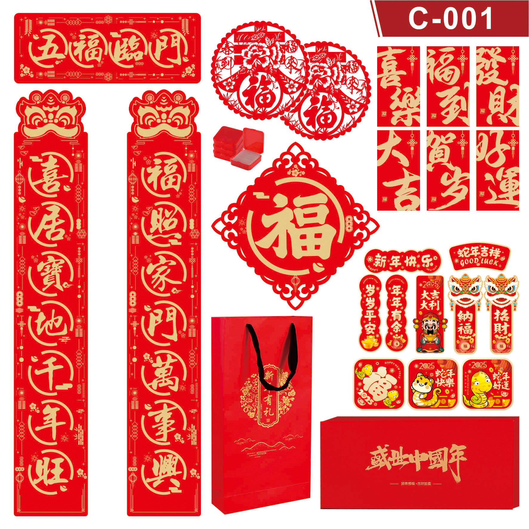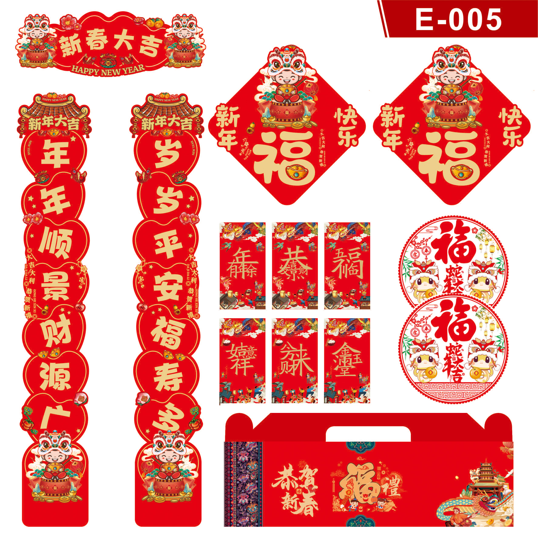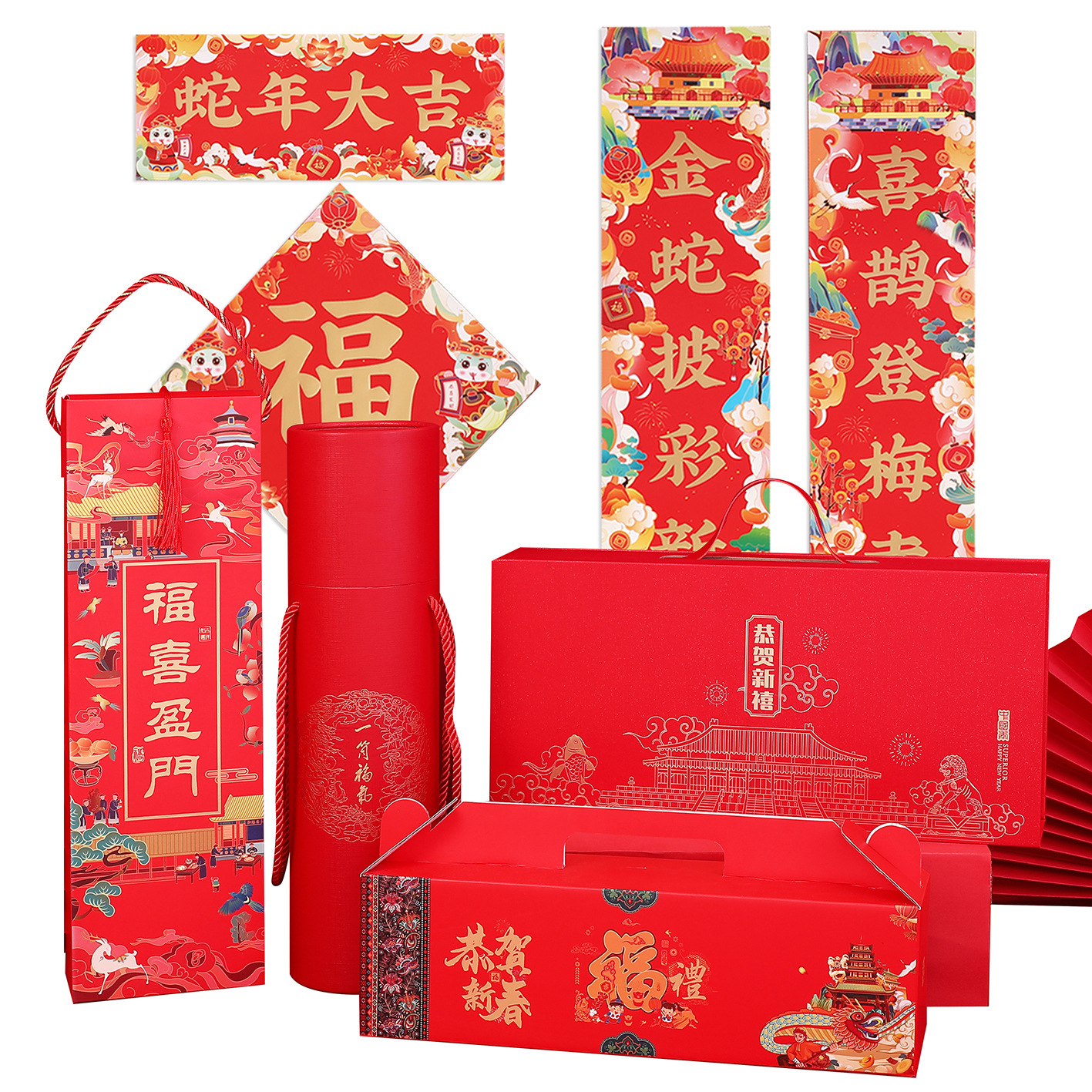 2025新年丝绸烫金对联春联定制现货蛇年植绒异形广告对联大礼包