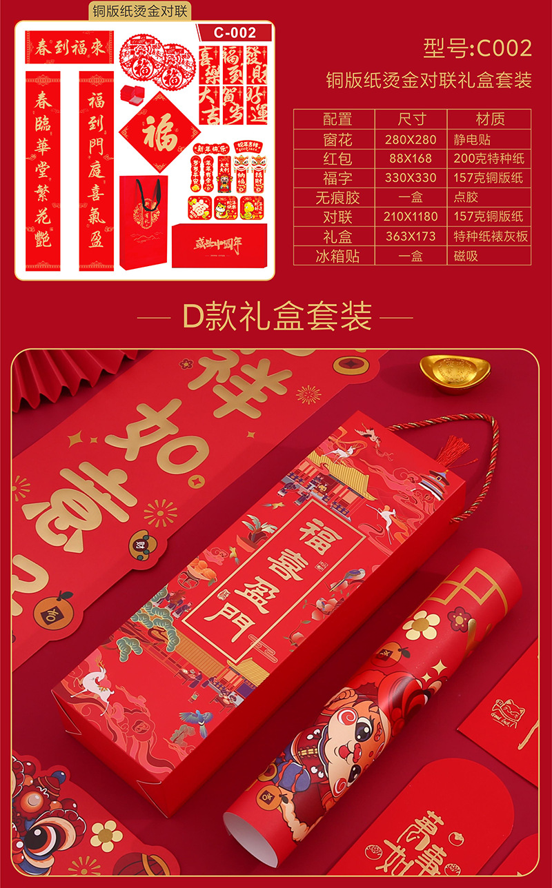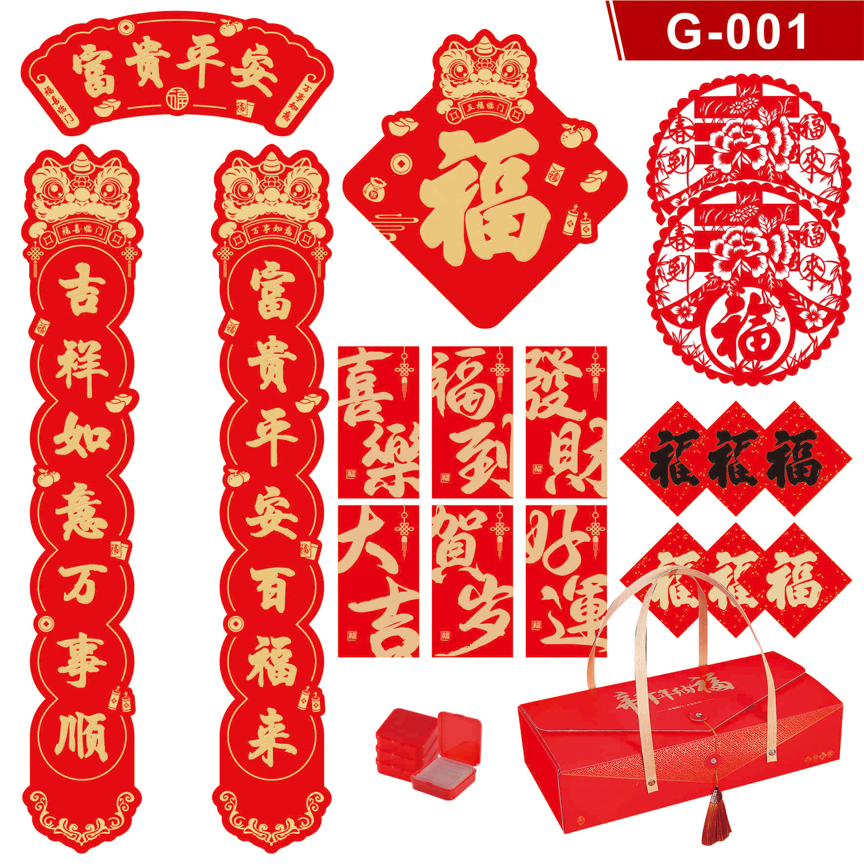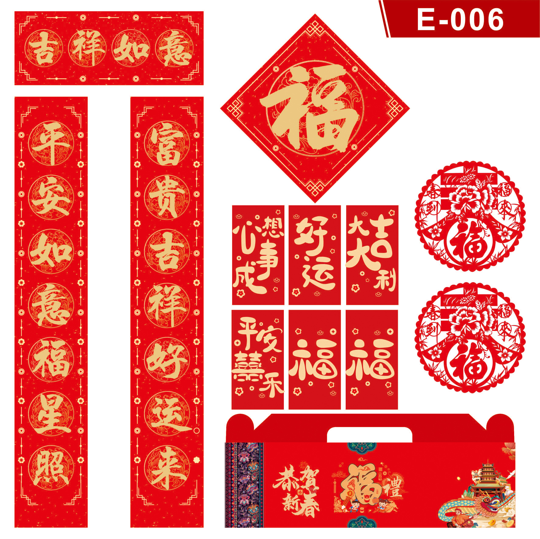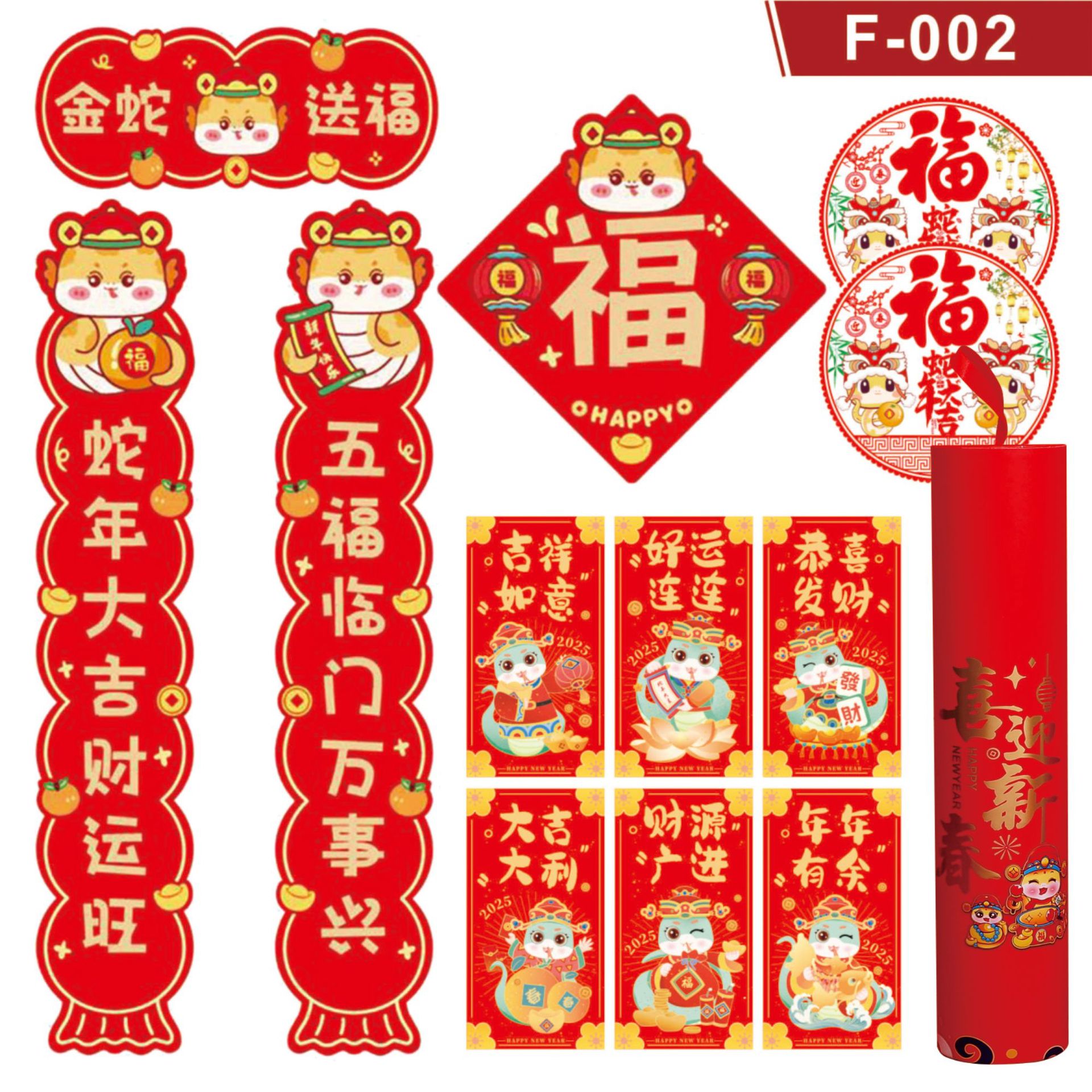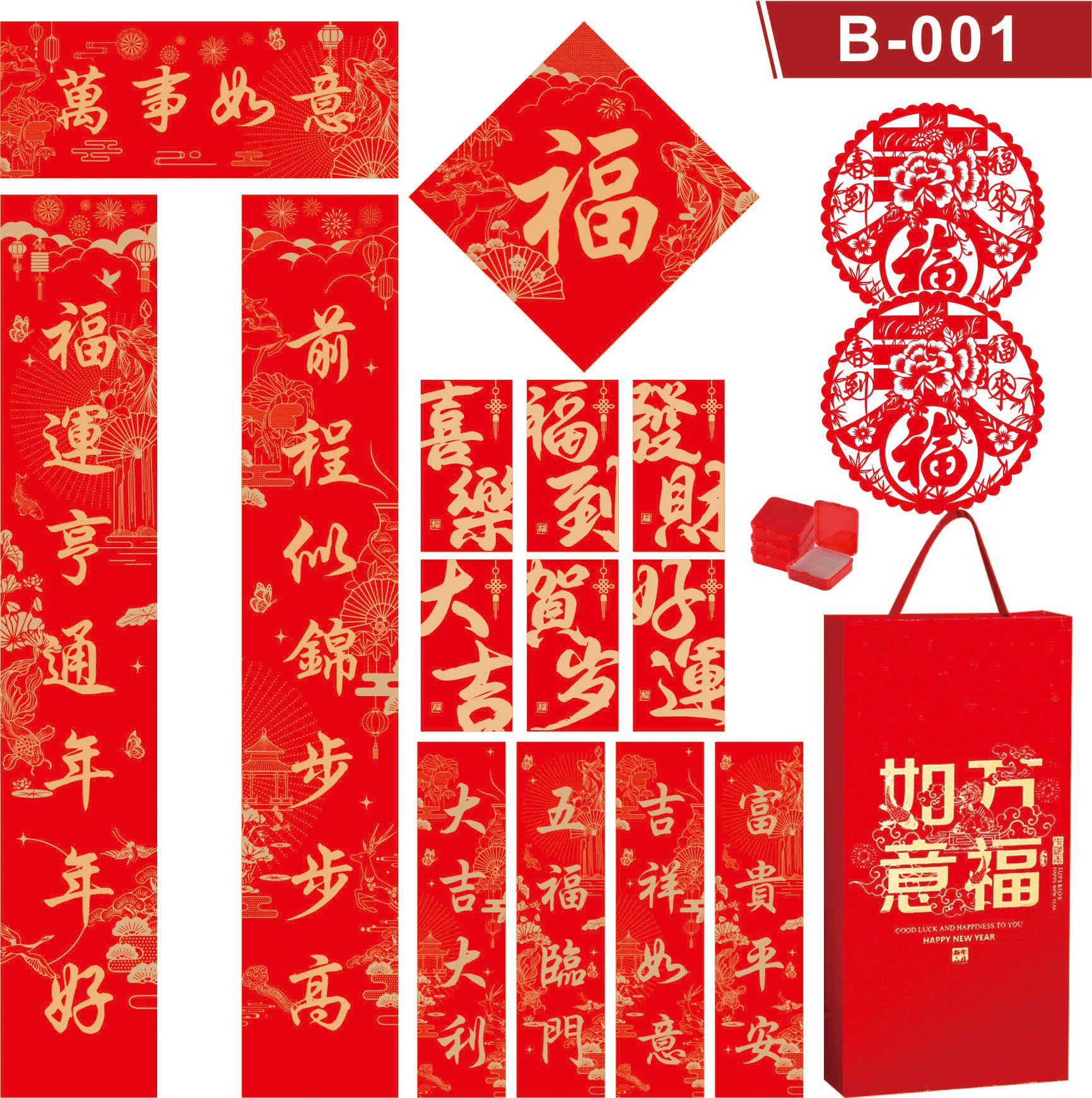 2025新年丝绸烫金对联春联定制现货蛇年植绒异形广告对联大礼包