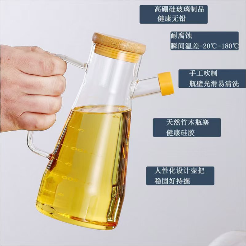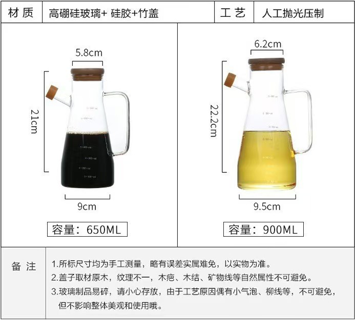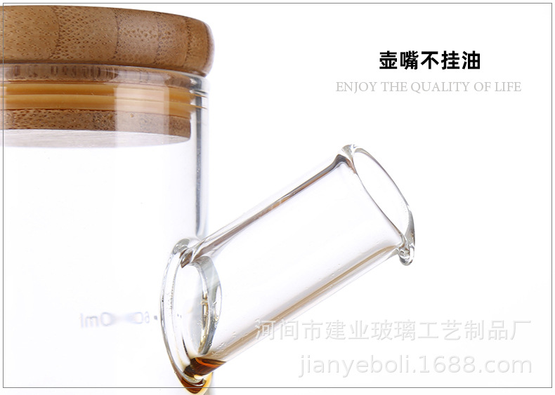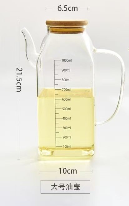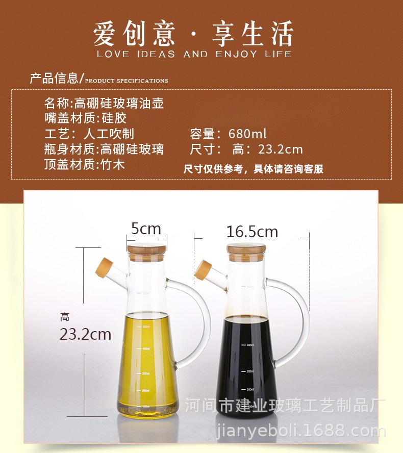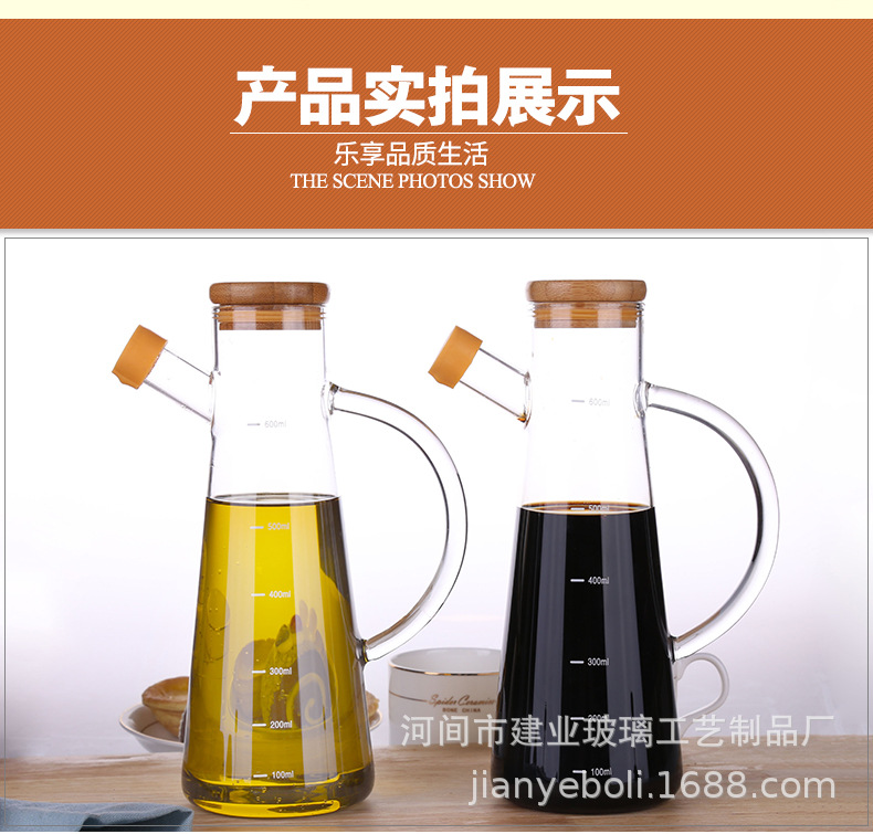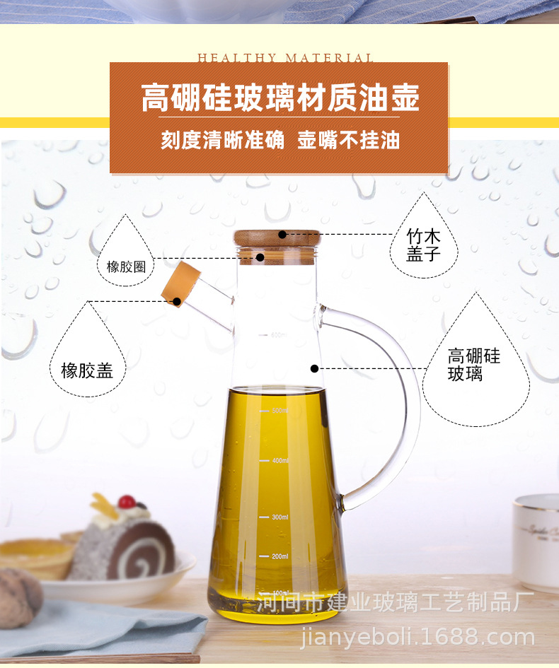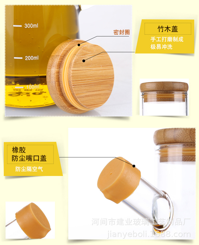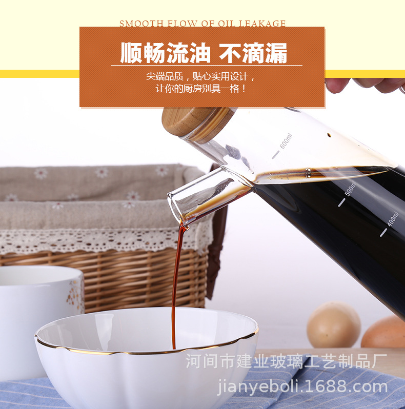 高硼硅玻璃油壶 创意酱油、醋调味瓶厨房用品带竹木盖防尘油瓶