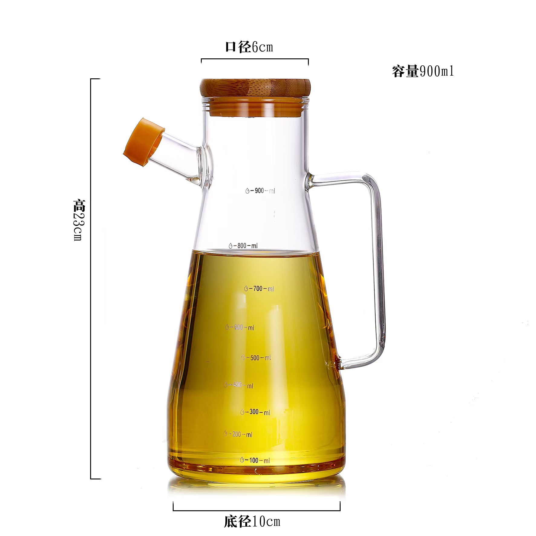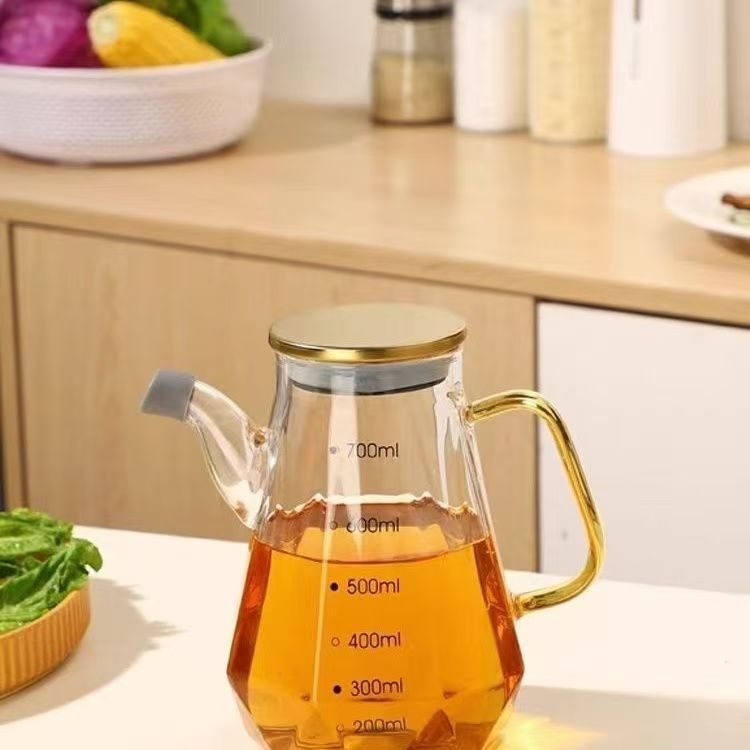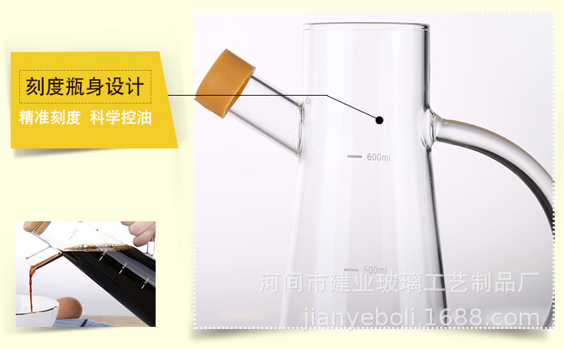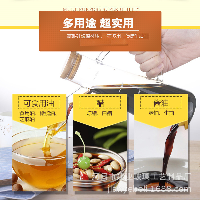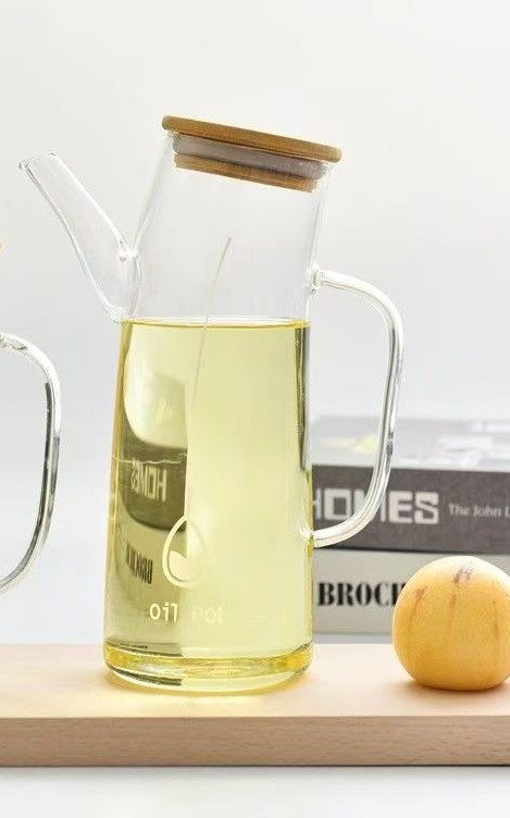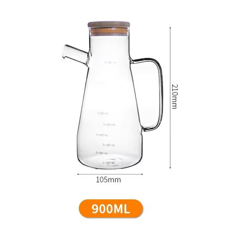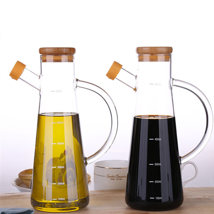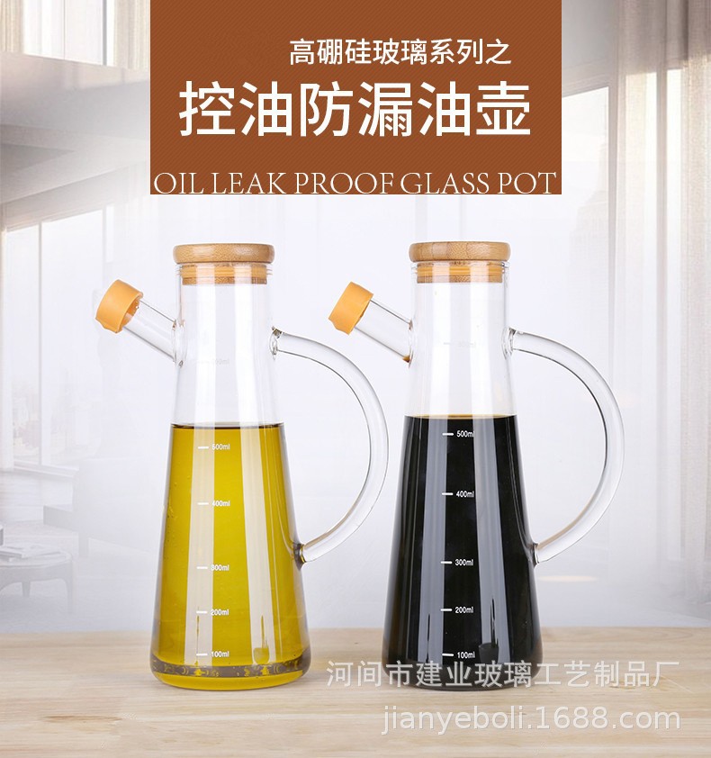 高硼硅玻璃油壶 创意酱油、醋调味瓶厨房用品带竹木盖防尘油瓶