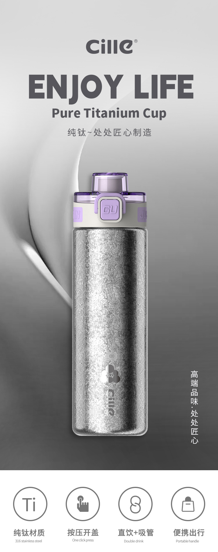 希乐保温杯纯钛杯男女士养生吸管杯子高档商务高颜值便携泡茶水杯