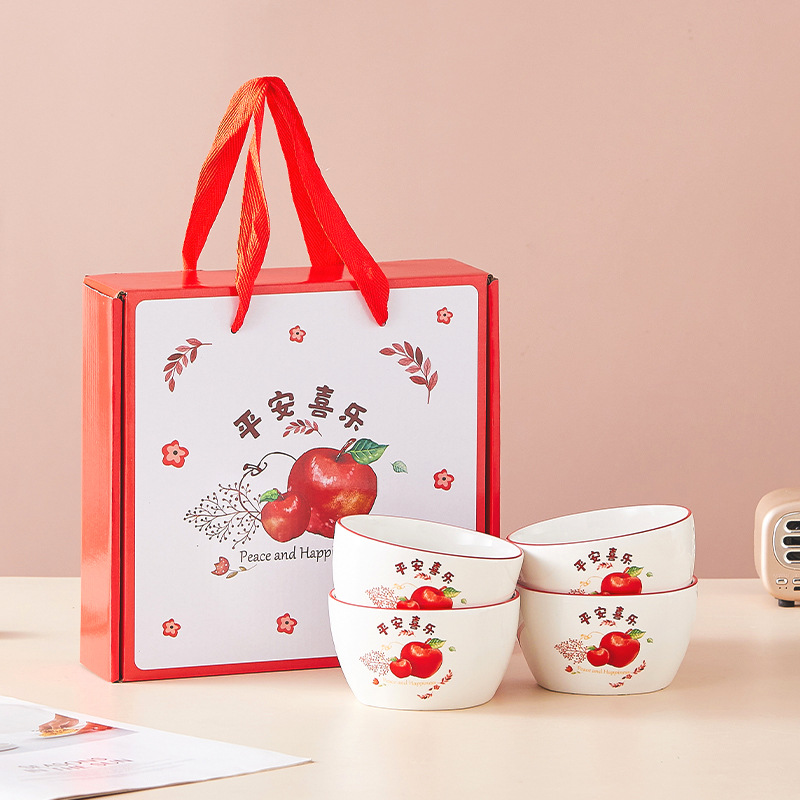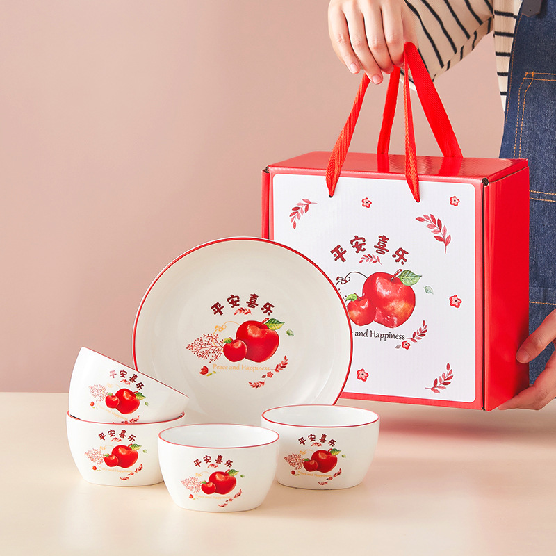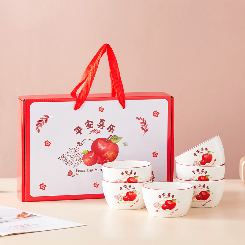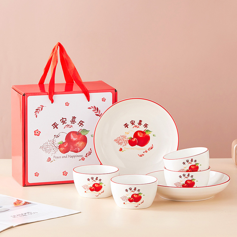 平安喜乐创意陶瓷餐具套装礼品碗礼盒装实用开业活动礼品赠送批发