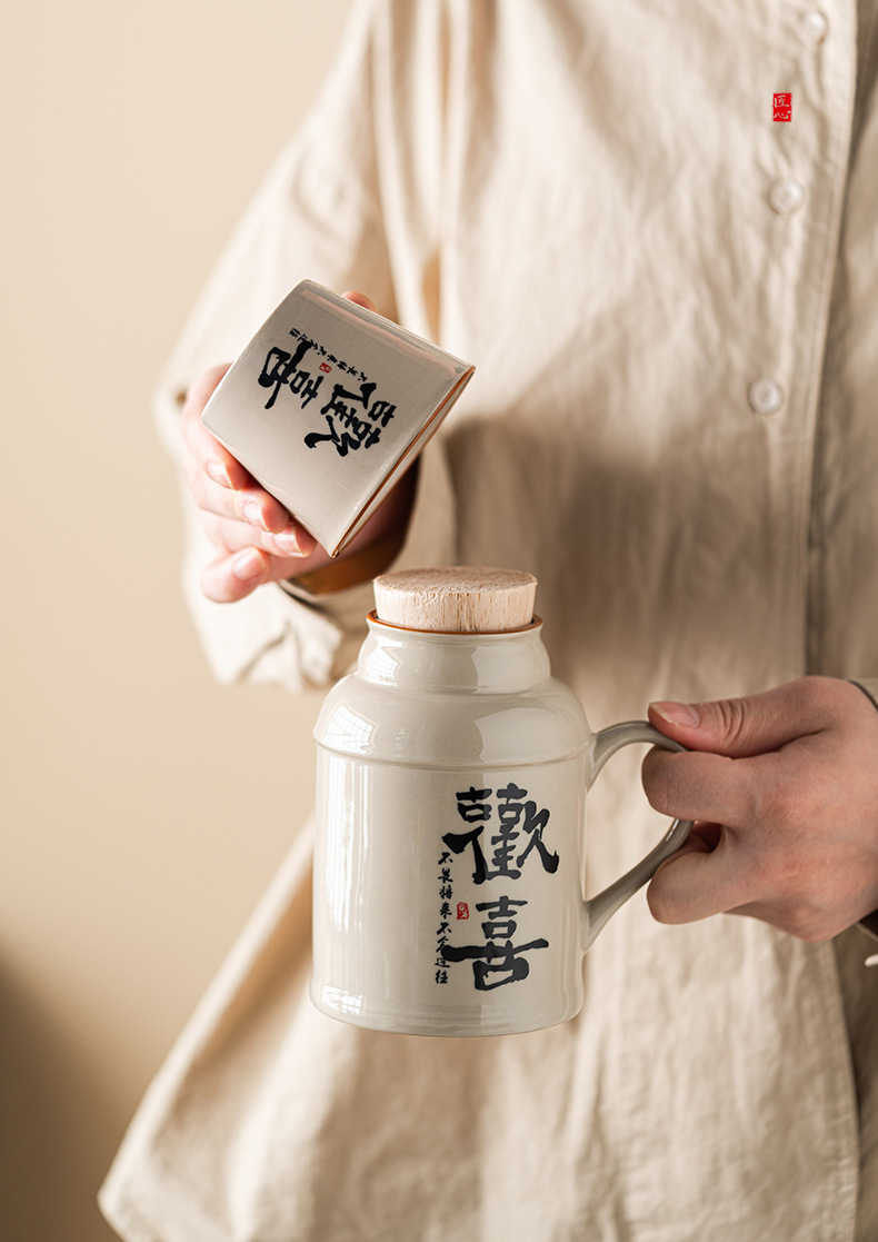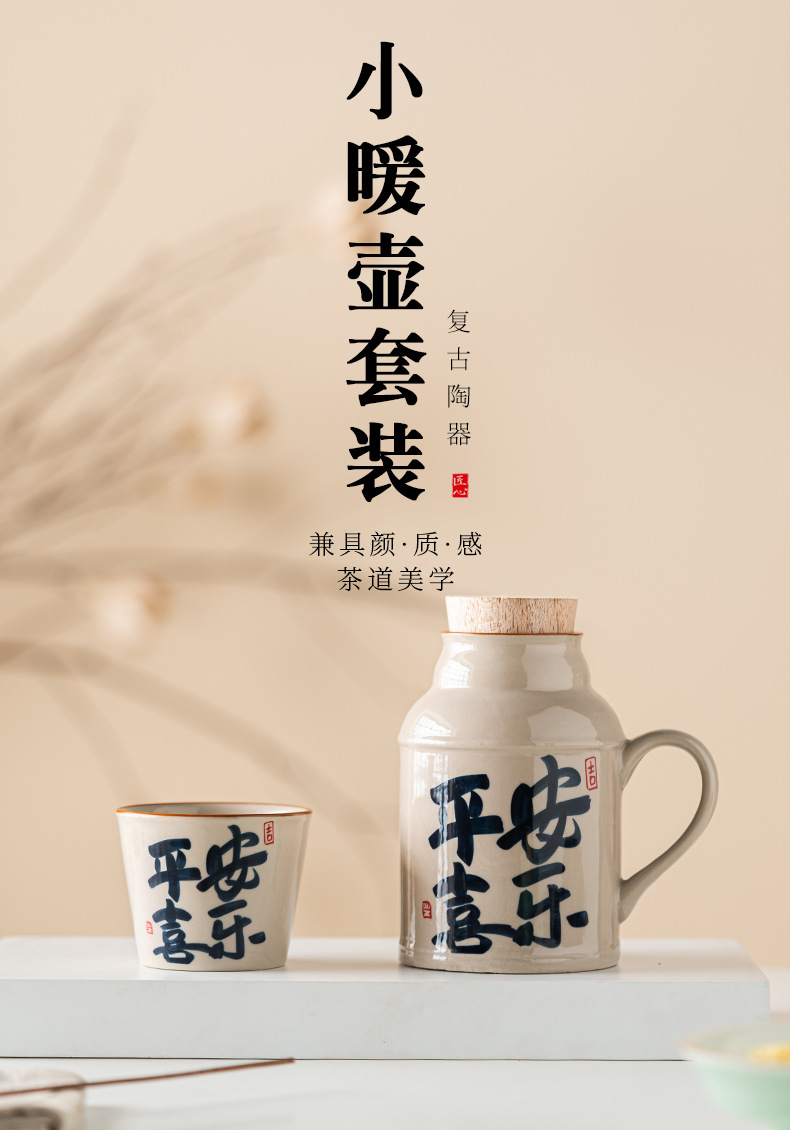陶瓷焖泡茶壶带茶杯中式仿古小暖壶大容量马克杯陶瓷伴手礼品批发