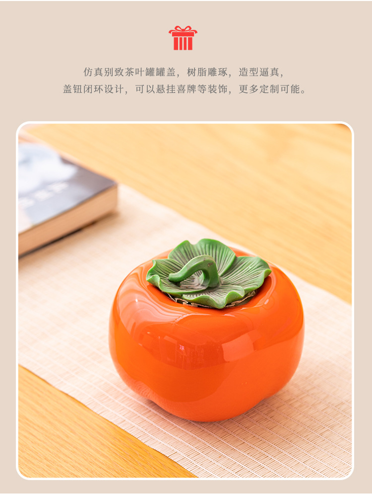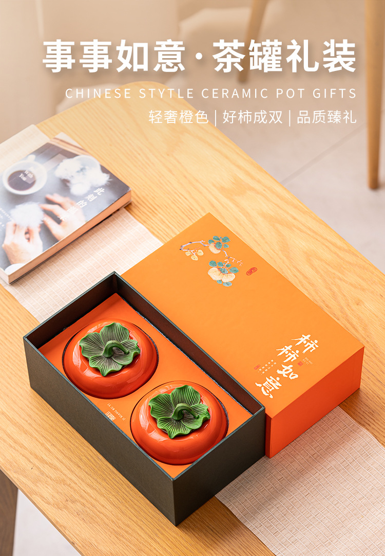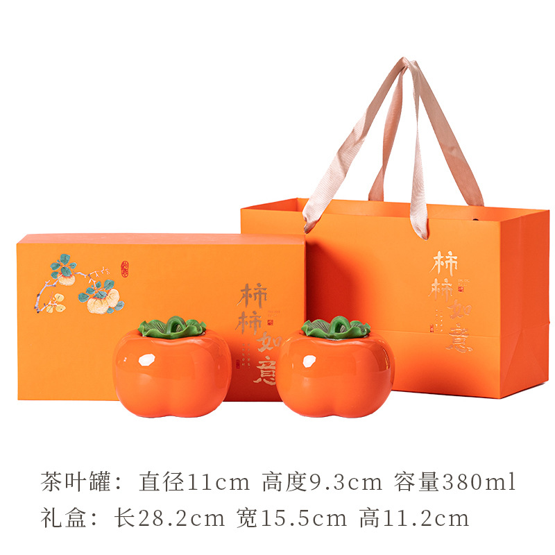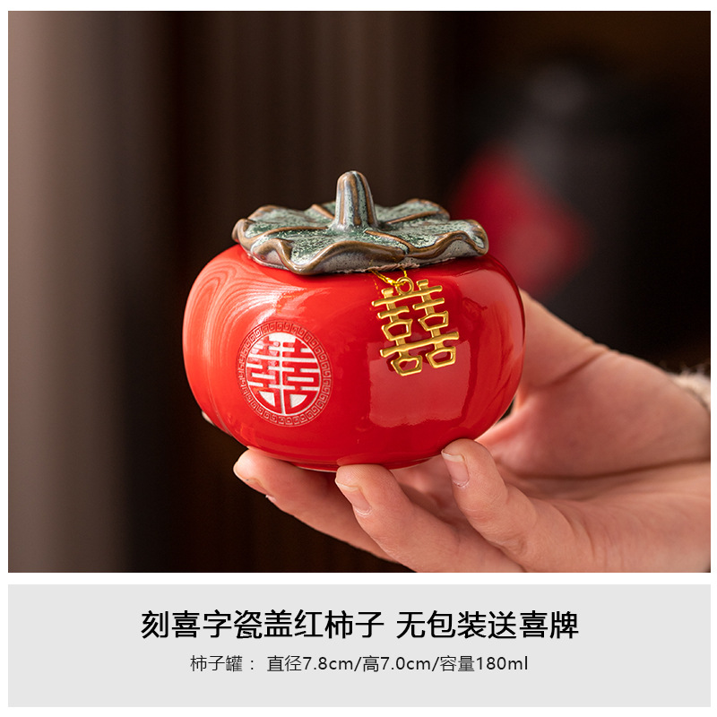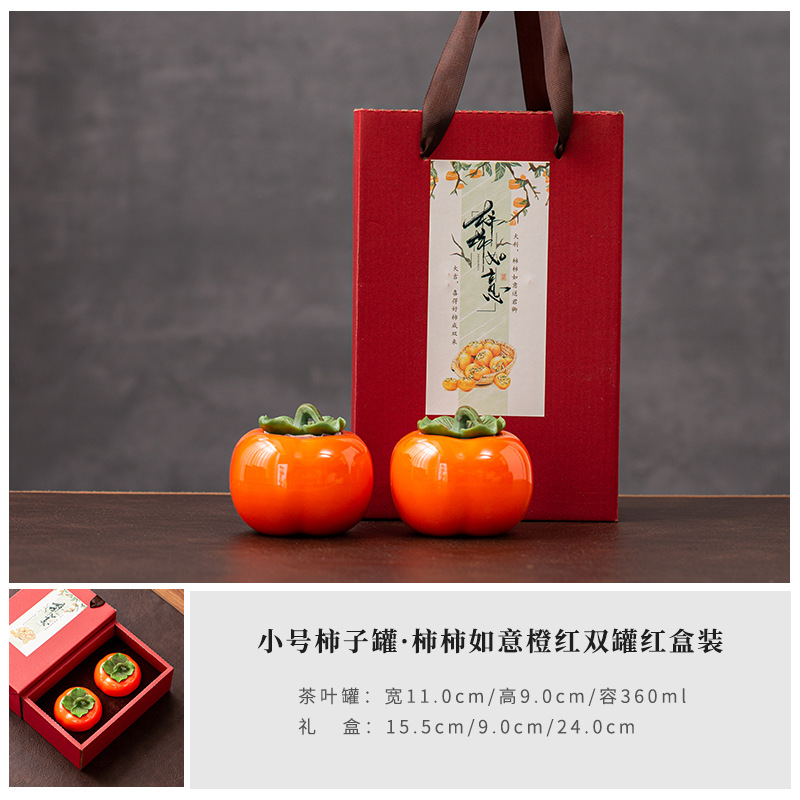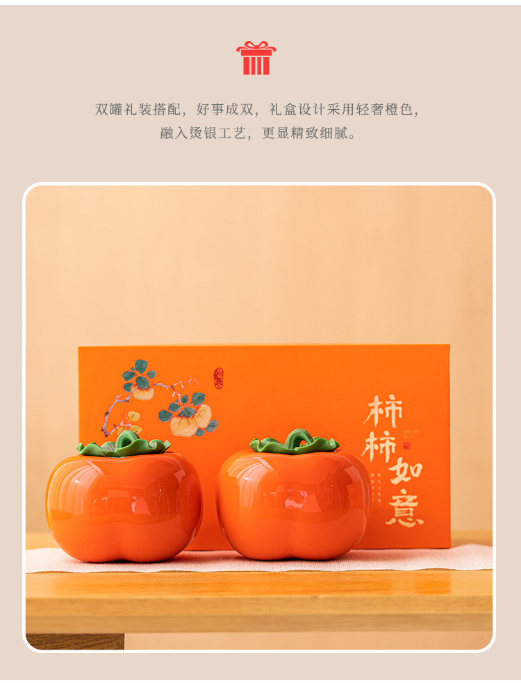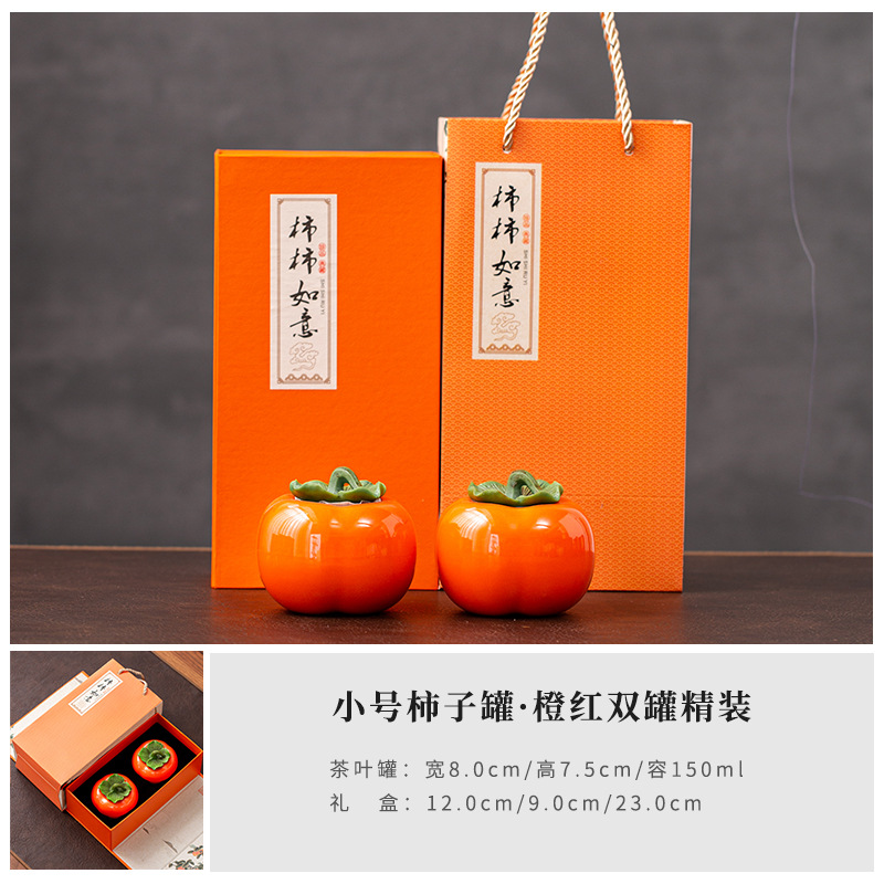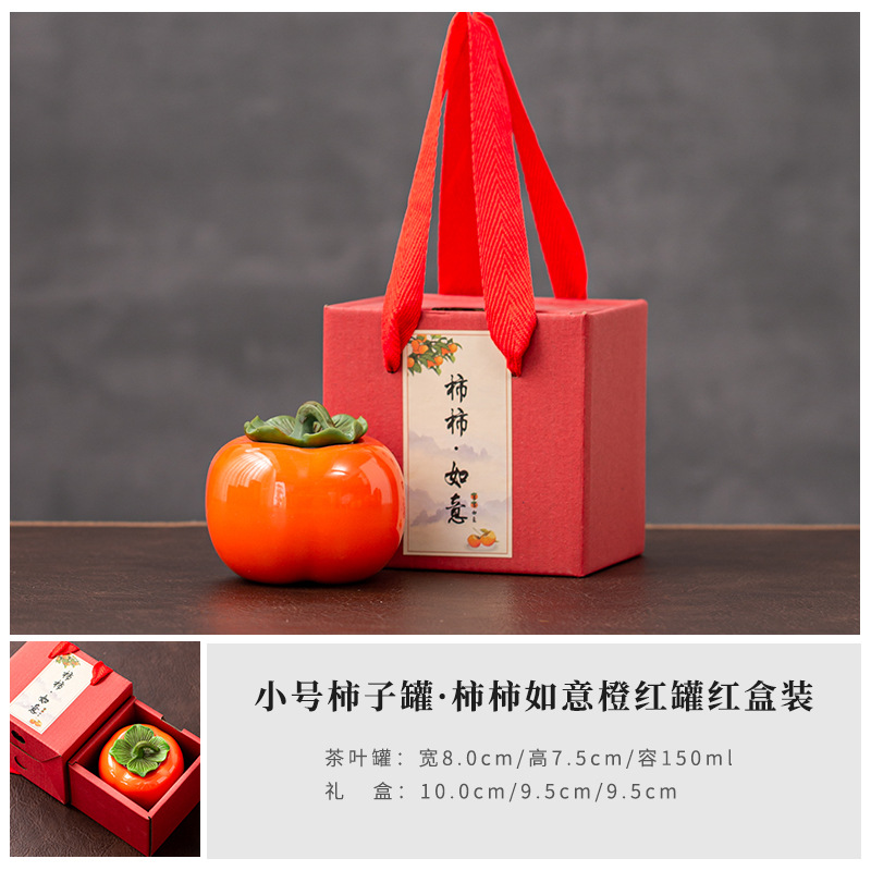 事事如意柿柿如意陶瓷茶叶罐柿子茶罐密封储茶罐便携喜糖罐伴手礼