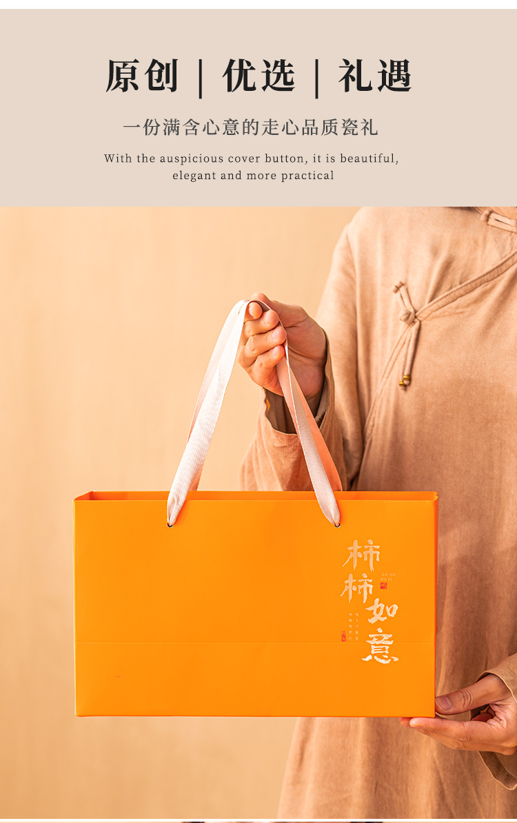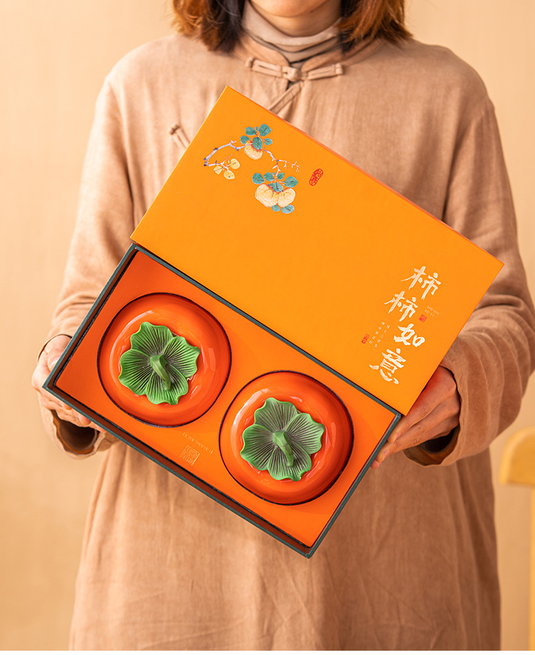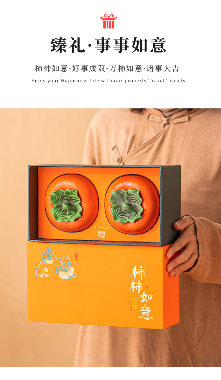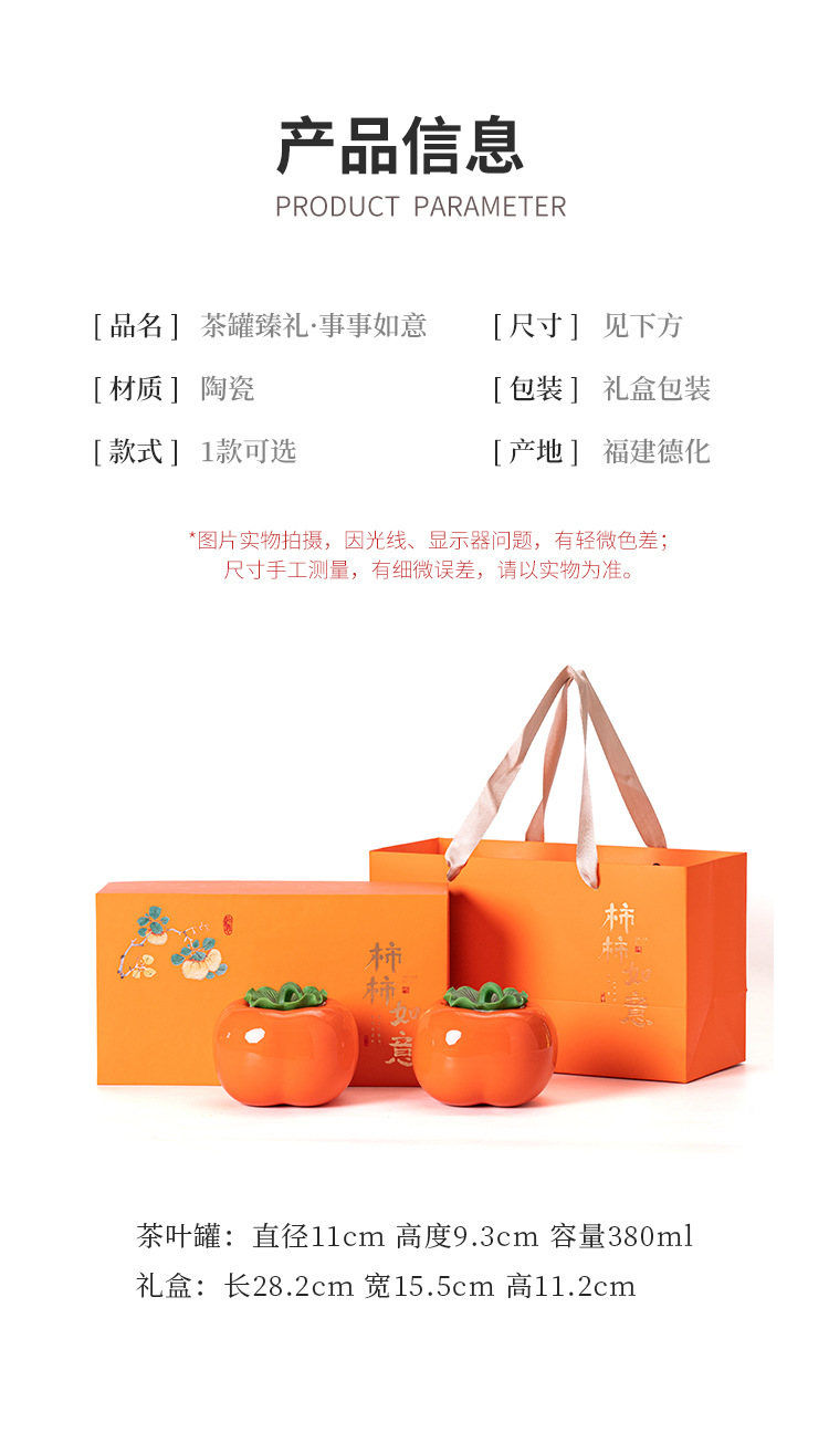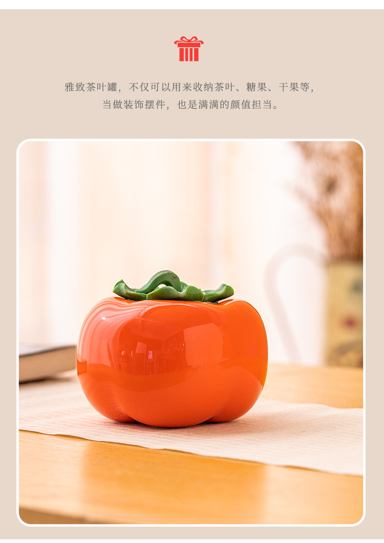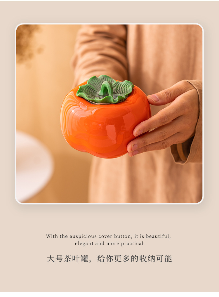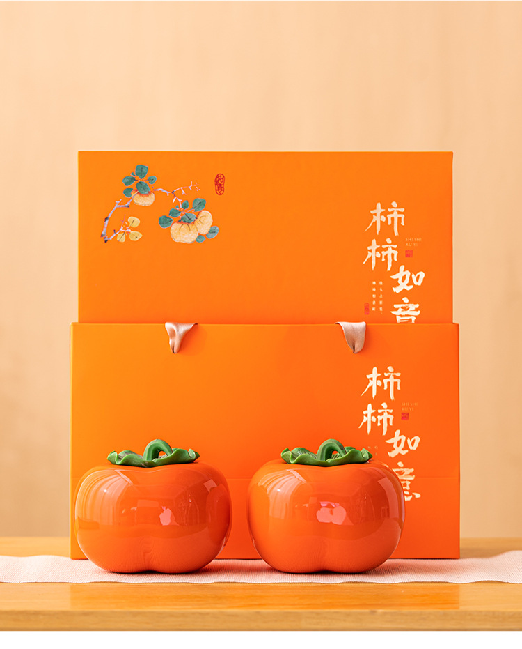 事事如意柿柿如意陶瓷茶叶罐柿子茶罐密封储茶罐便携喜糖罐伴手礼