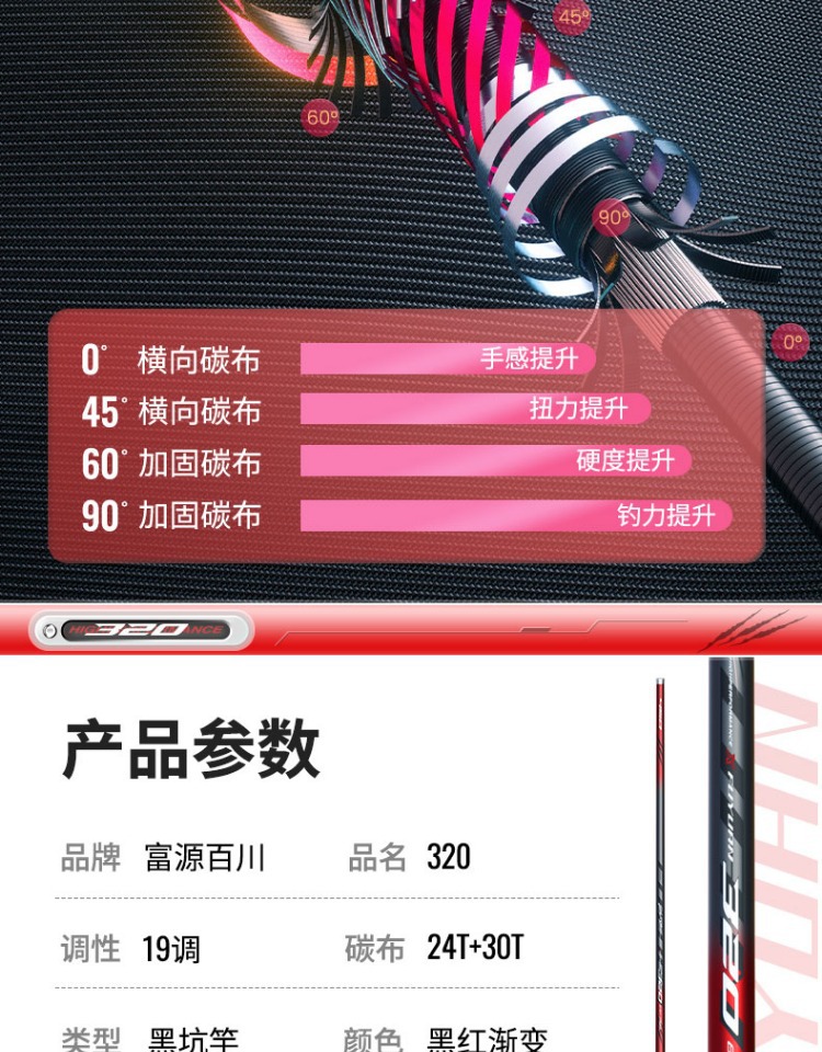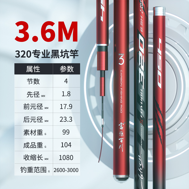 富源百川320黑坑鱼竿超硬钓鱼手竿鲫鱼杆手杆台钓鱼杆罗飞竿