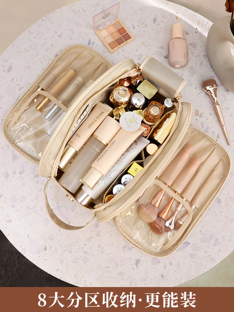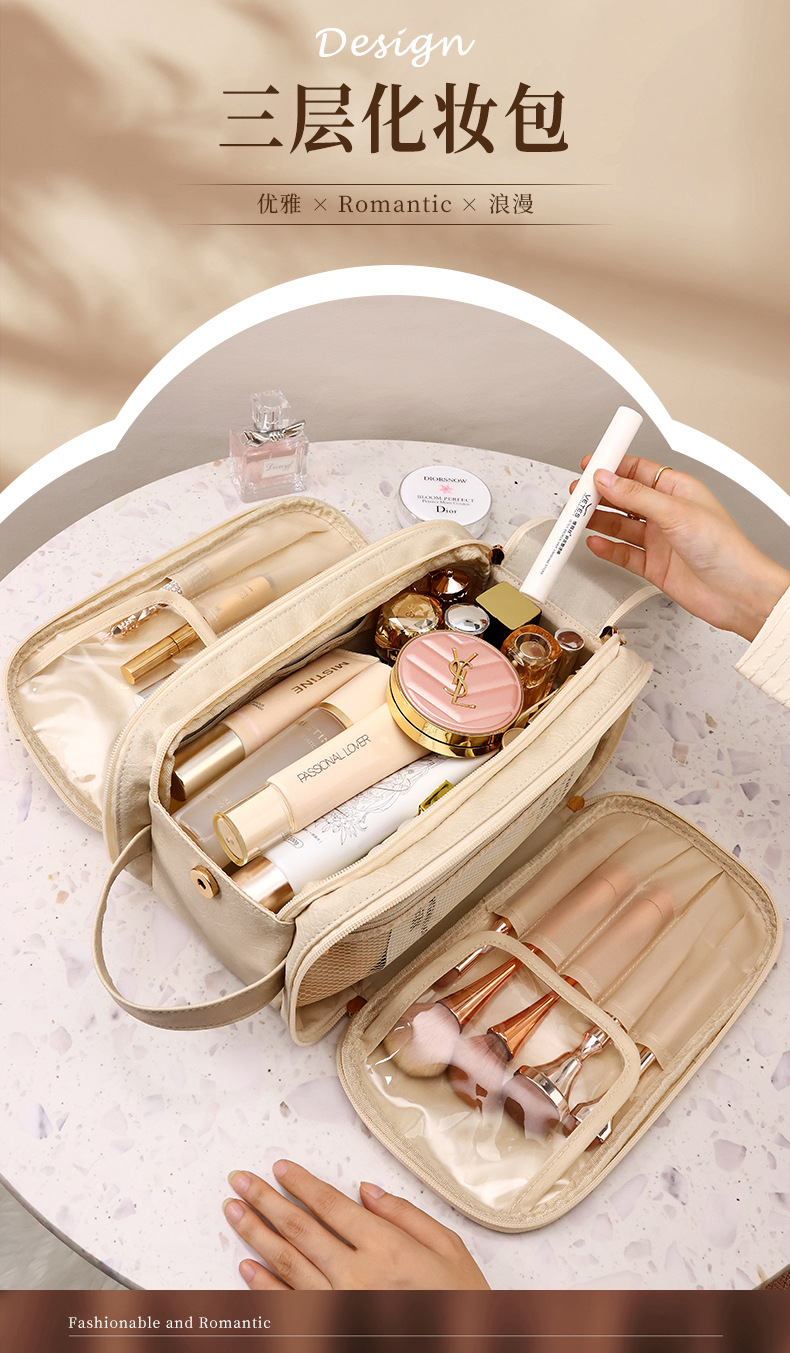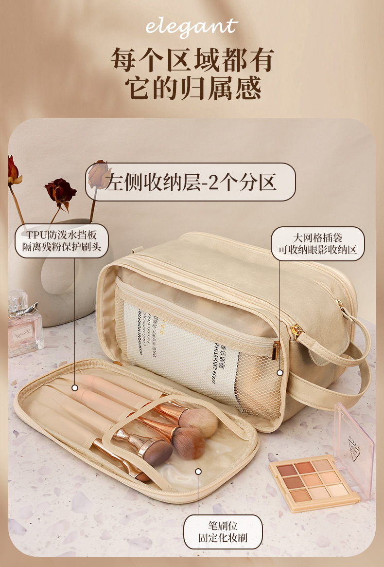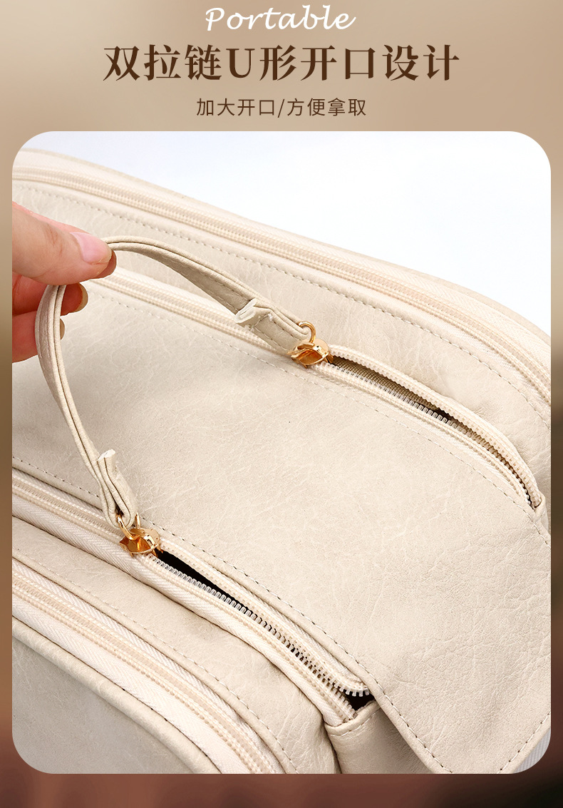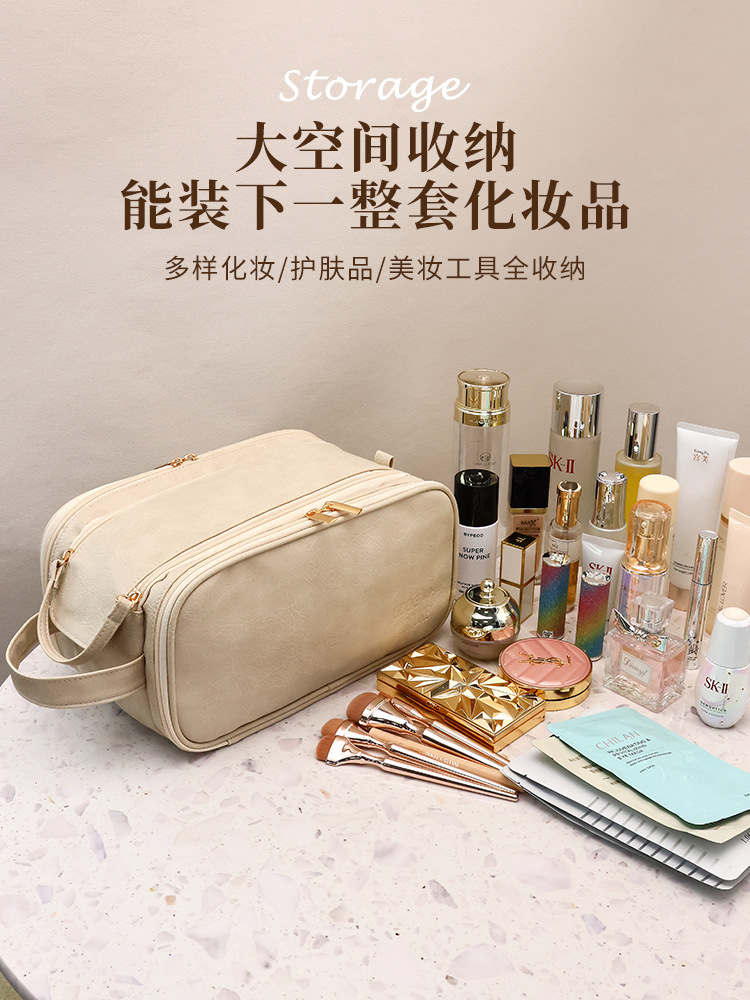 时尚双拉链化妆包手提洗漱用品收纳袋PU旅行防水洗漱包便携收纳包