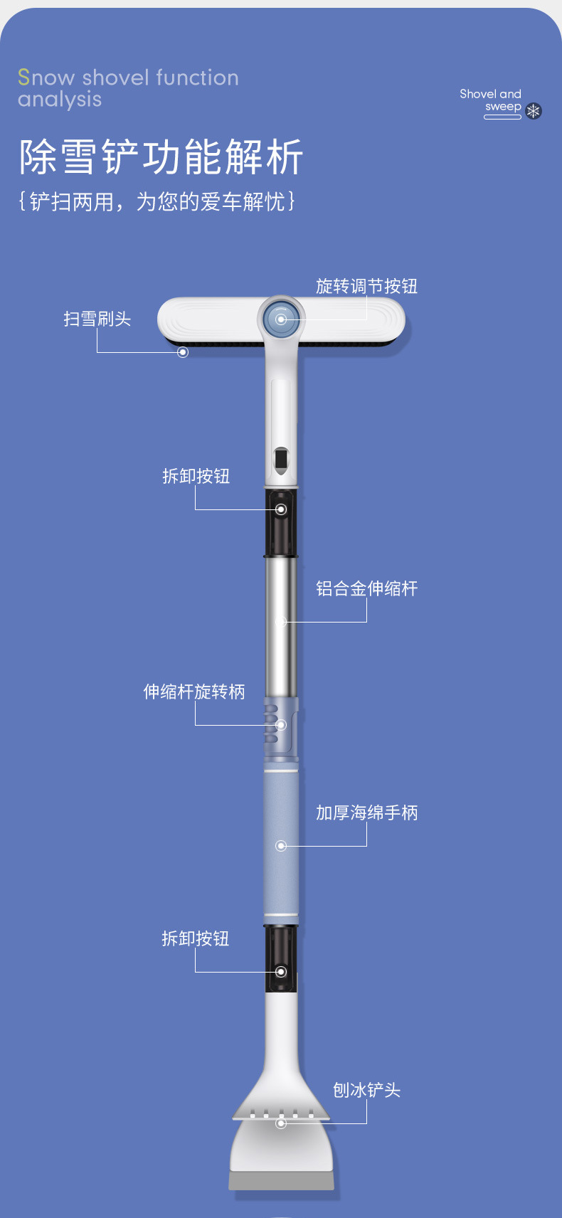 汽车多功能除雪铲铝合金车载清车载雪铲车用冰铲除霜铲刮雪