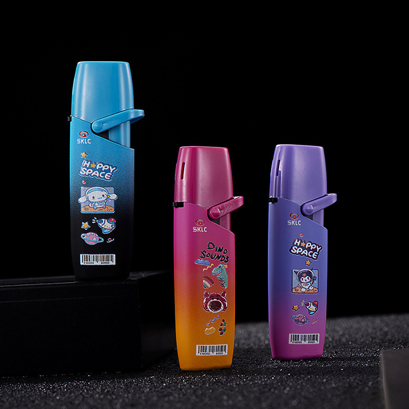 RZ802摇臂渐变防风打火机迷你卡通直冲气体充气打火机小巧便携