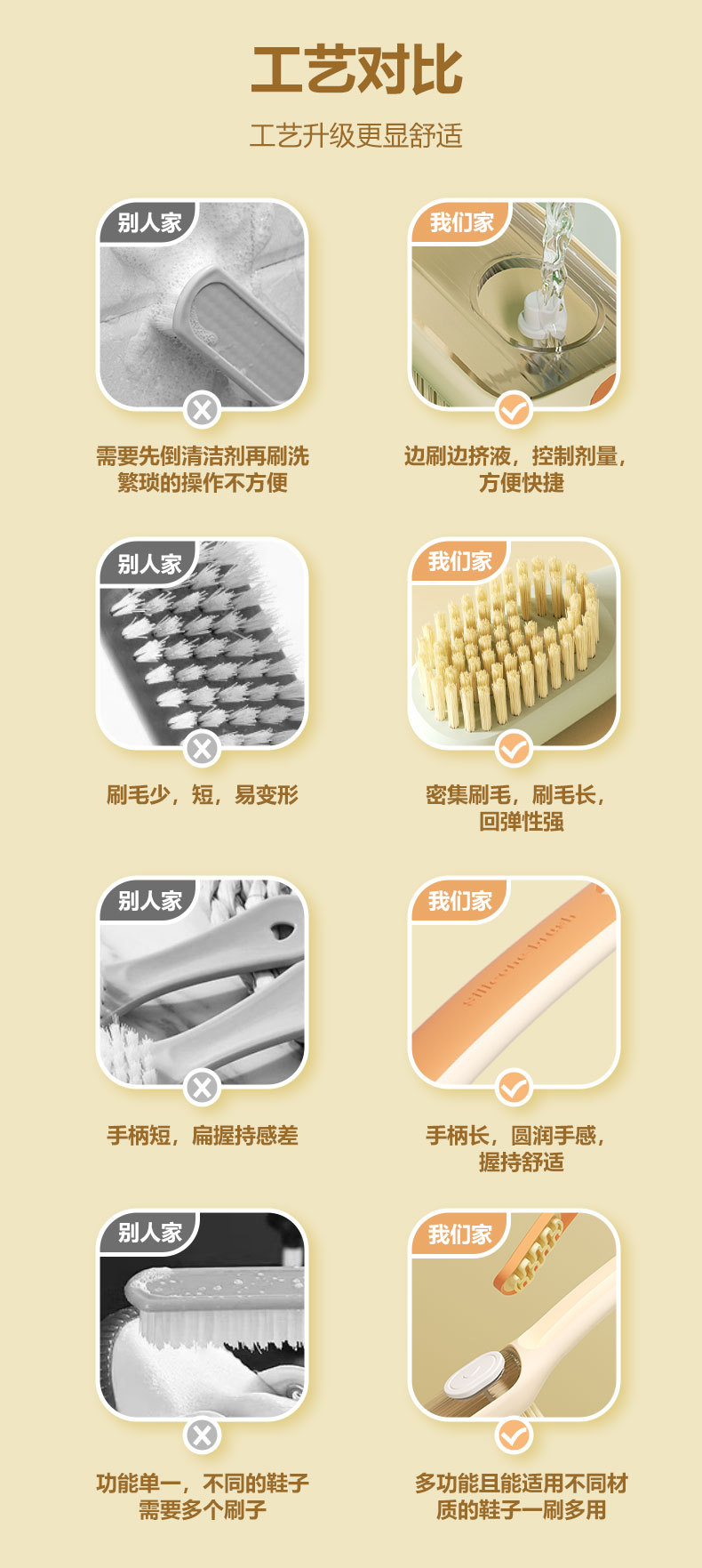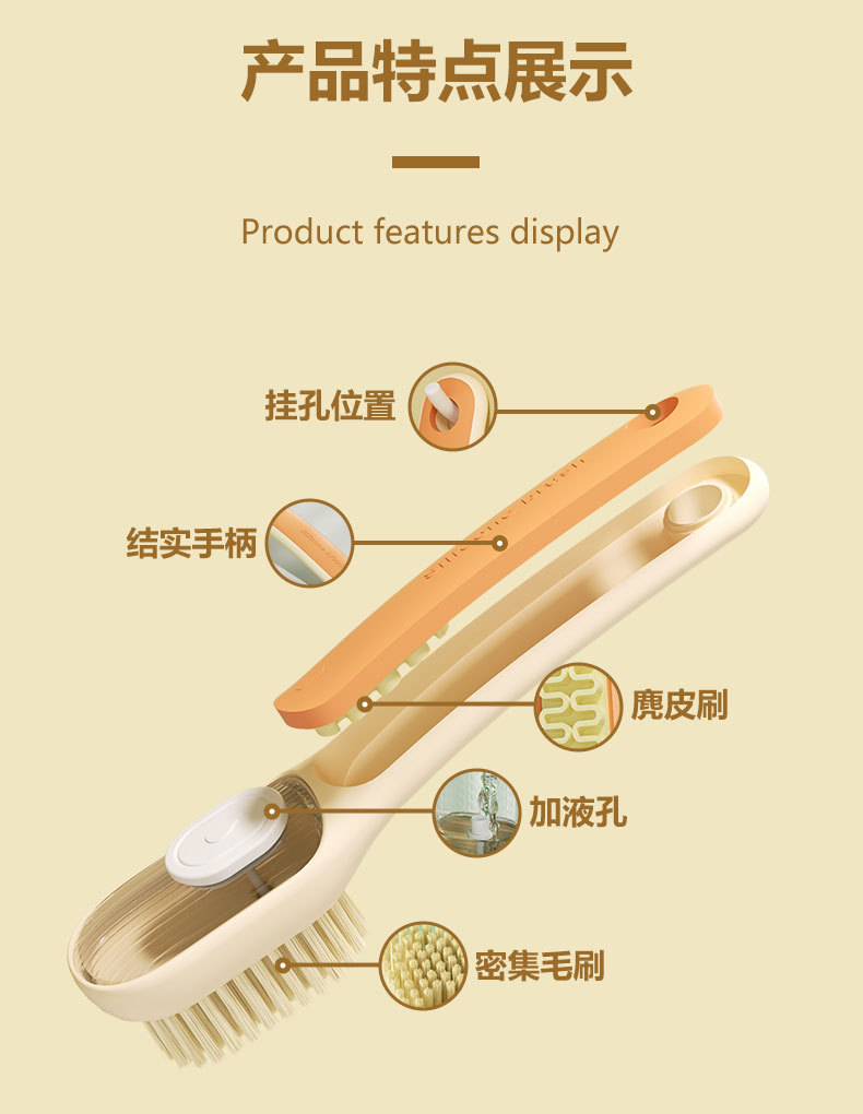 家用长柄加液鞋刷软毛洗鞋刷子多功能清洁刷家用鞋刷去污洗衣刷鞋