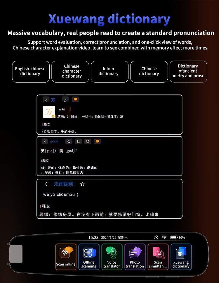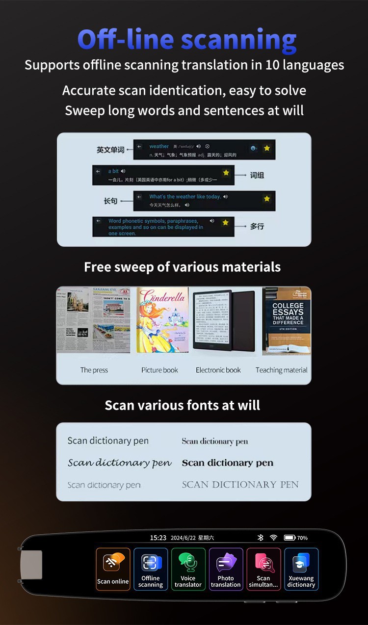 国际版扫描翻译笔中英德法日韩粤语繁体多语言拍照精准离 线翻译