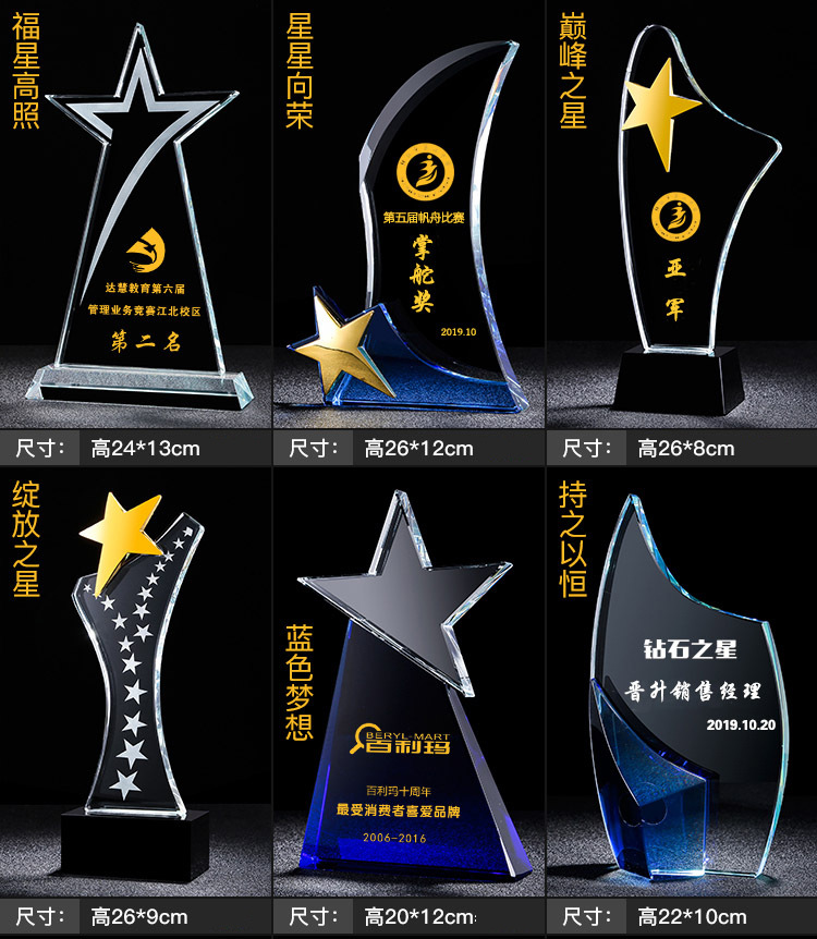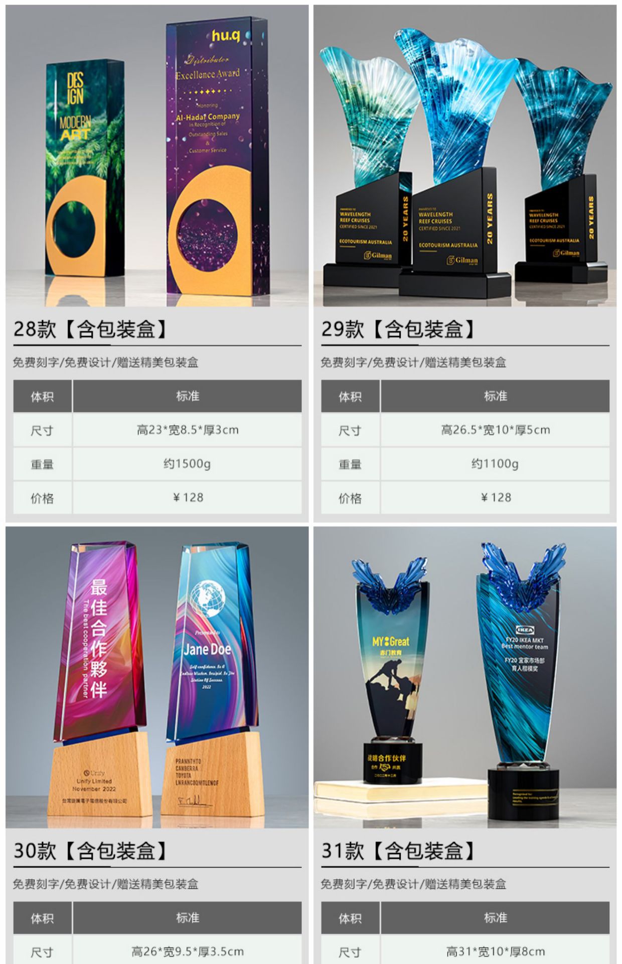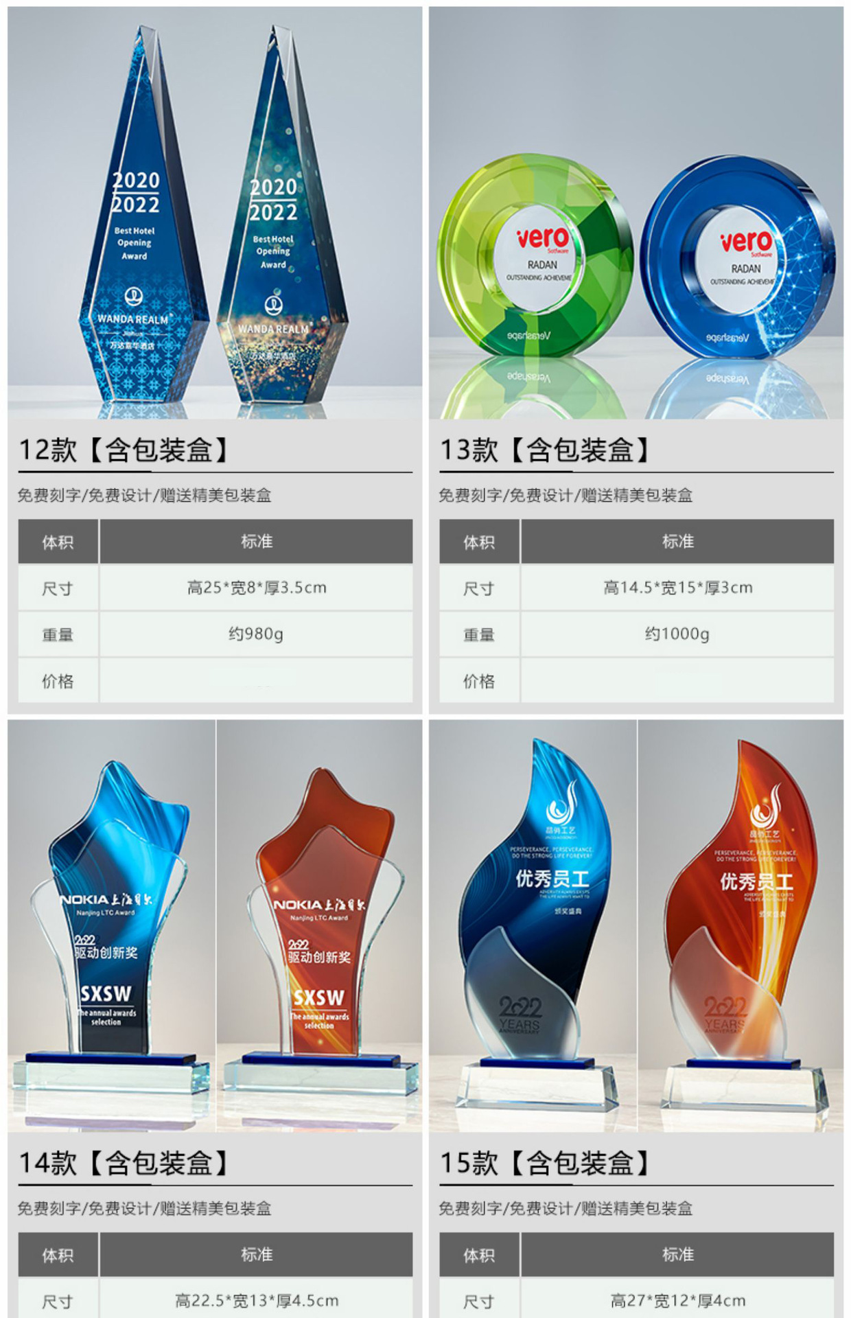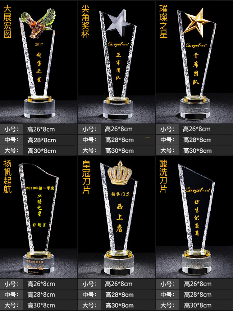水晶奖杯奖牌免费刻字优秀员工公司年会周年纪念学校比赛树脂批发