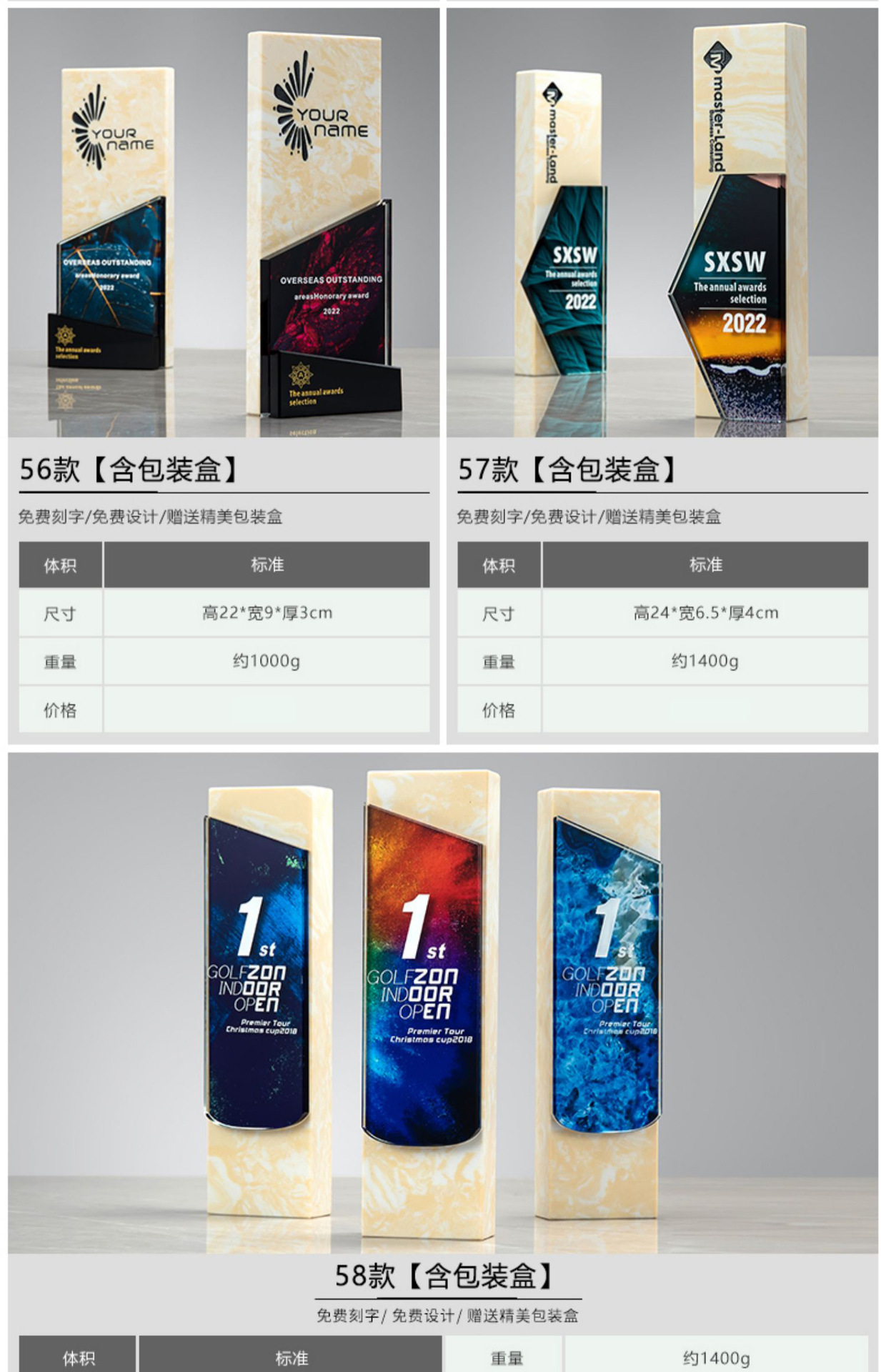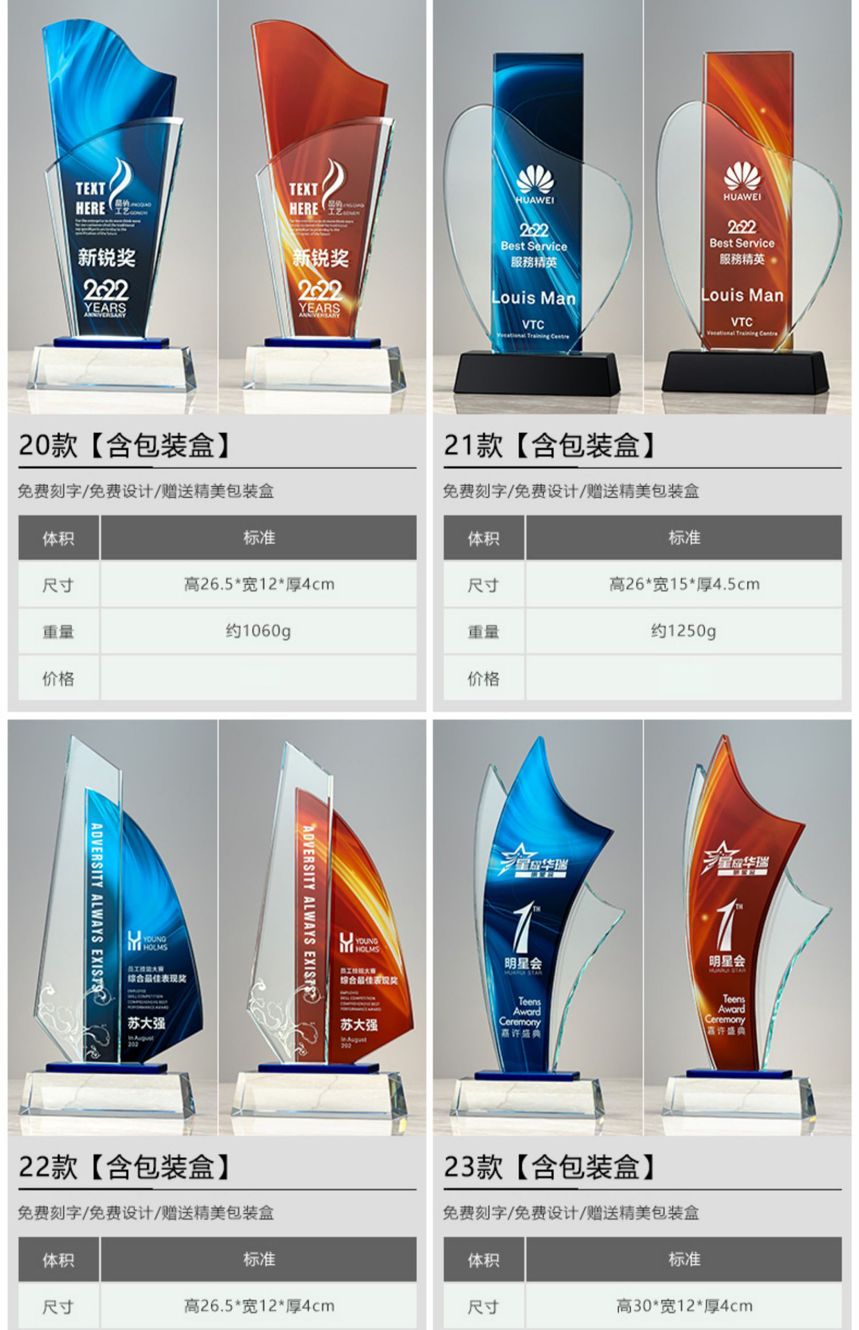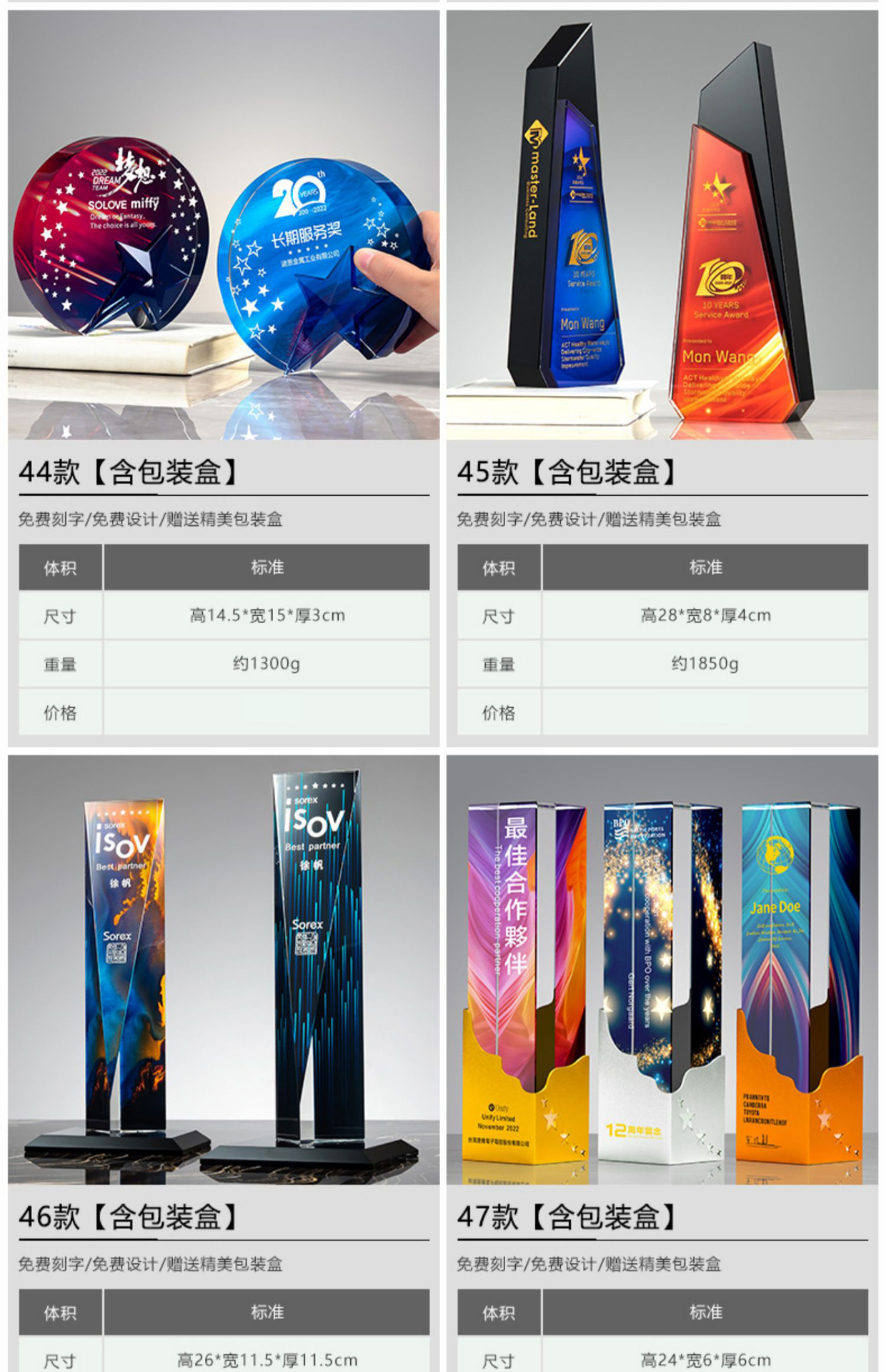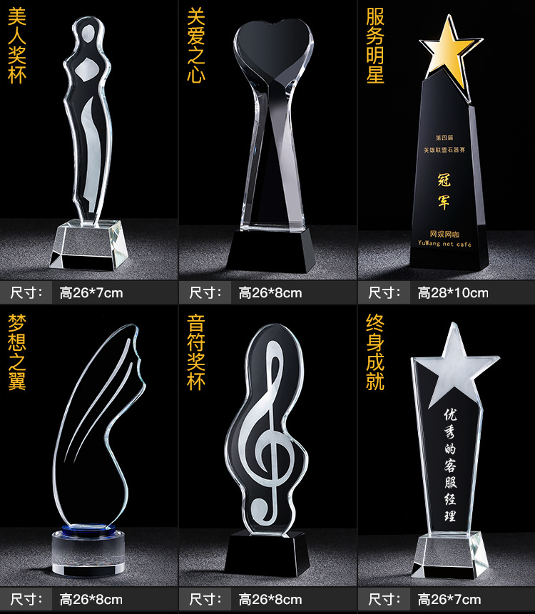 水晶奖杯奖牌免费刻字优秀员工公司年会周年纪念学校比赛树脂批发