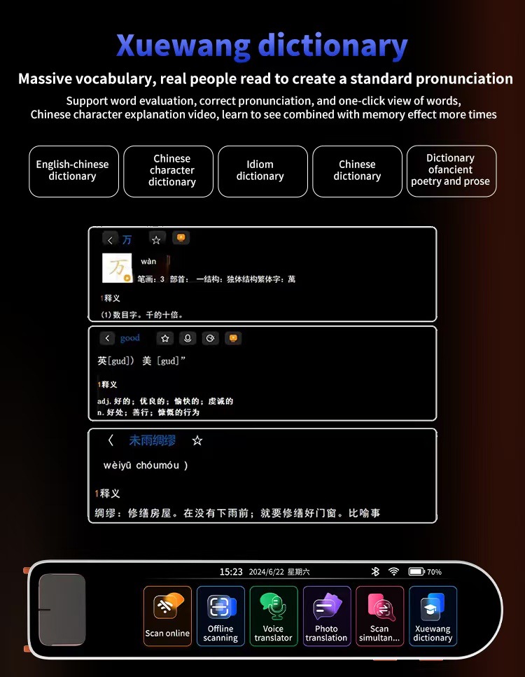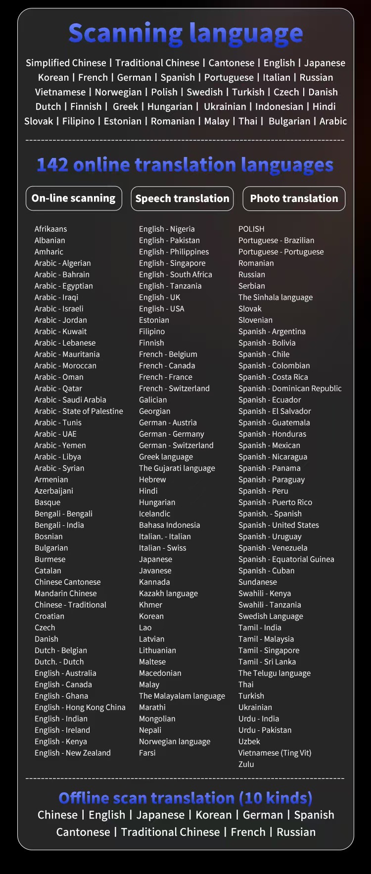 国际版扫描翻译笔中英德法日韩粤语繁体多语言拍照精准离 线翻译