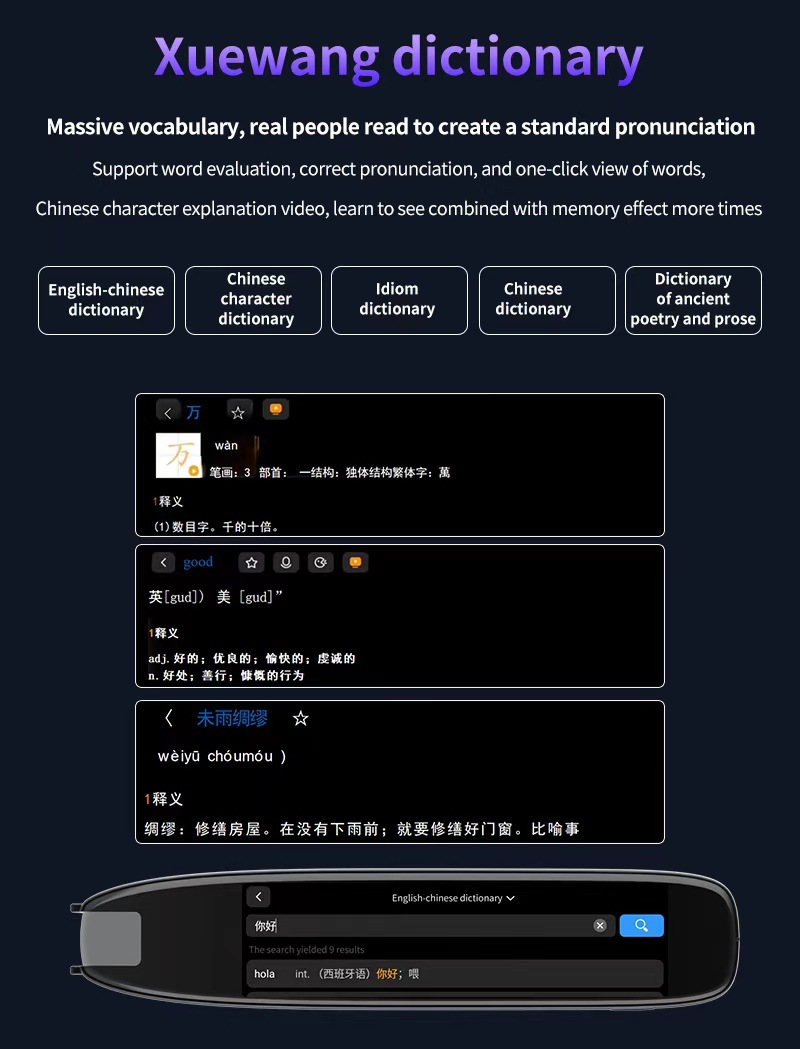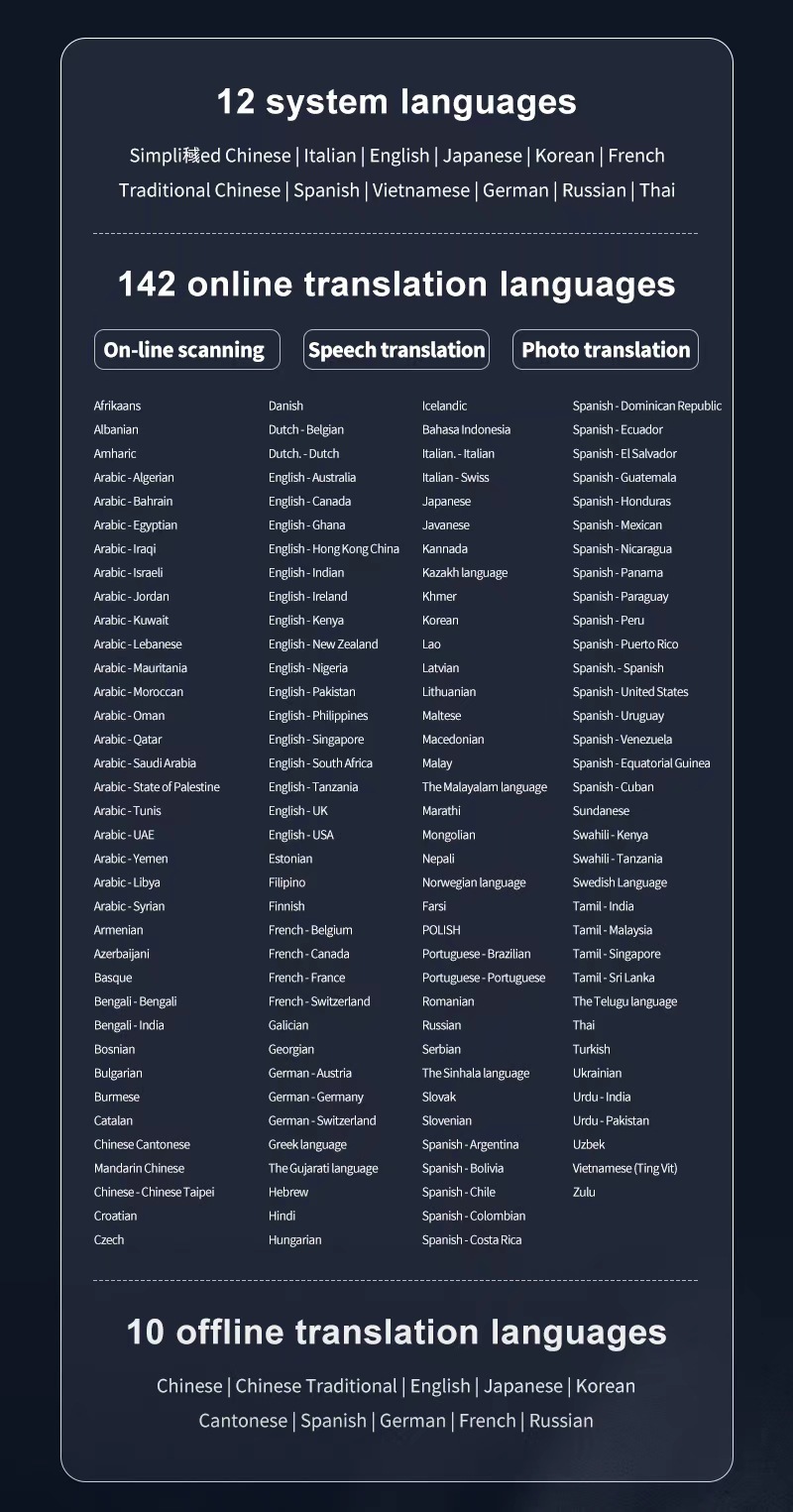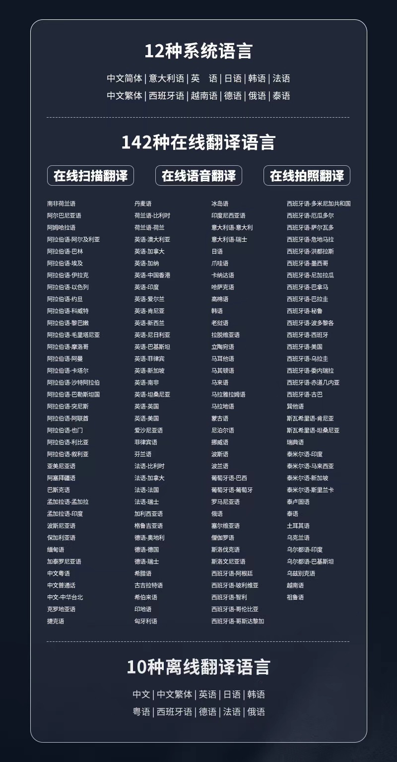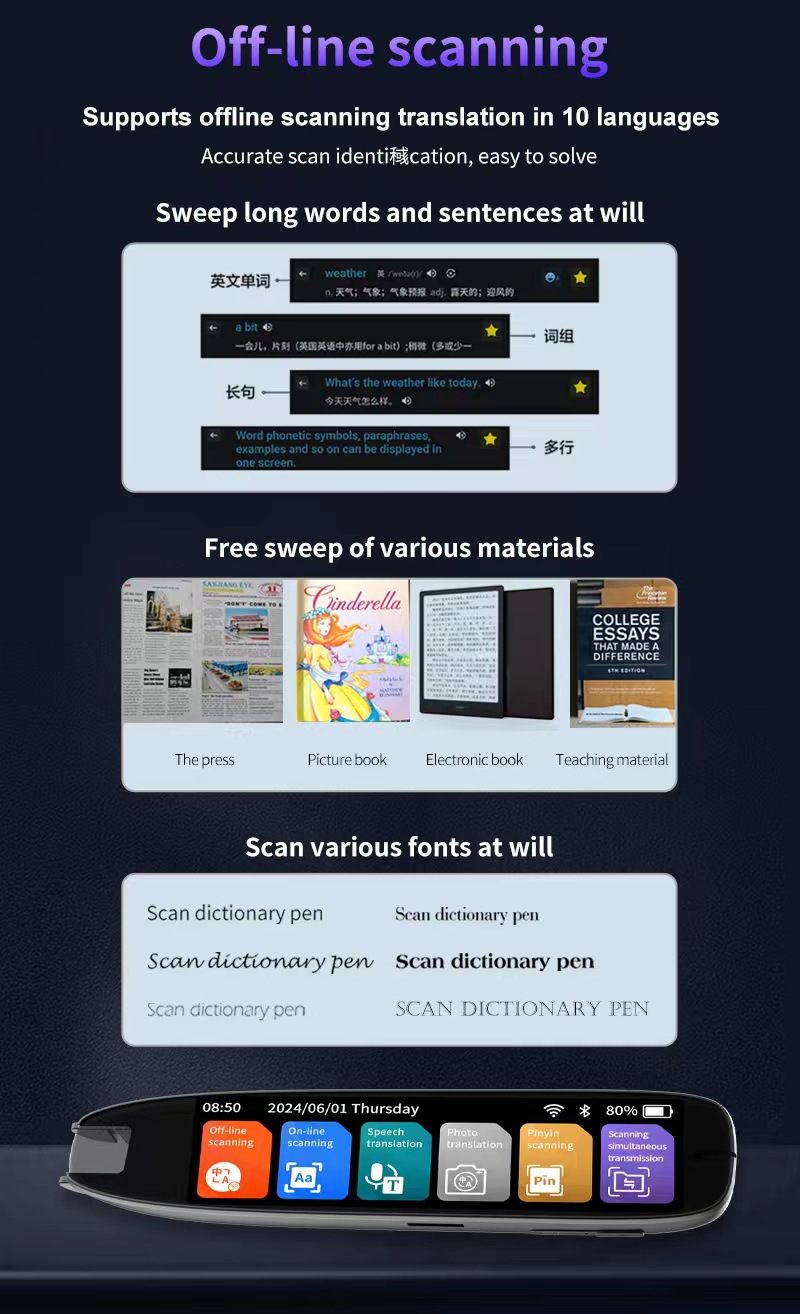 国际版扫描翻译笔中英德法日韩粤语繁体多语言拍照精准离 线翻译