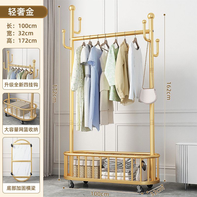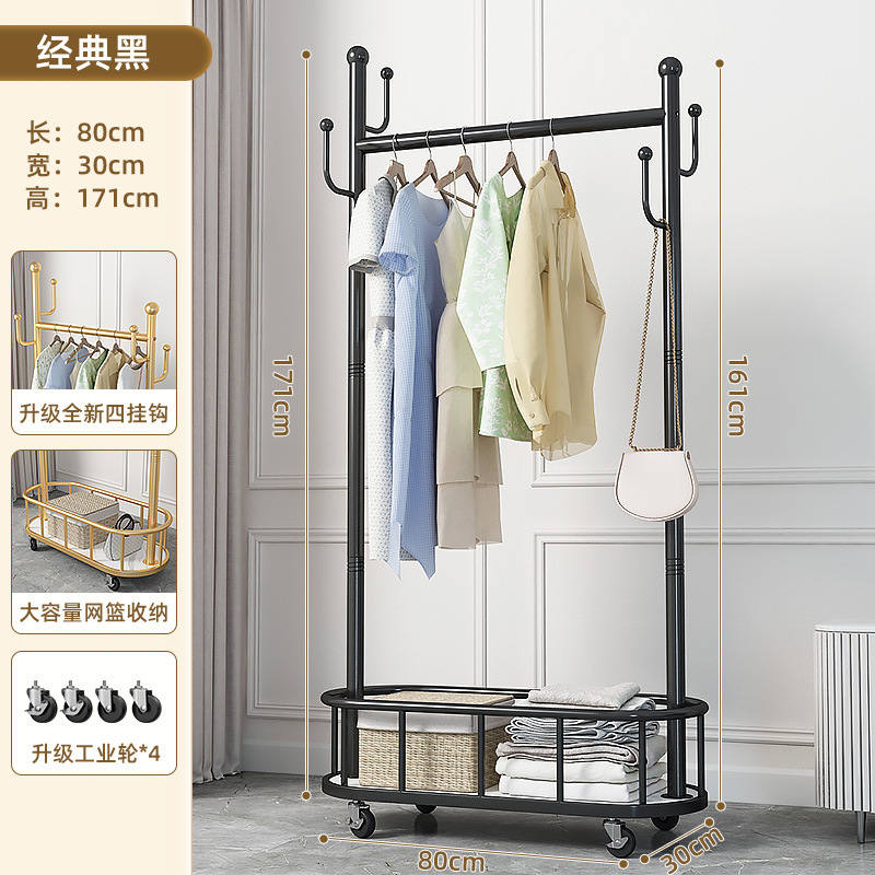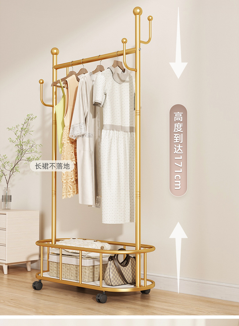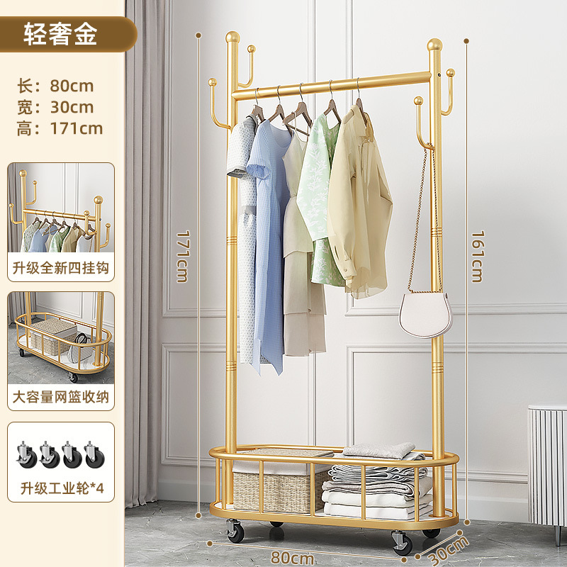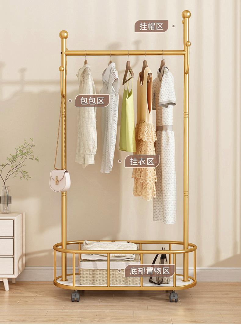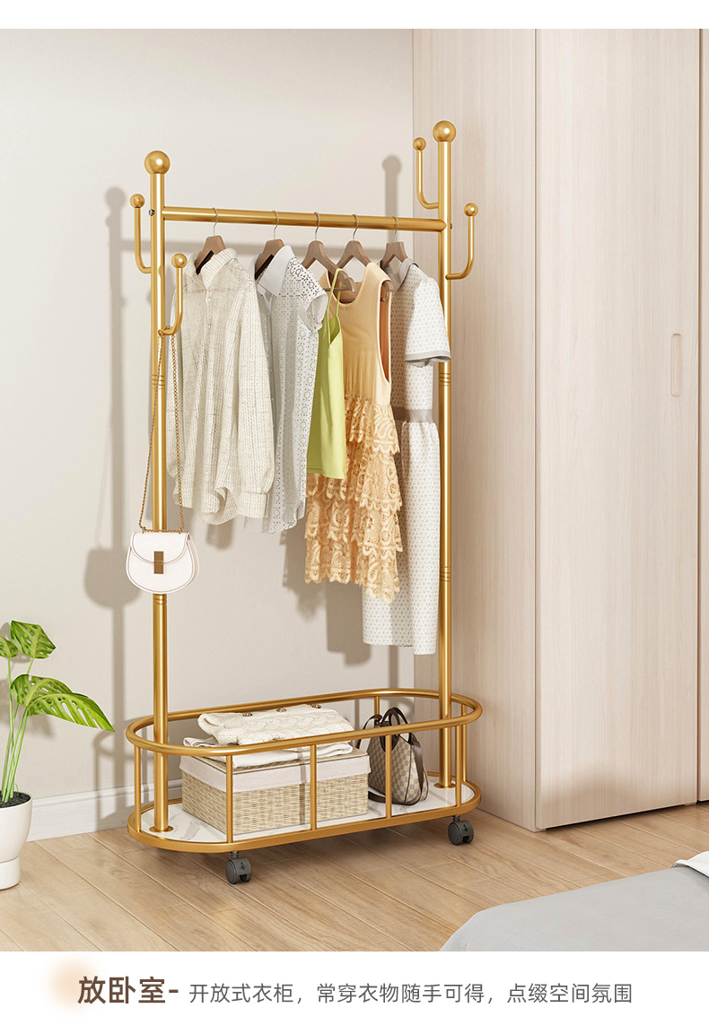 衣架落地卧室衣帽架带轮家用客厅网红挂衣架轻奢晾衣架简易服装架
