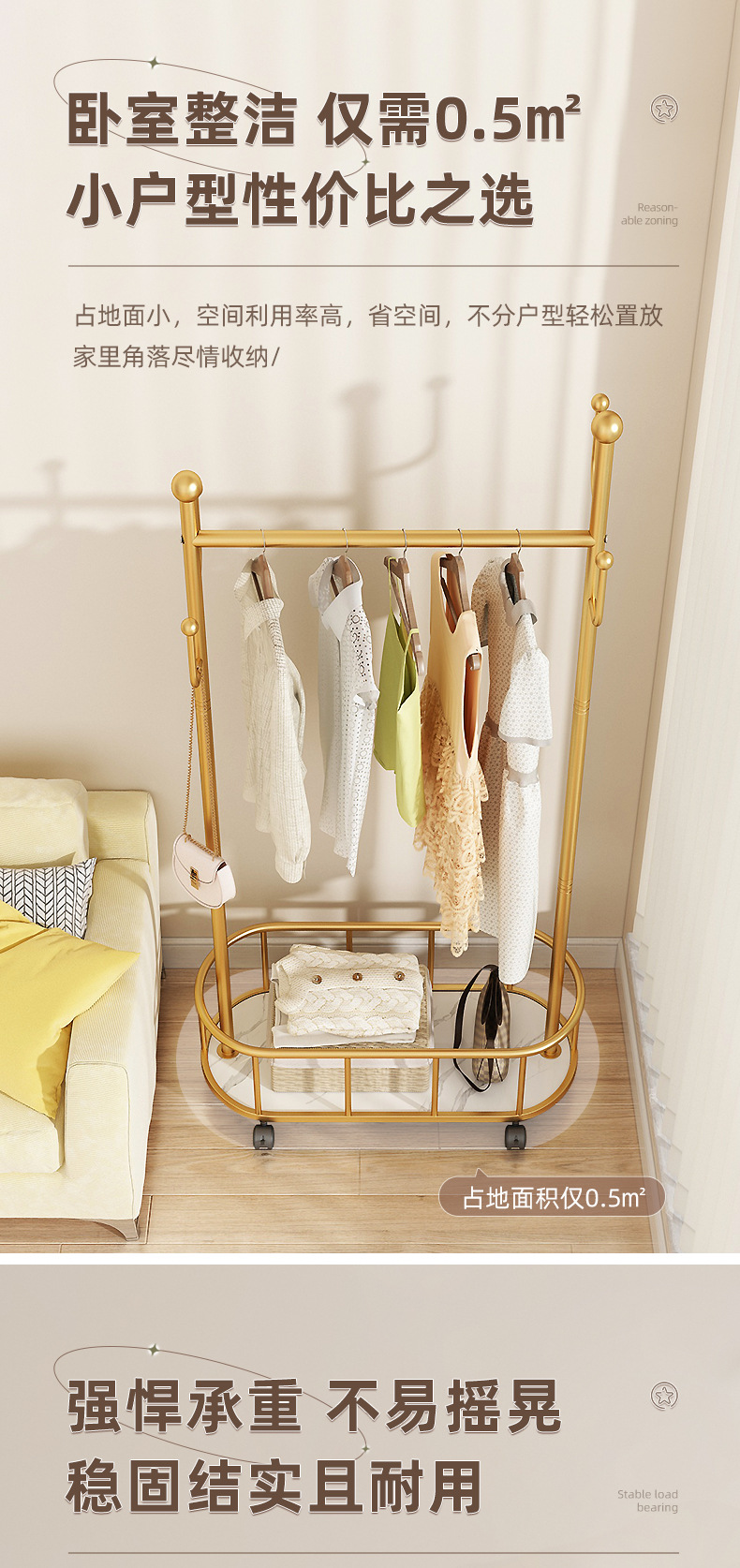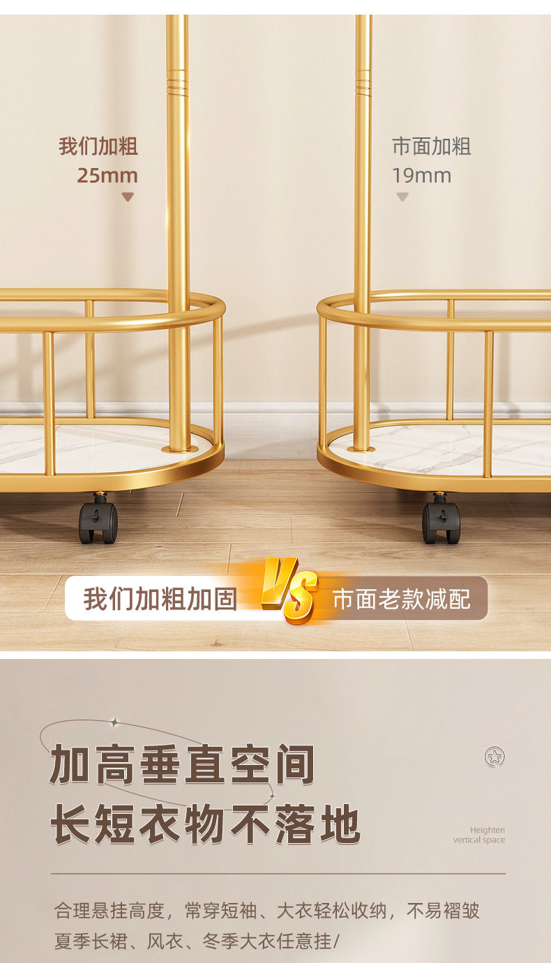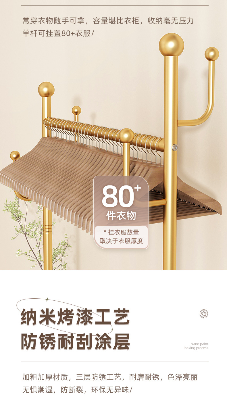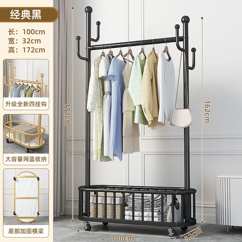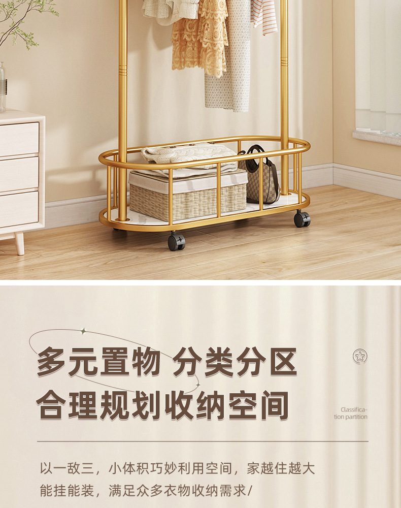 衣架落地卧室衣帽架带轮家用客厅网红挂衣架轻奢晾衣架简易服装架