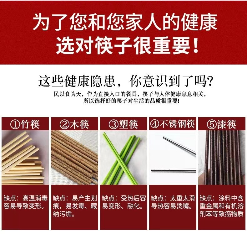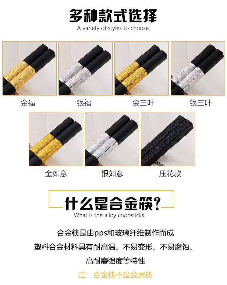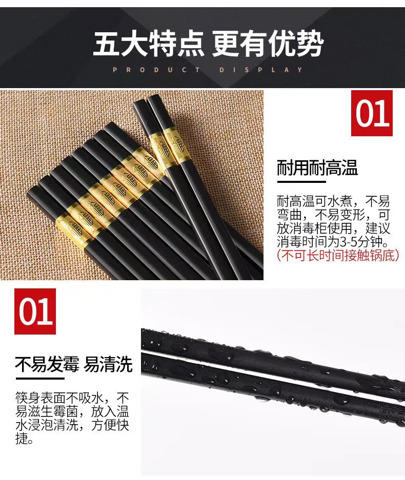 防霉防滑筷子家庭合金食品级不发霉家用耐高温高端合金筷快子