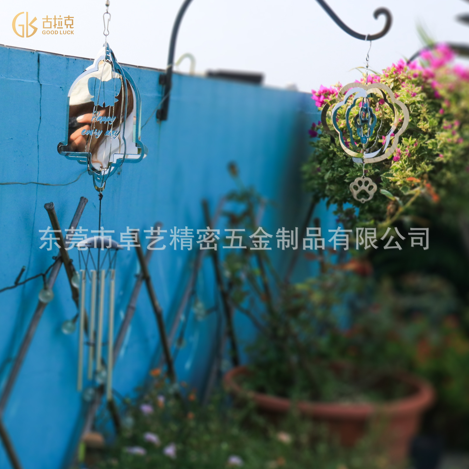 跨境新品3D旋转风铃风转镜面家居花园田园装饰创意挂饰工艺品