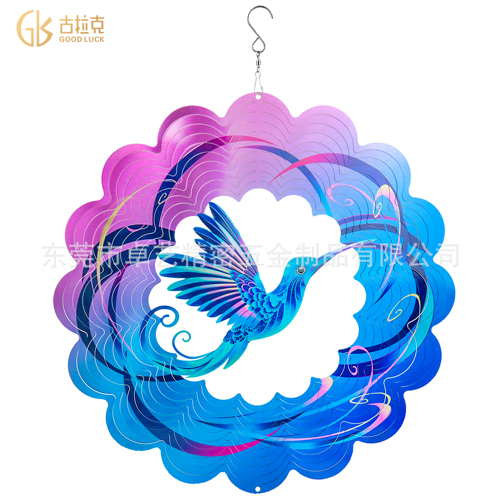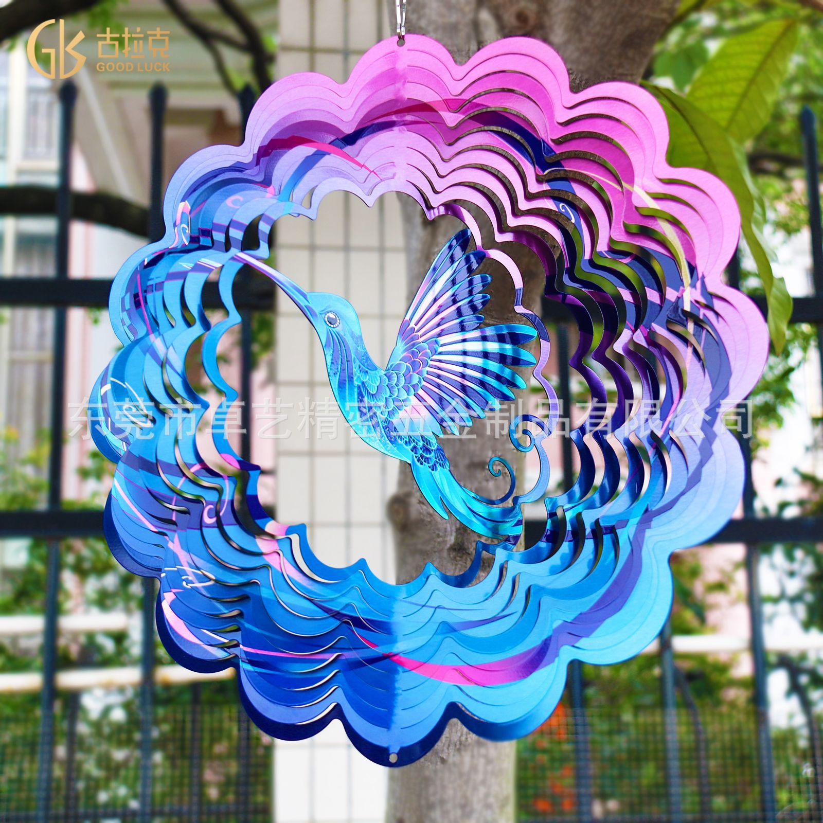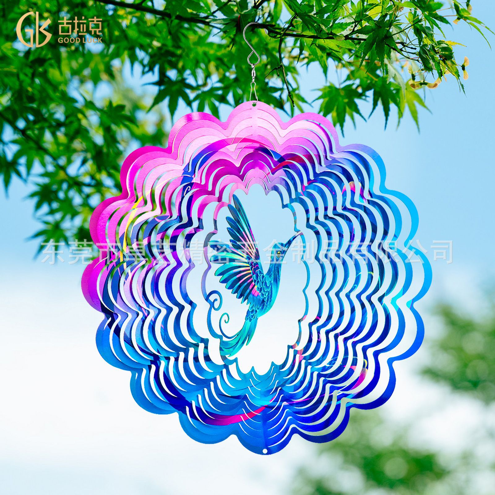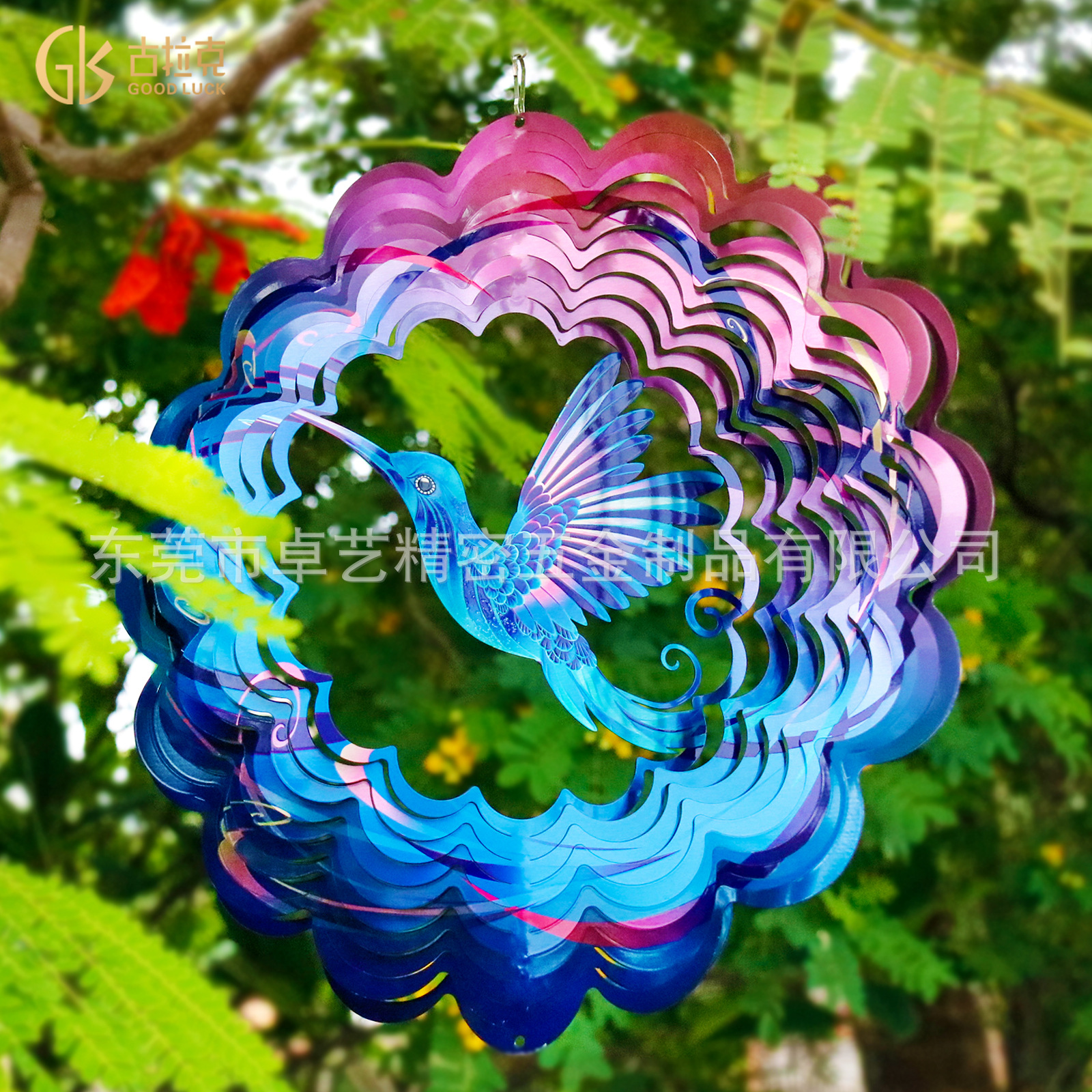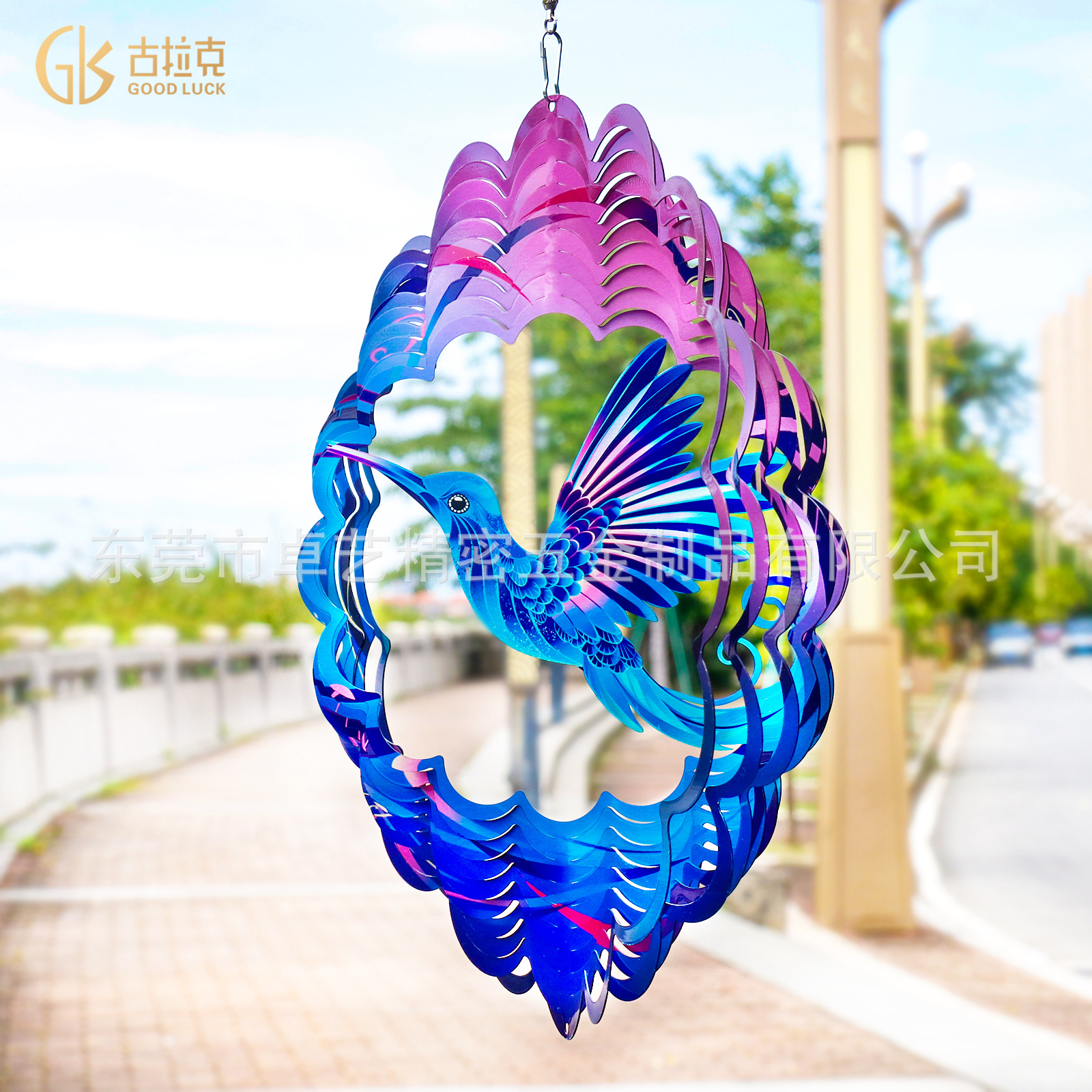 跨境出口创意3D曼陀罗风铃飞天蜂鸟风转庭院花园挂饰Hummingbird
