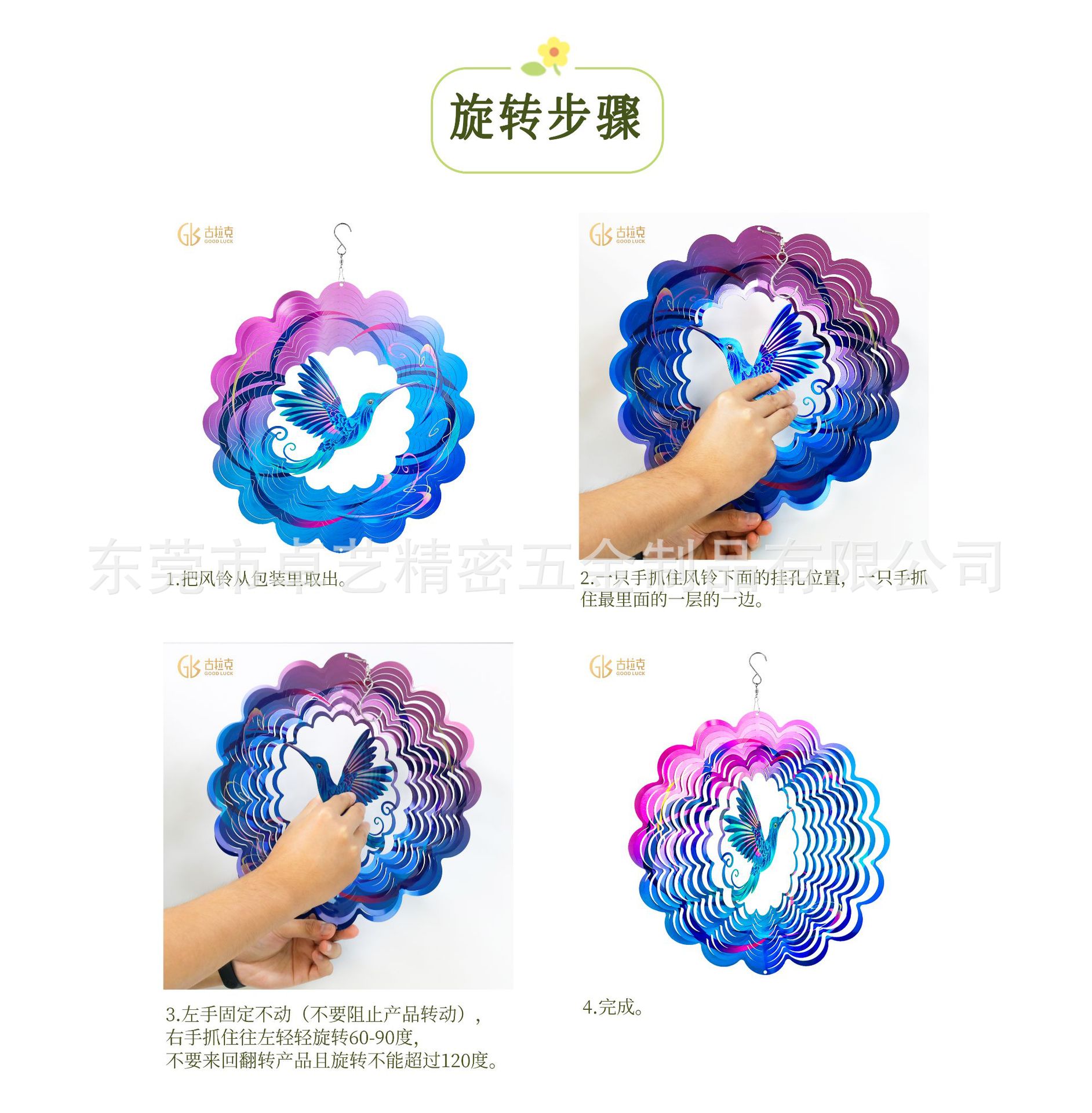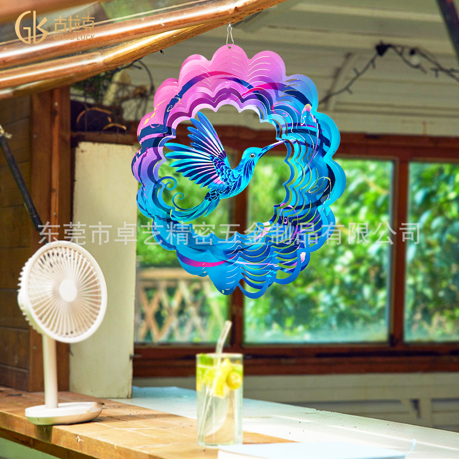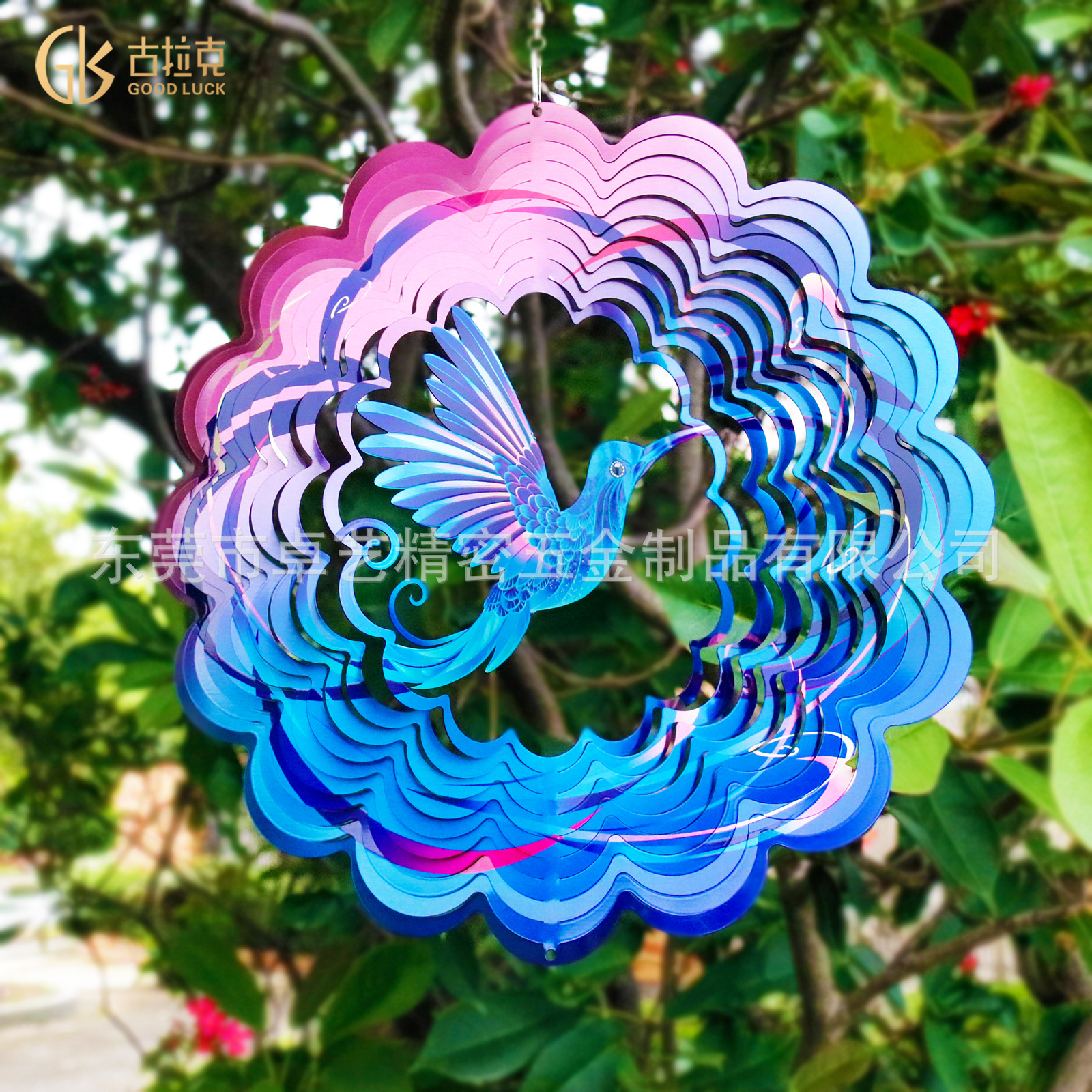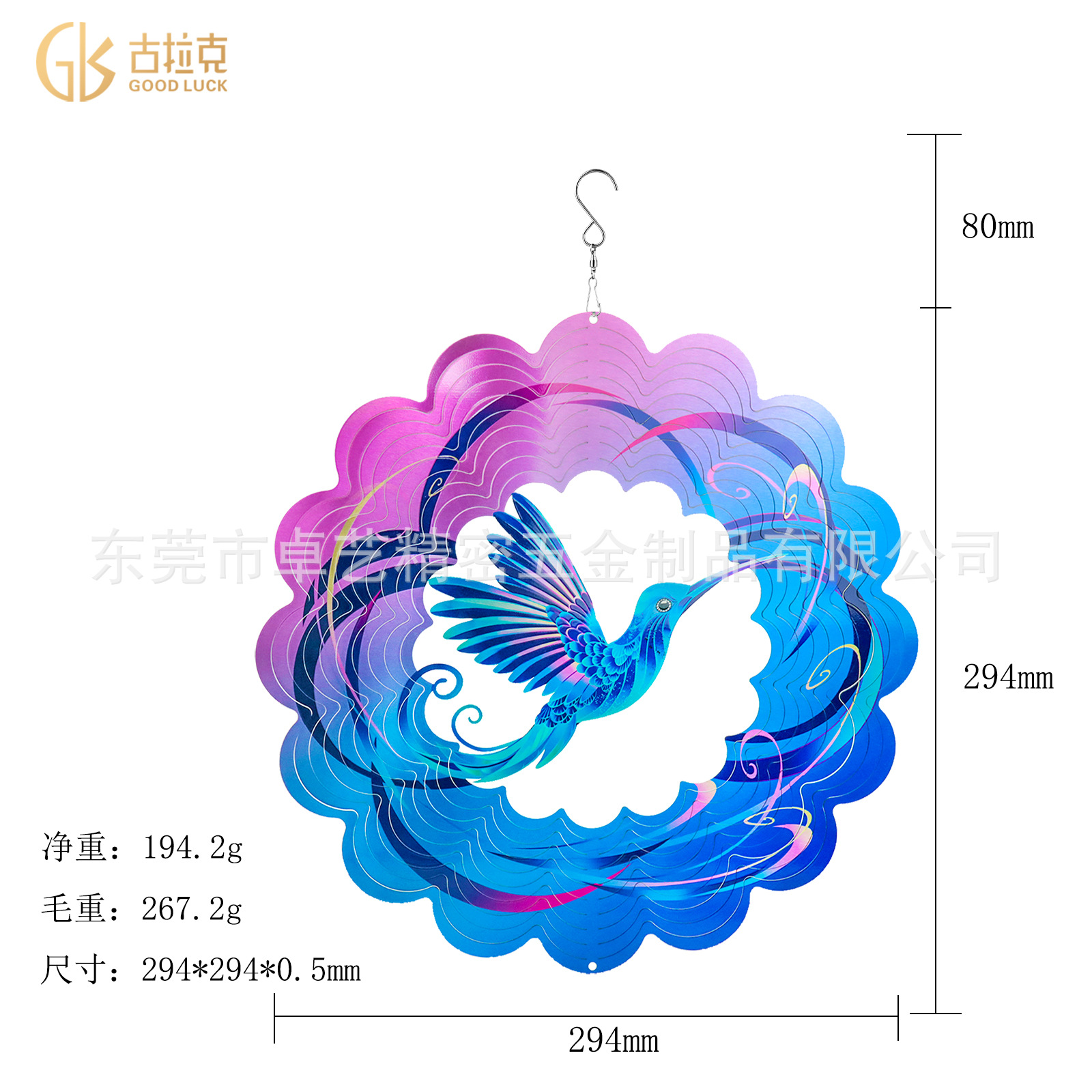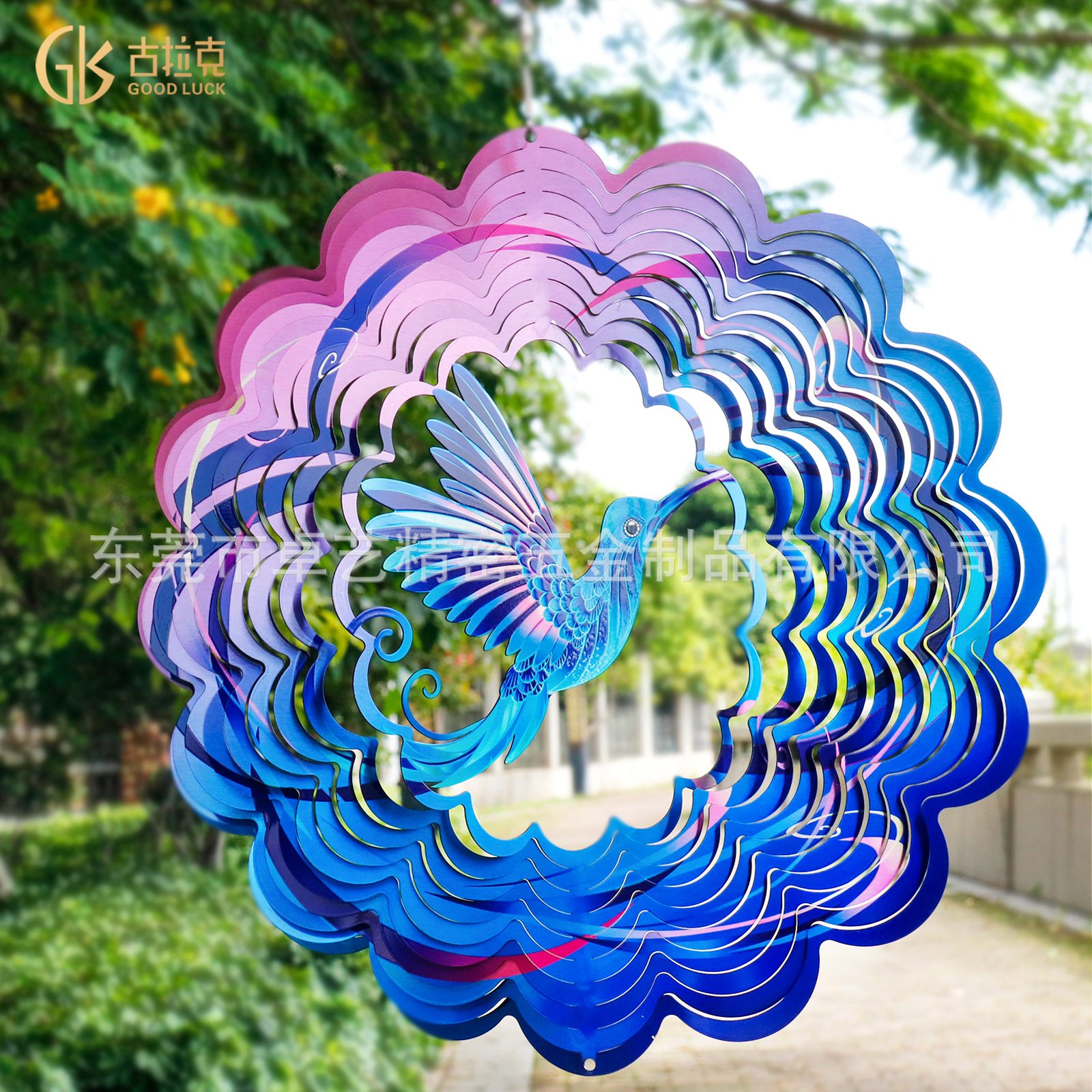 跨境出口创意3D曼陀罗风铃飞天蜂鸟风转庭院花园挂饰Hummingbird