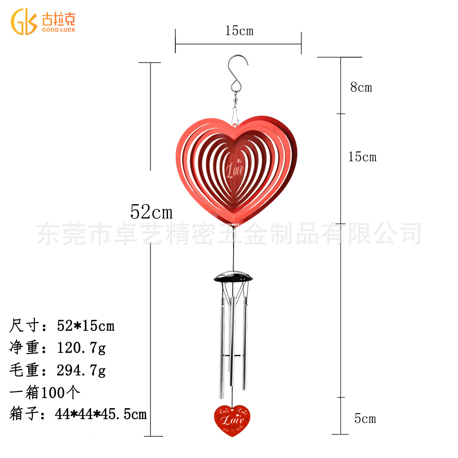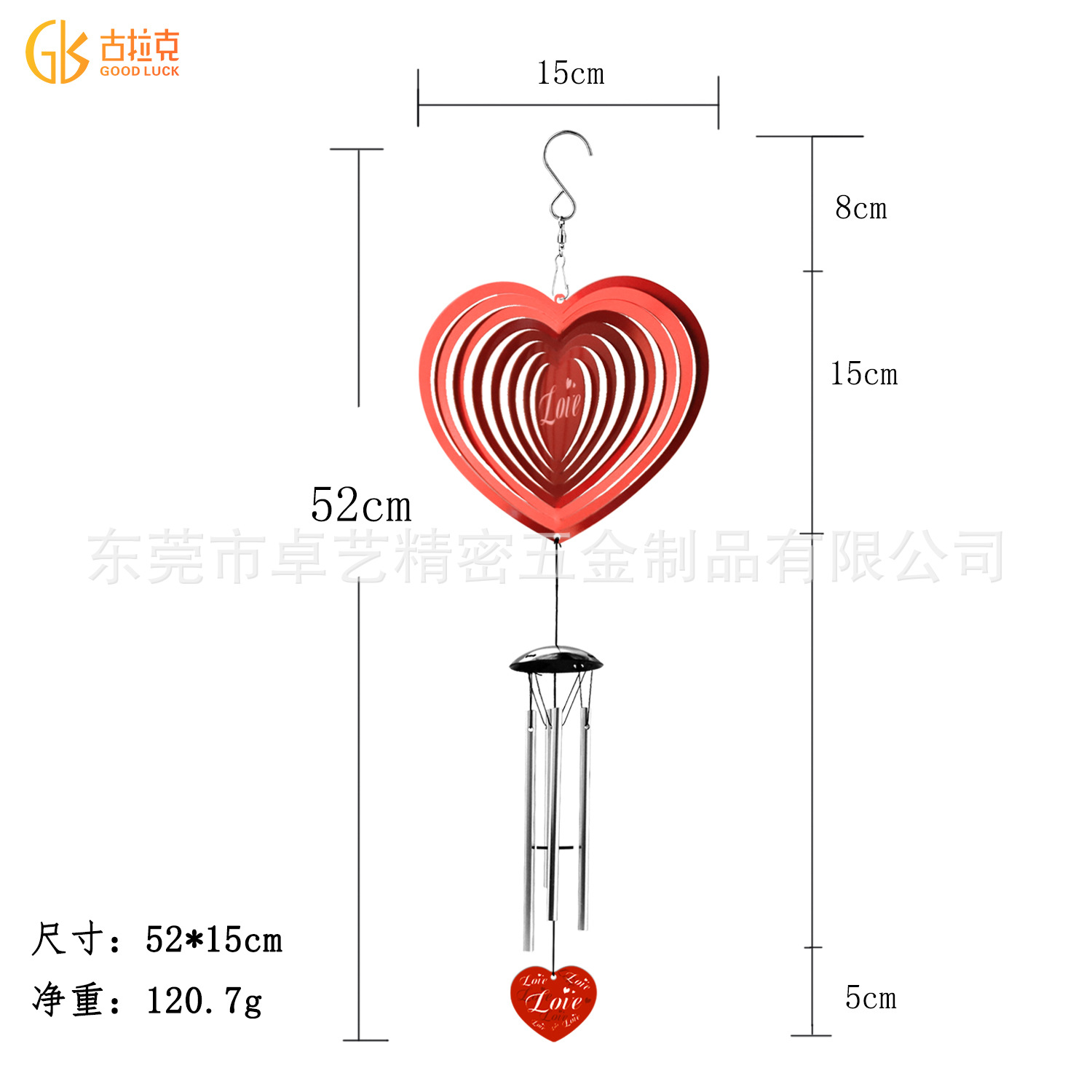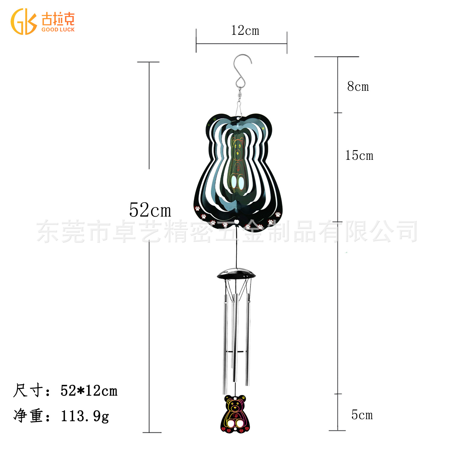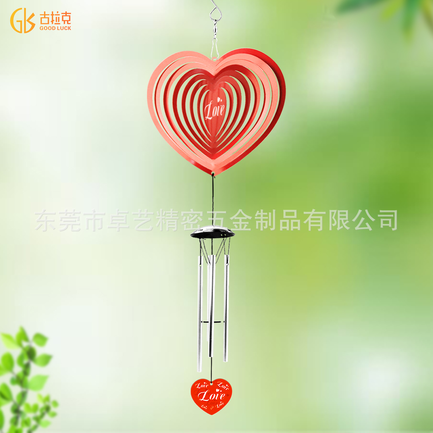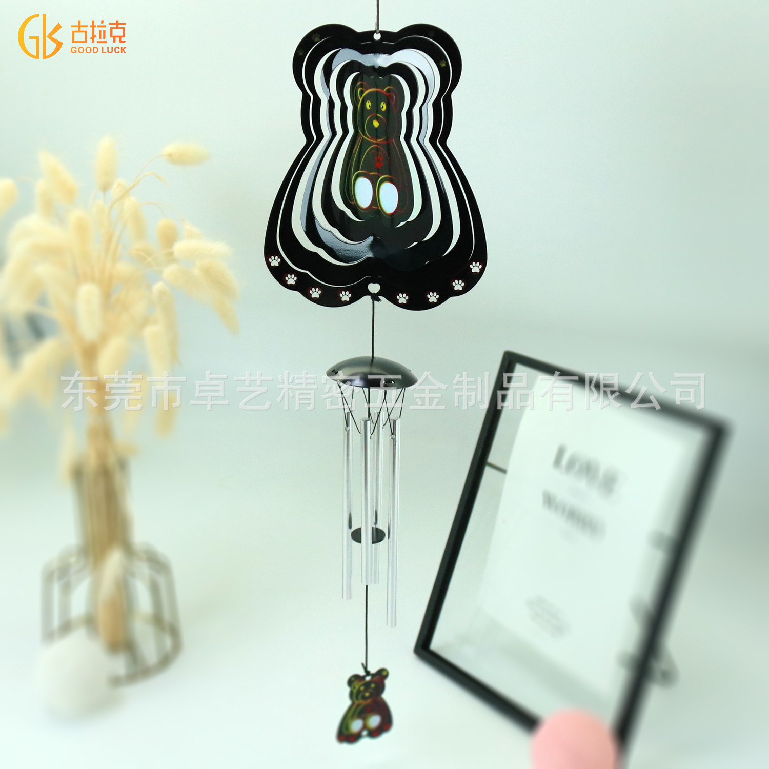 跨境新品3D旋转风铃风转爱心熊室内室外创意挂饰挂件