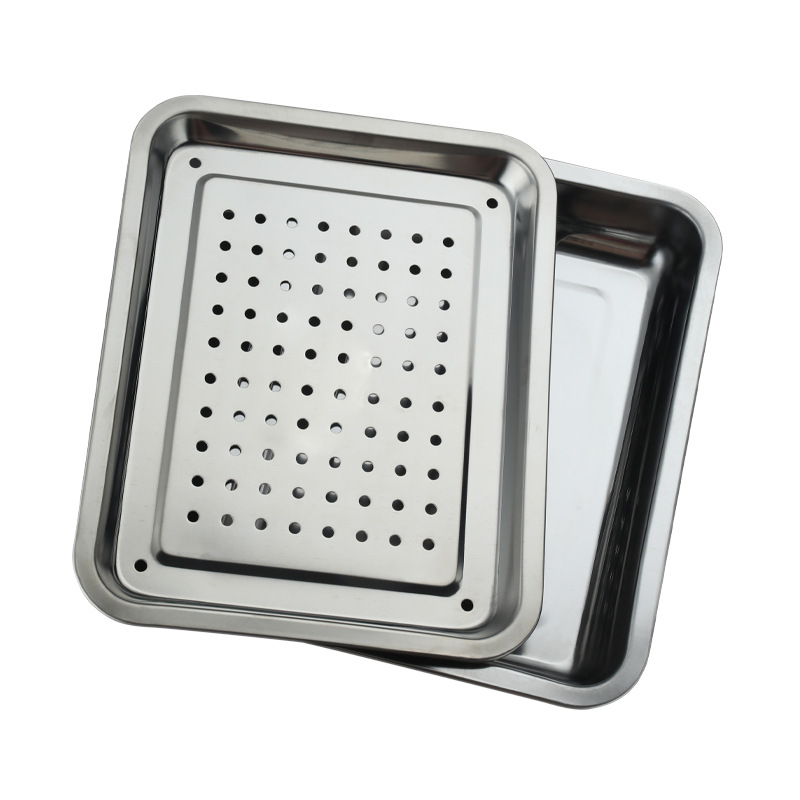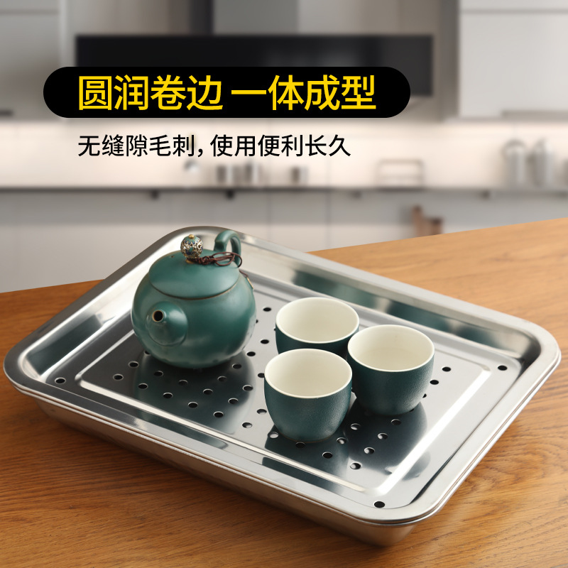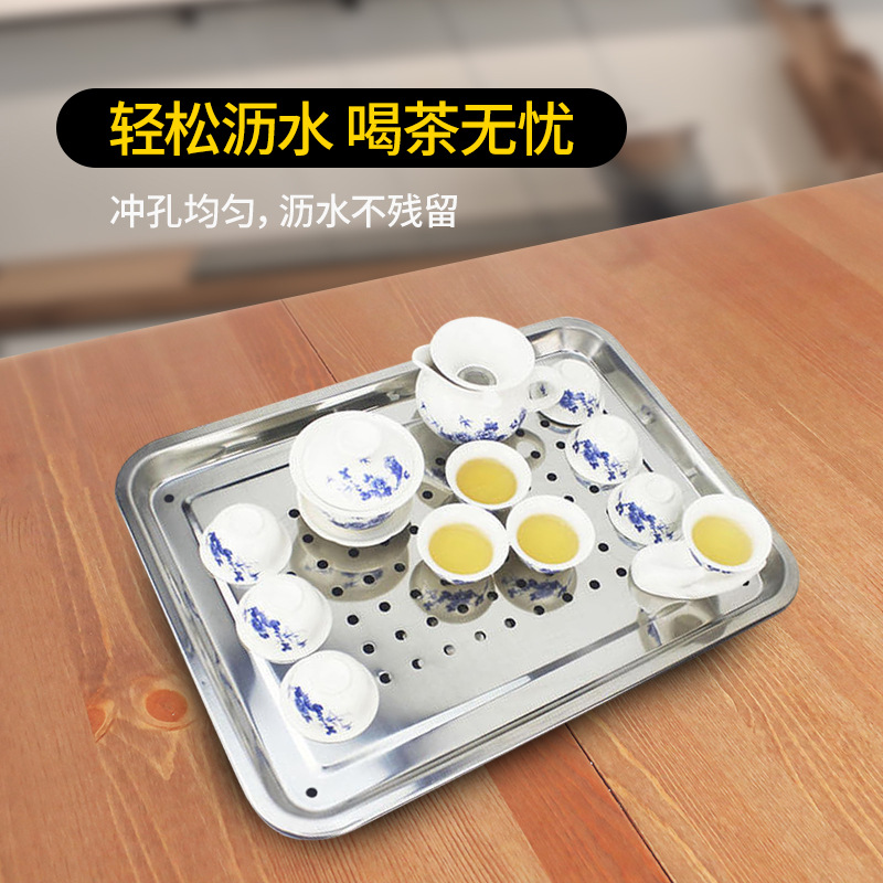 外贸家用不锈钢04冲孔茶池方形接水盘功夫茶具茶盘滤油托盘批发