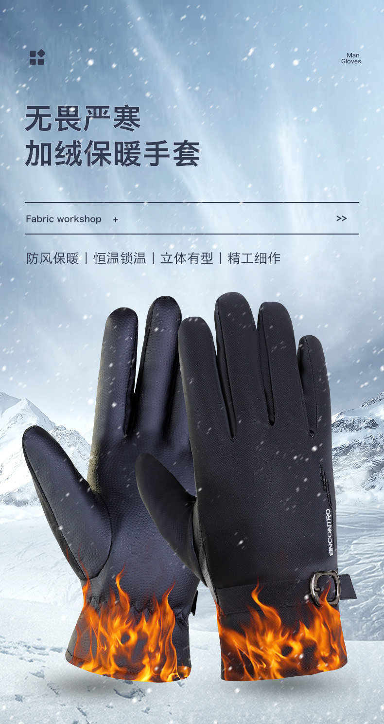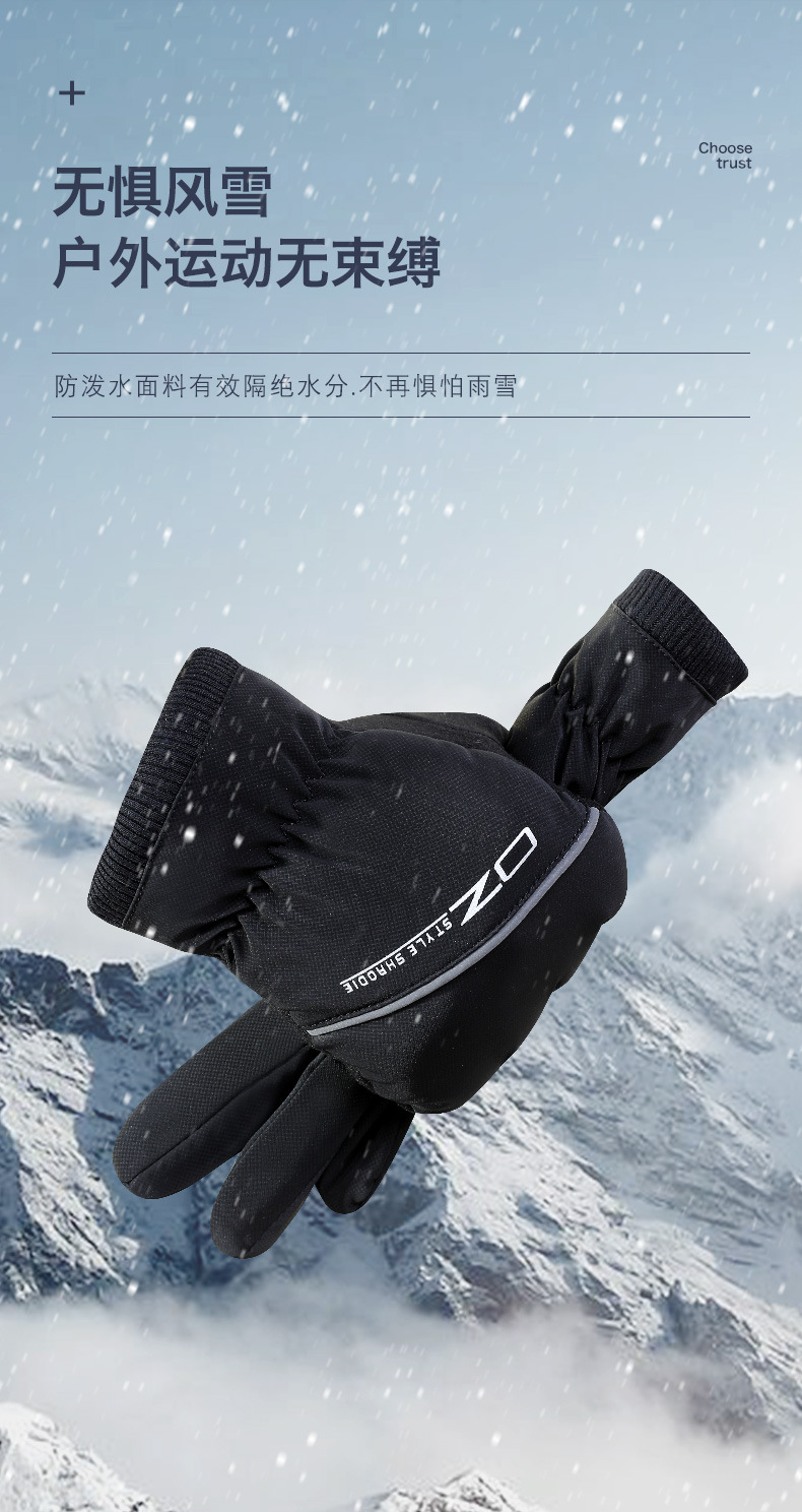 冬天保暖手套男加厚加绒户外骑车手套登山钓鱼全指AB版滑雪手套