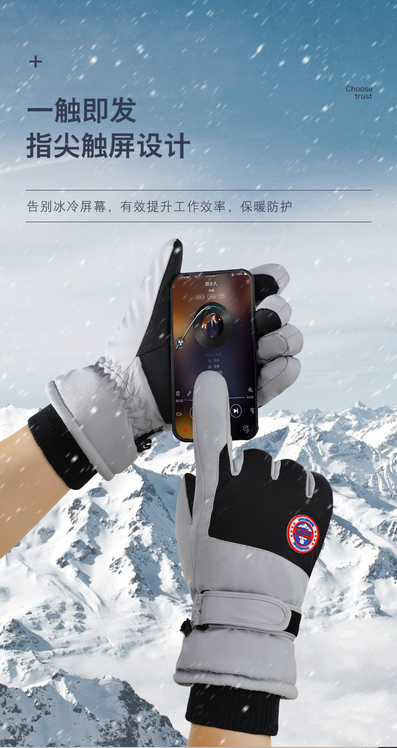 严选手套男士冬季保暖骑行电动车防风防寒加厚绒棉女触屏防水滑雪