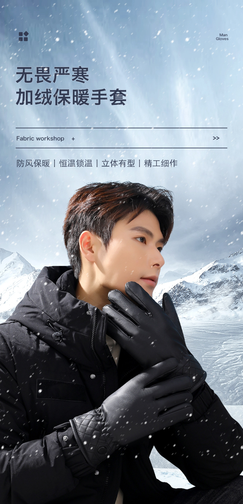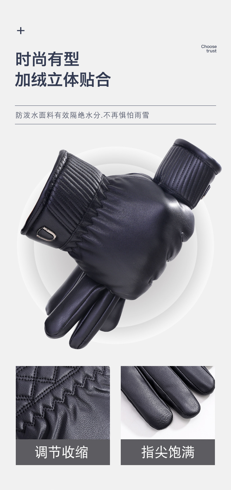 冬季加绒加厚皮手套男士保暖骑行防滑摩托车冬天滑雪手套厂家批发