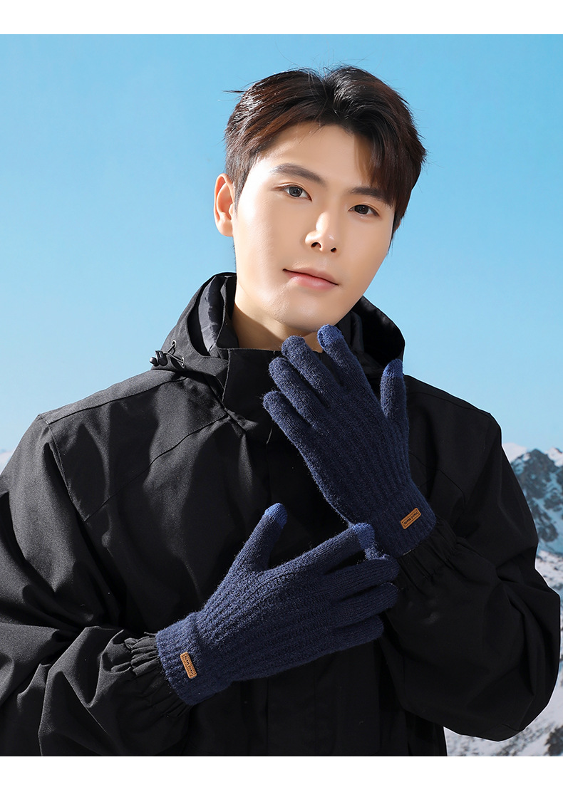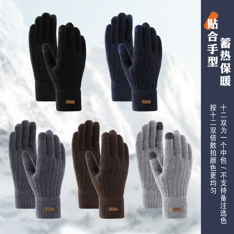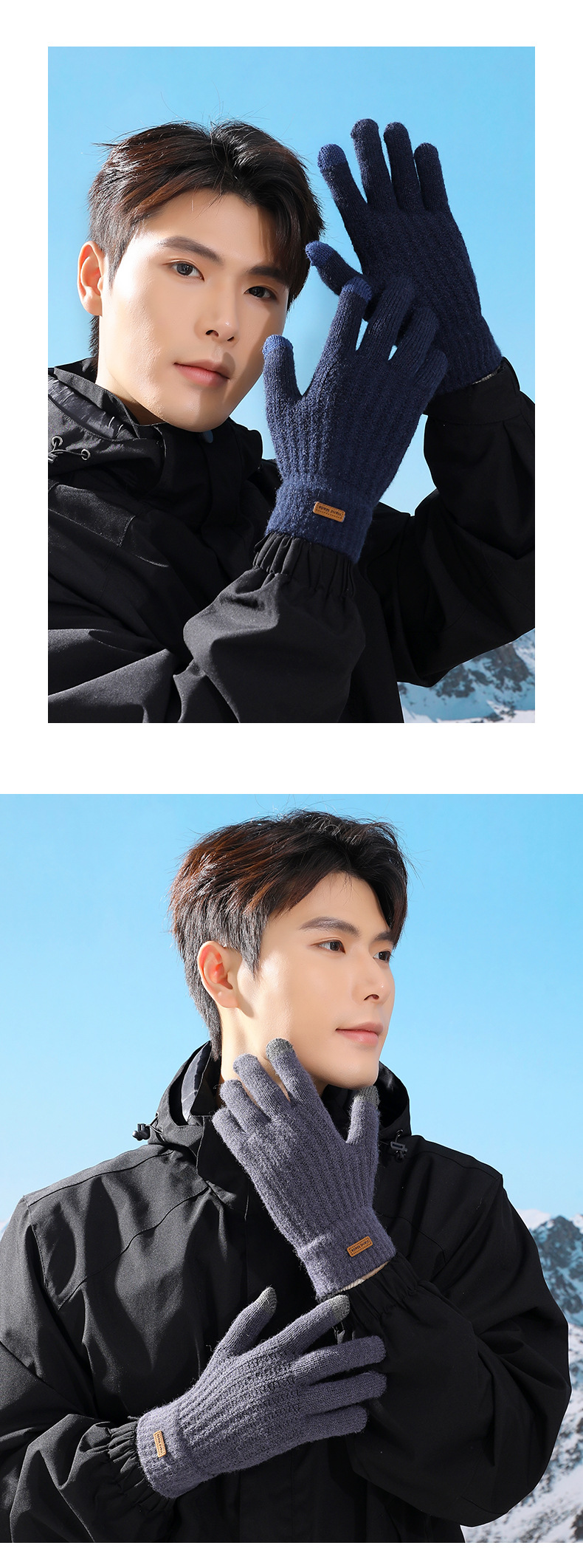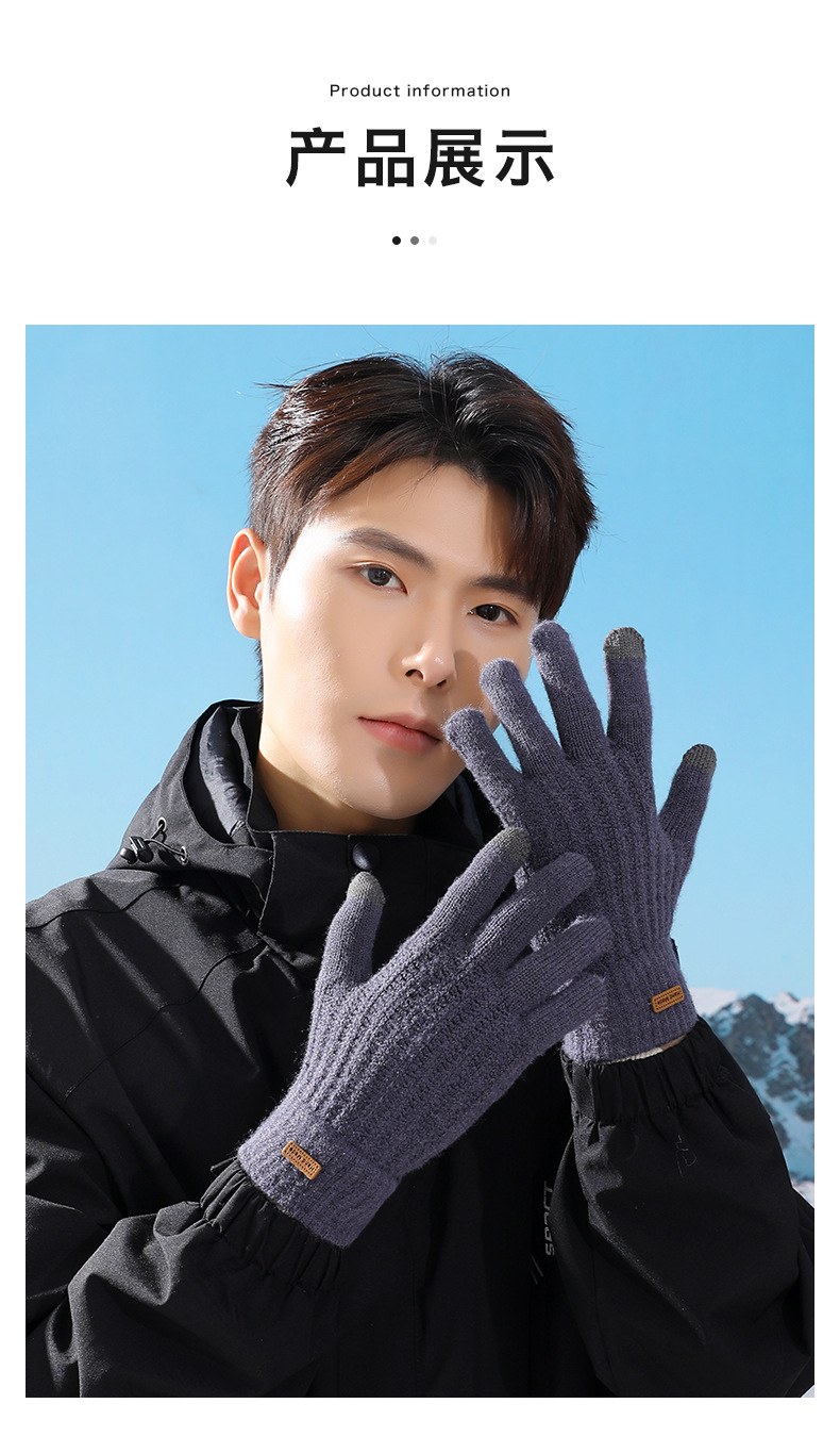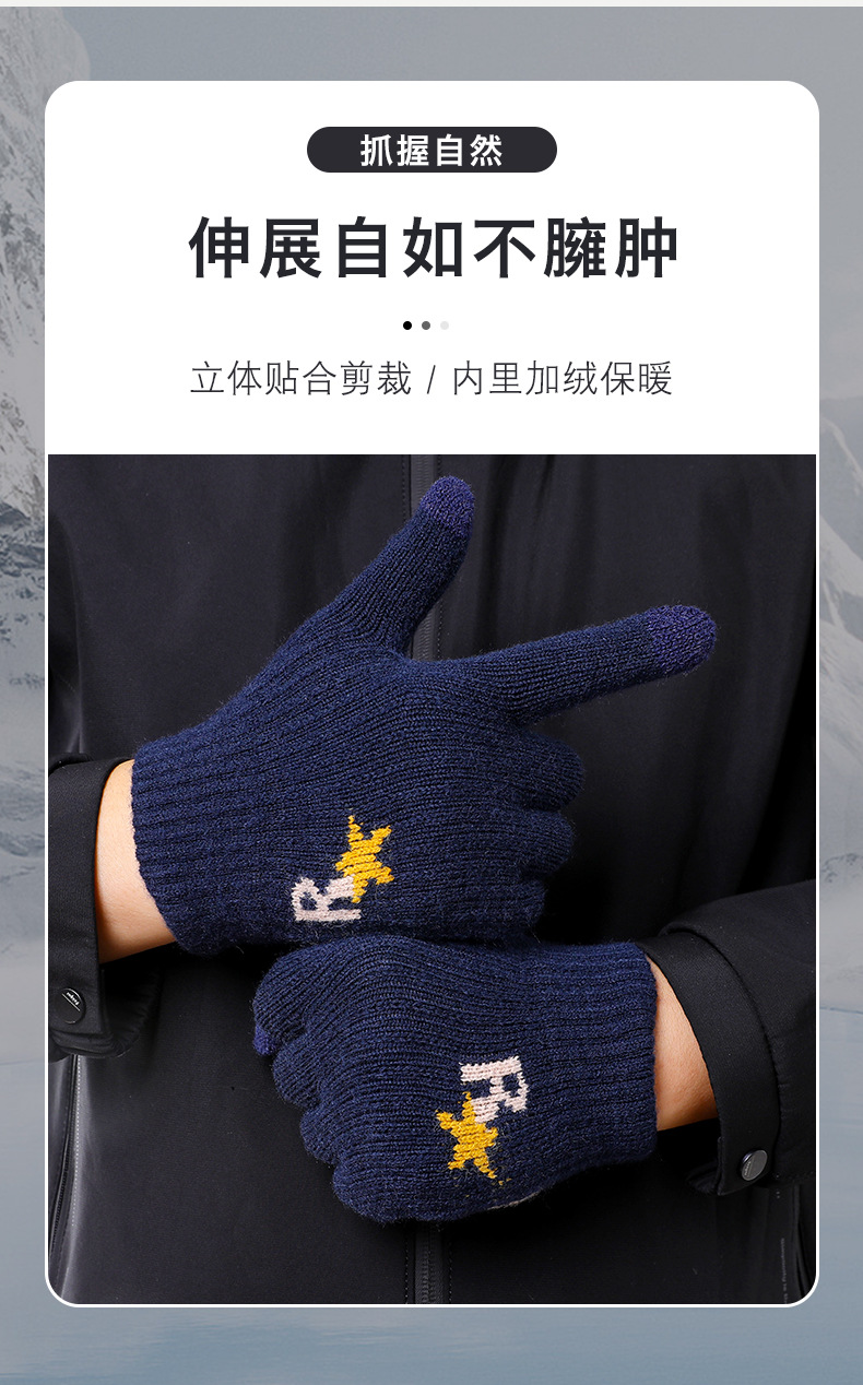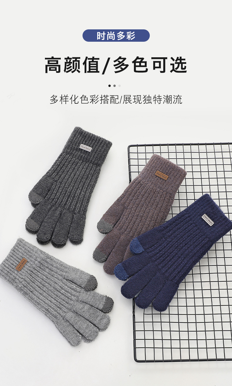 男士针织手套秋冬季毛线触屏户外保暖骑行韩版学生冬天骑行开车