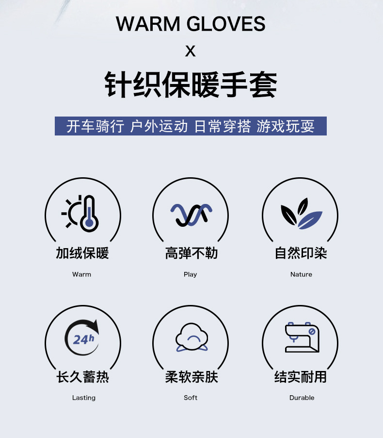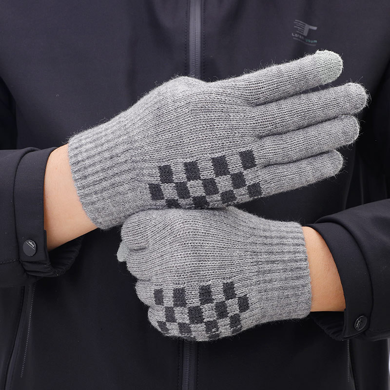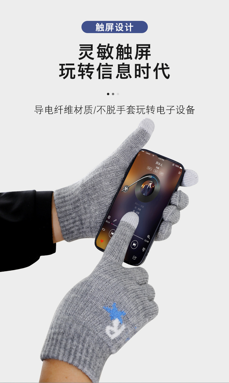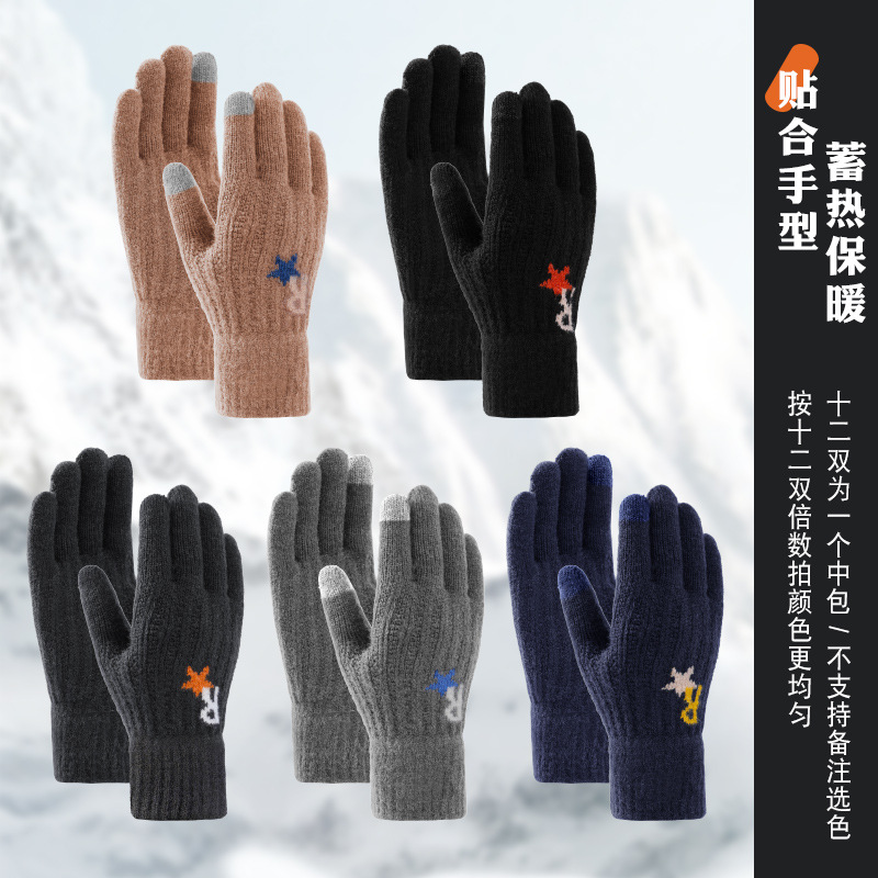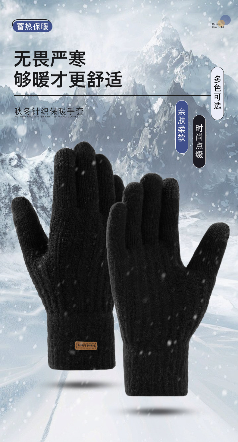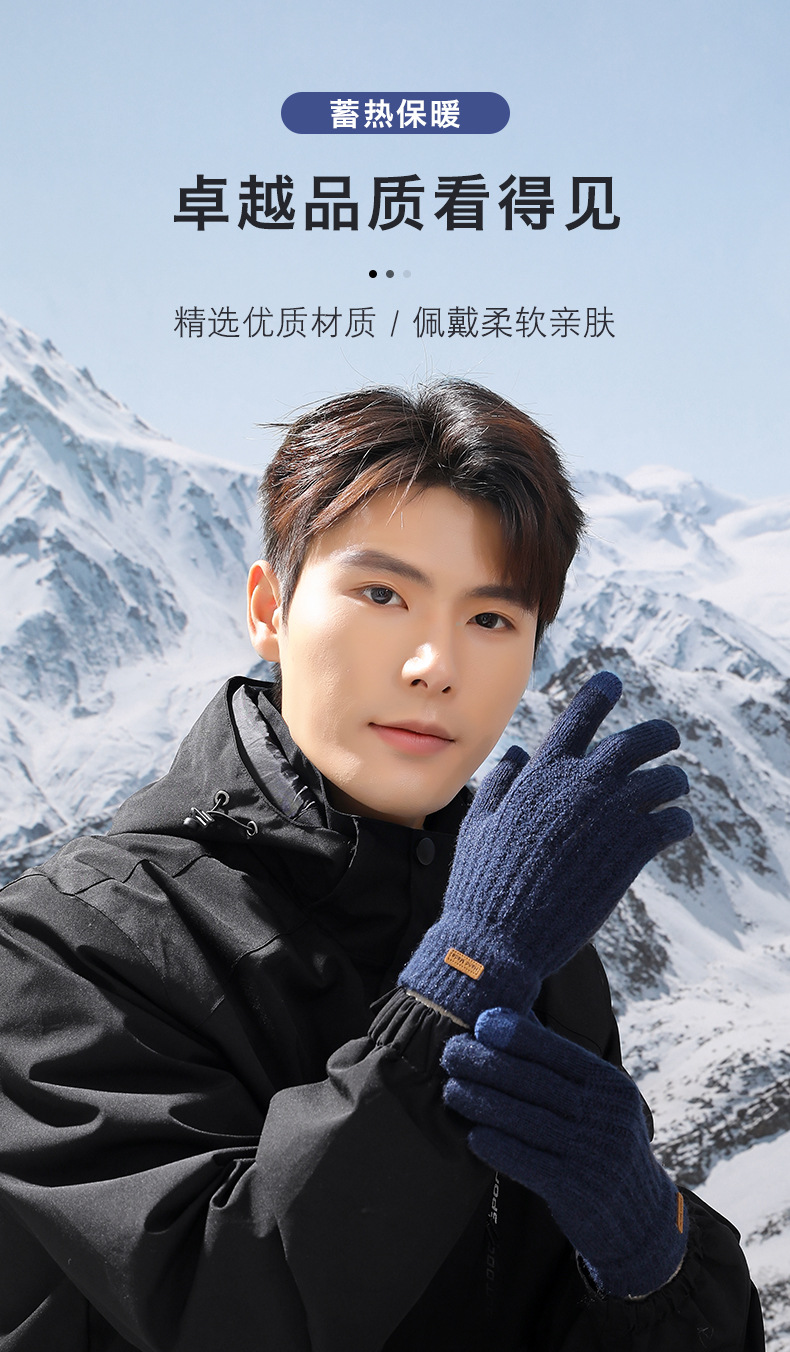 男士针织手套秋冬季毛线触屏户外保暖骑行韩版学生冬天骑行开车