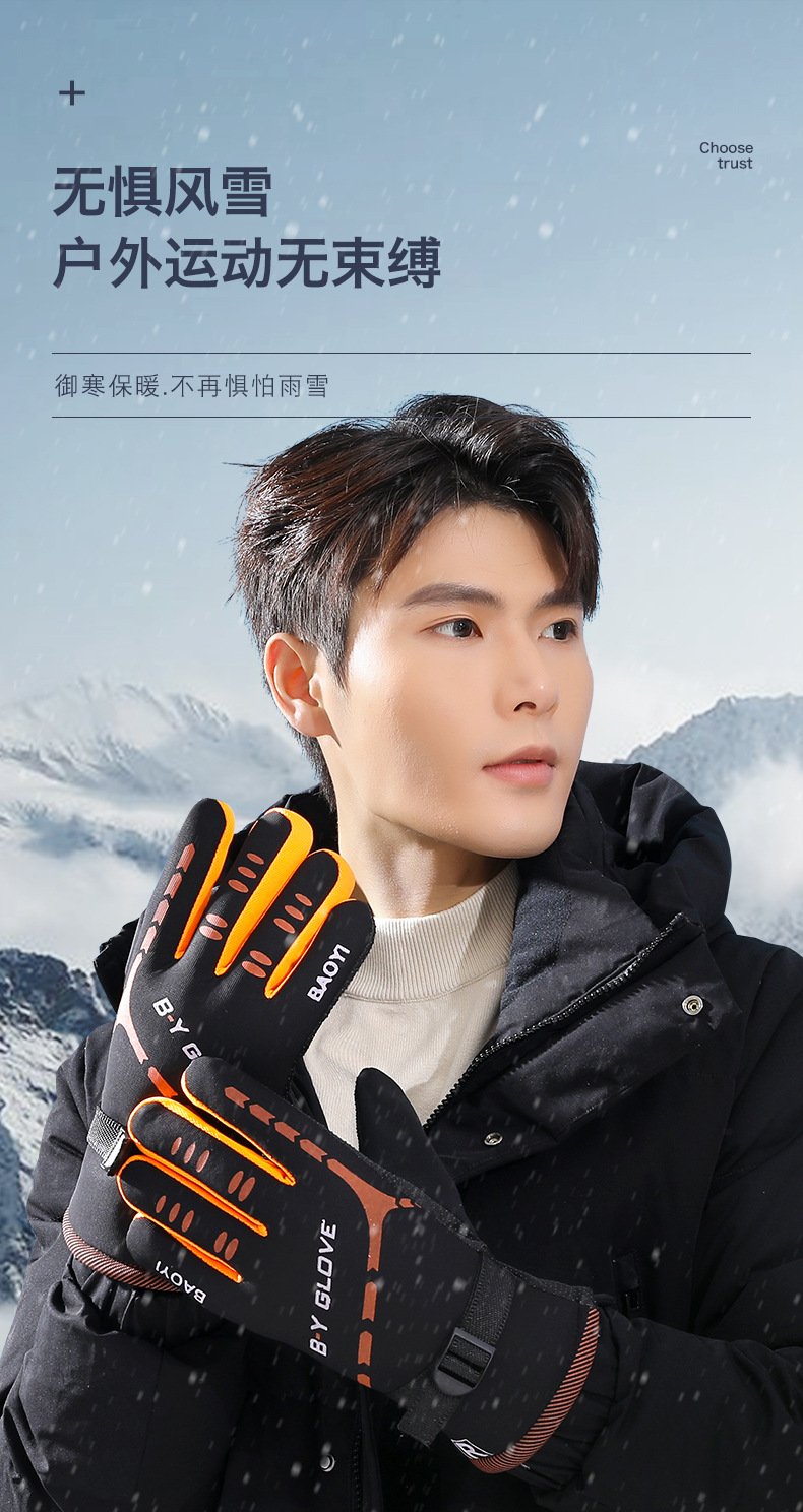 触屏运动手套男女冬天保暖加厚防滑摩托车骑行手套户外滑雪手套
