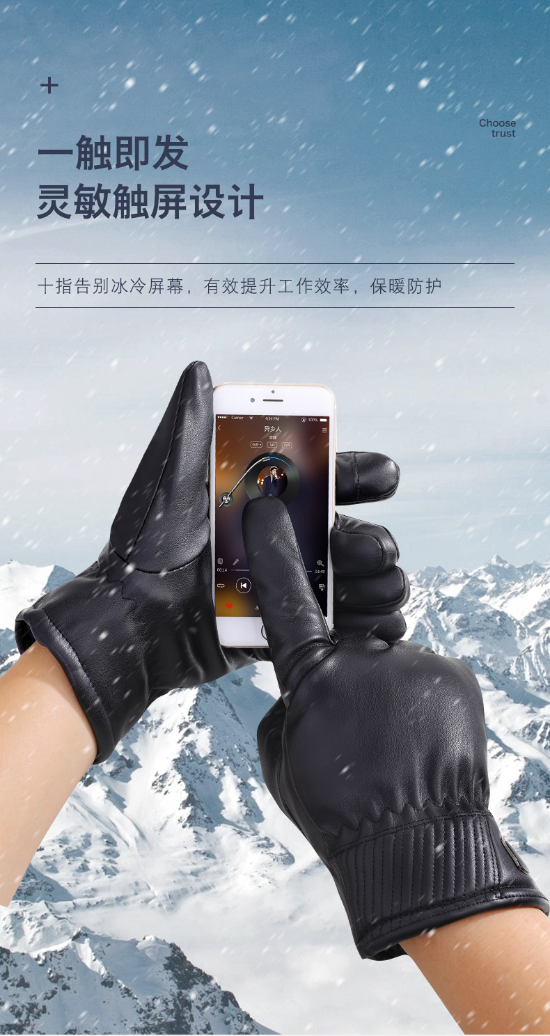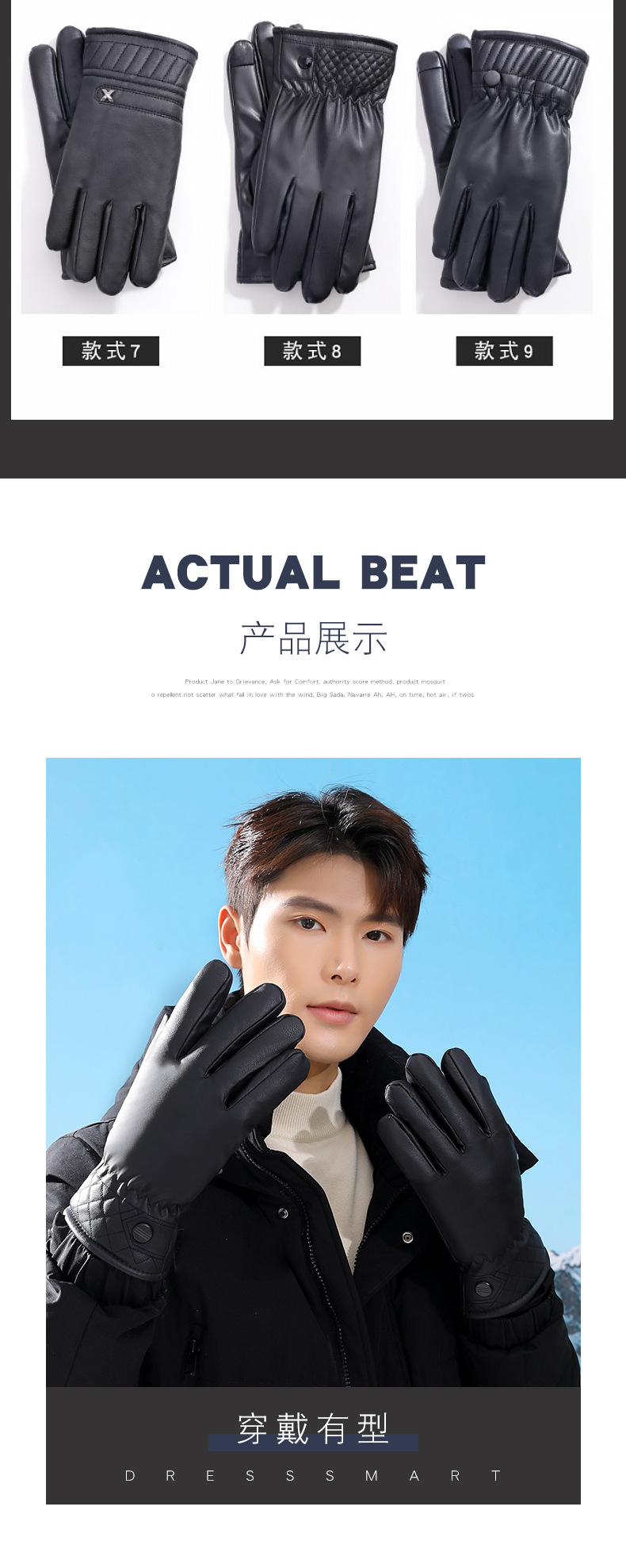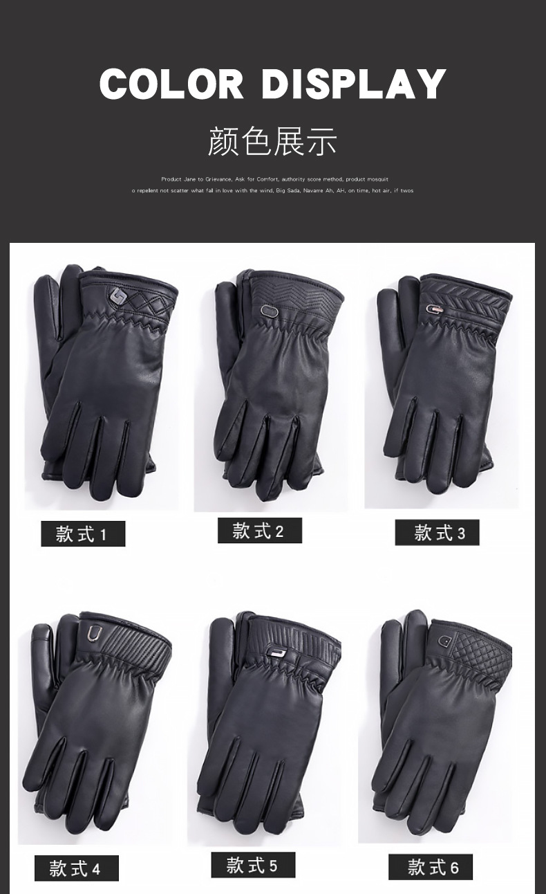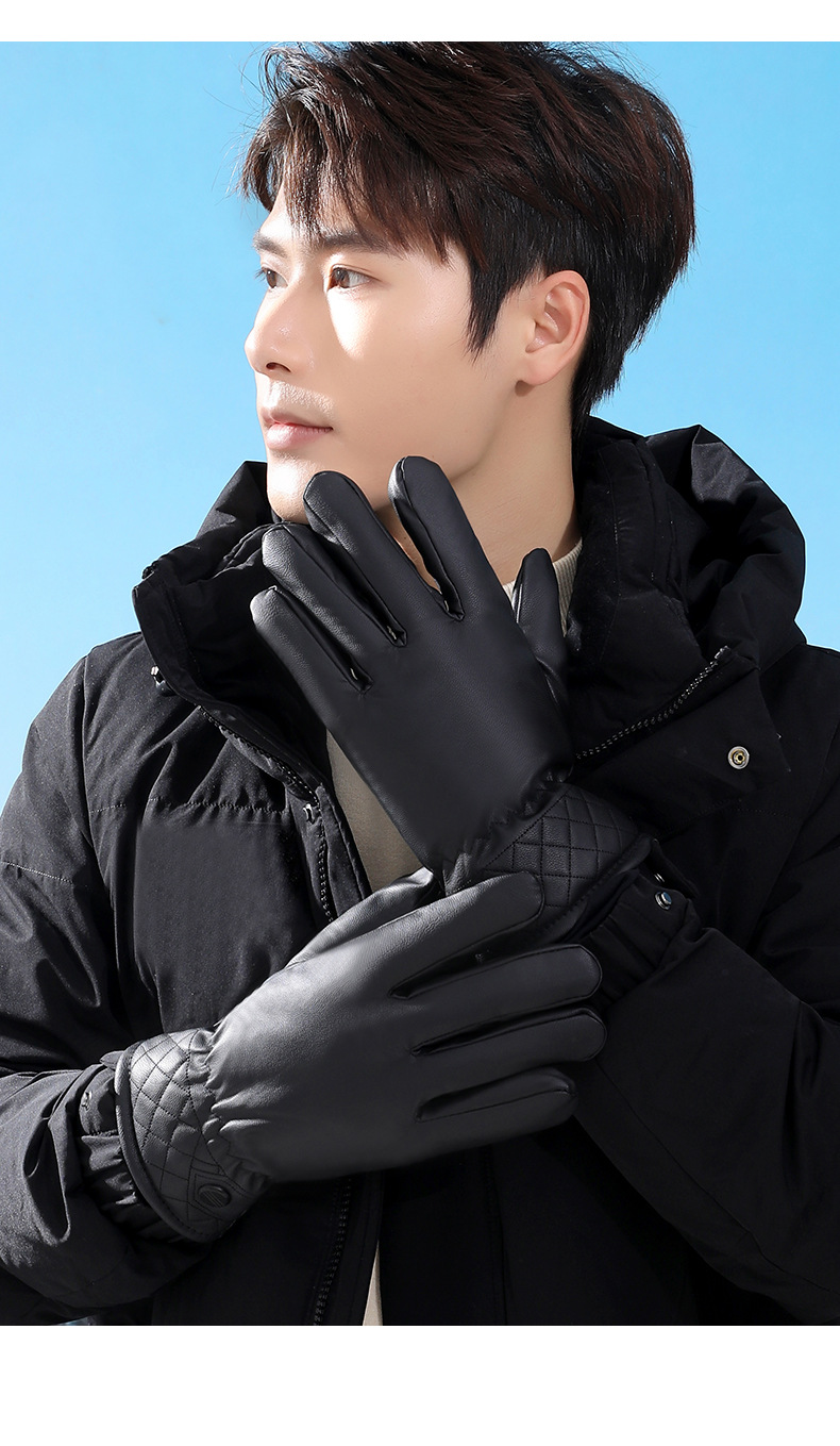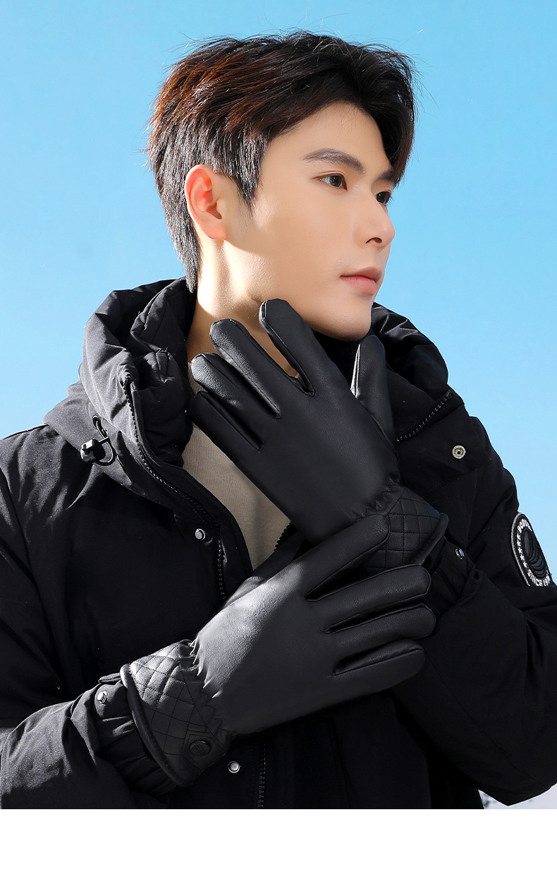 冬季男士触屏pu皮手套加厚保暖羽绒棉防风休闲手套户外防寒骑车