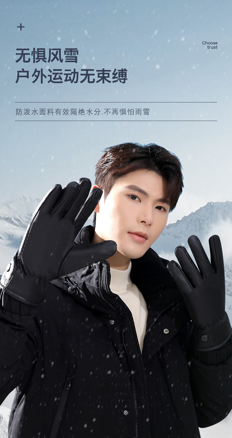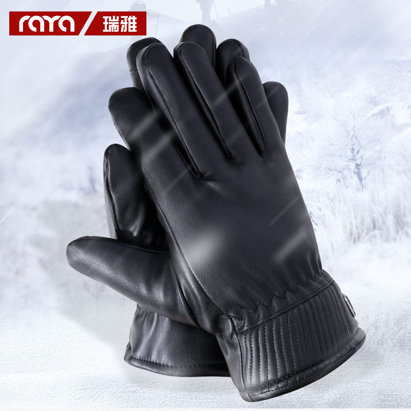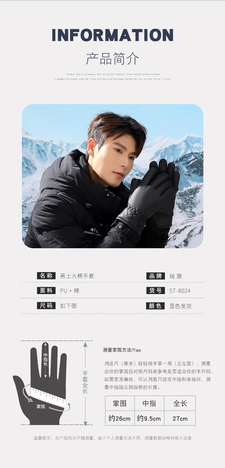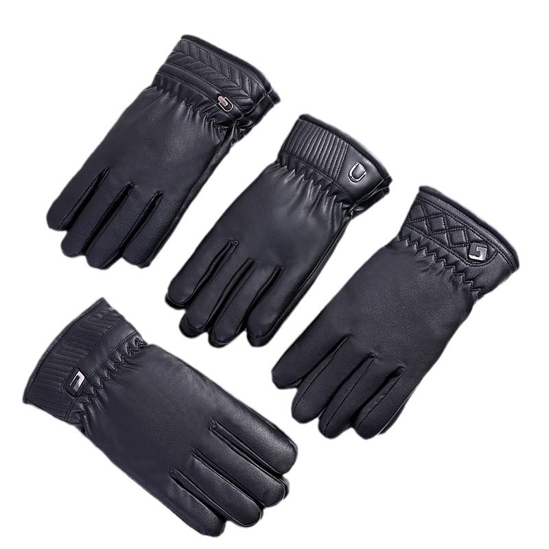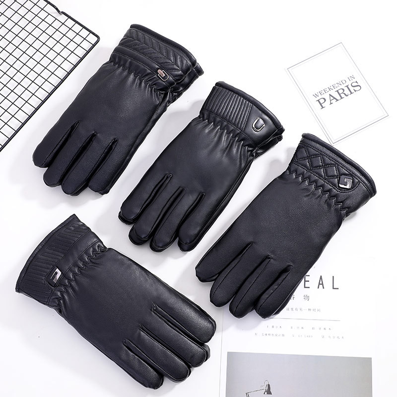 冬季男士触屏pu皮手套加厚保暖羽绒棉防风休闲手套户外防寒骑车