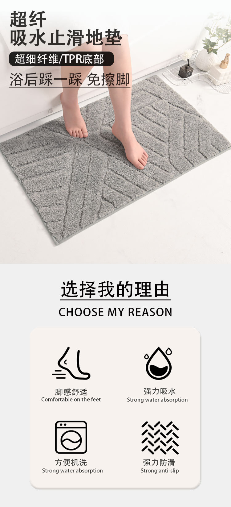 高端几何吸水地垫纯色卫生间脚垫浴室防滑门口地毯洗手间垫子批发