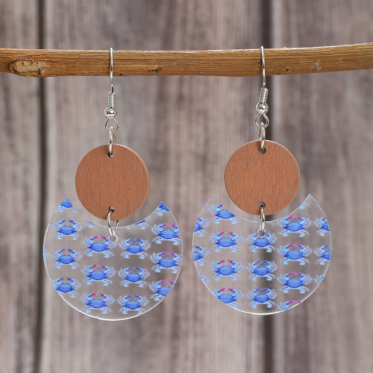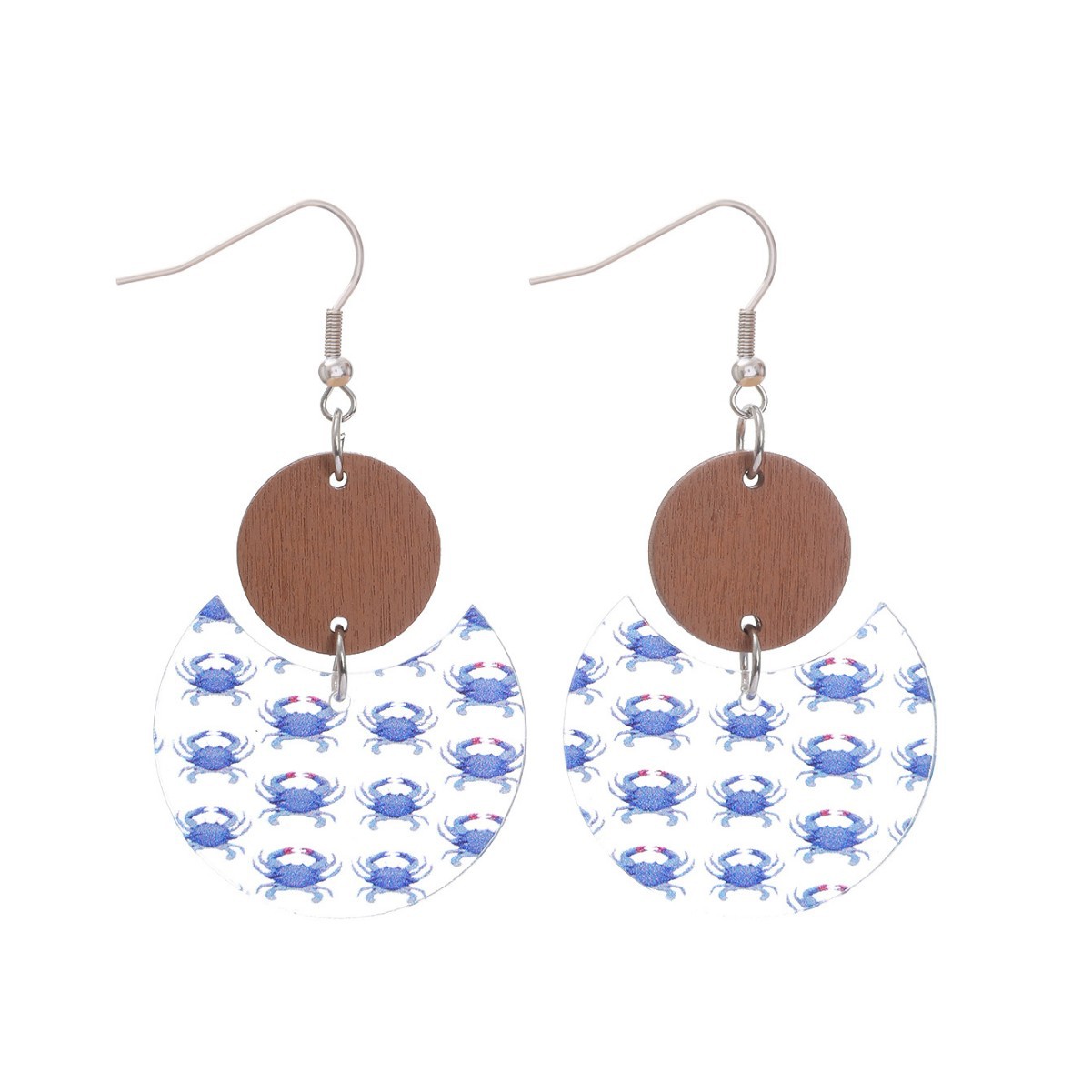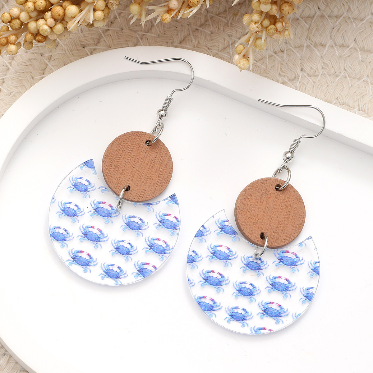 新款海边灯塔螃蟹夏日度假风亚克力拼接木片耳环清晰月牙耳饰耳坠